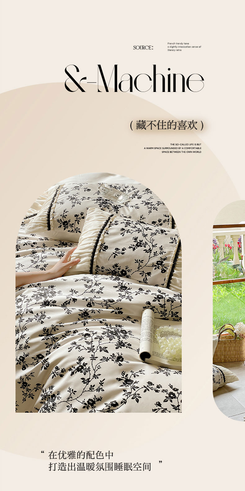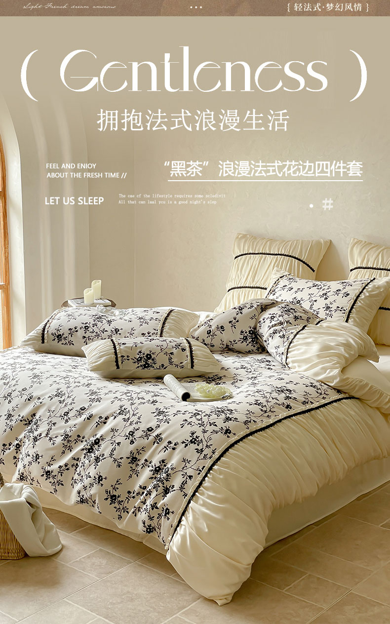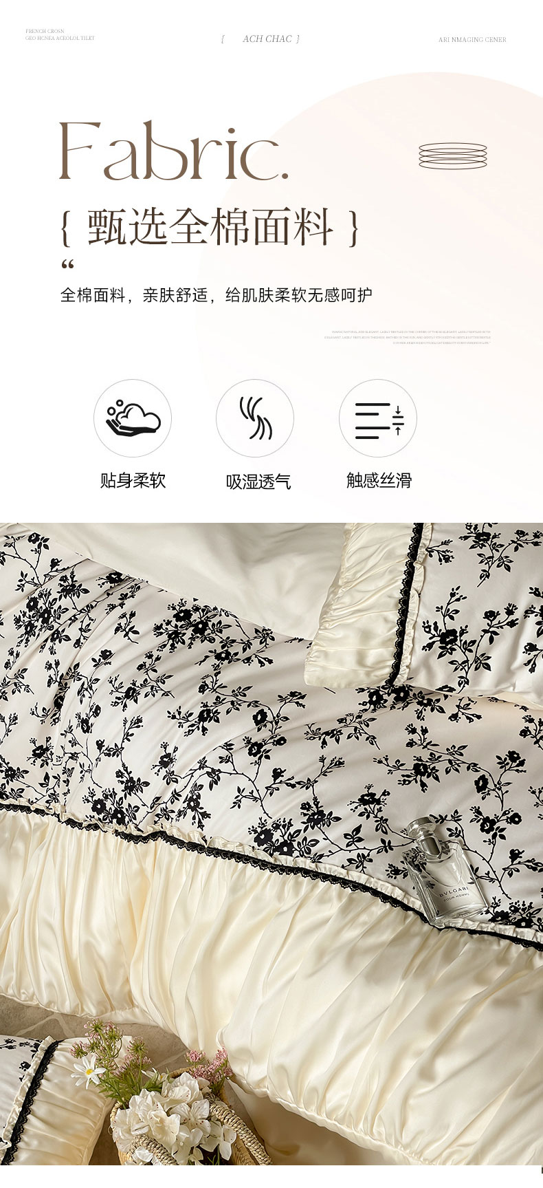 商品名称:FORTWO家纺原创设计(FOR TWO家纺) 2024新款复古法式全棉印花四件套系列 黑茶