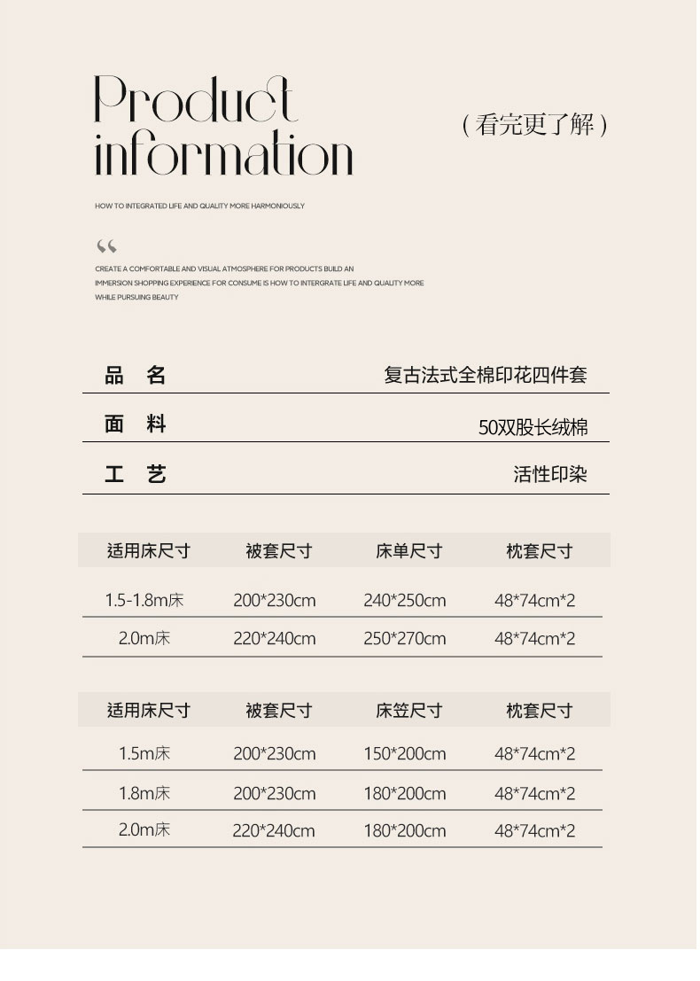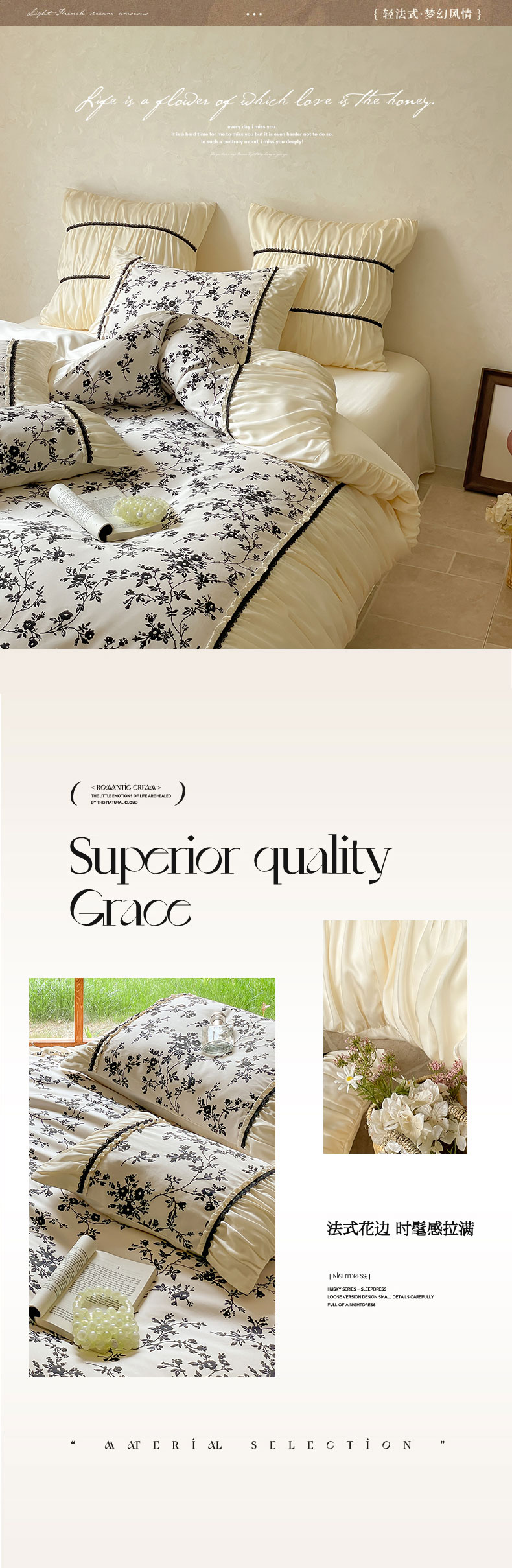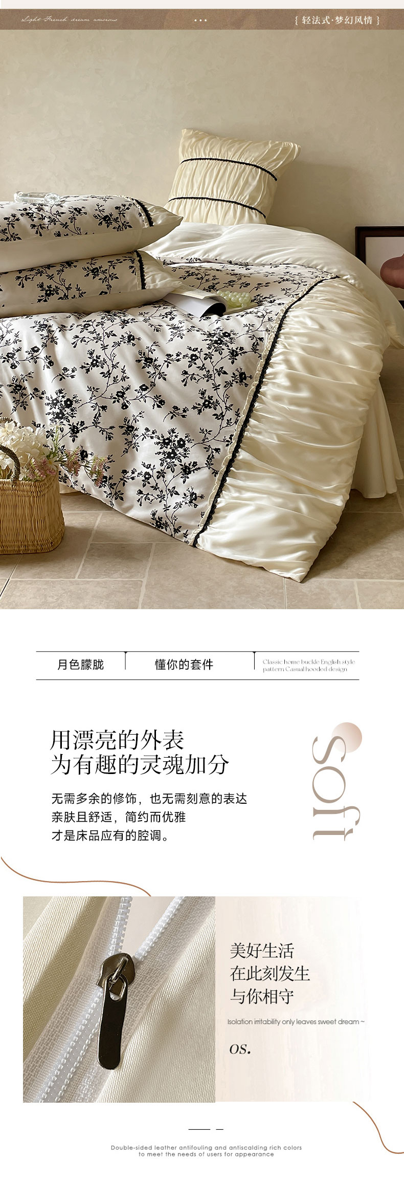 商品名称:FORTWO家纺原创设计(FOR TWO家纺) 2024新款复古法式全棉印花四件套系列 黑茶