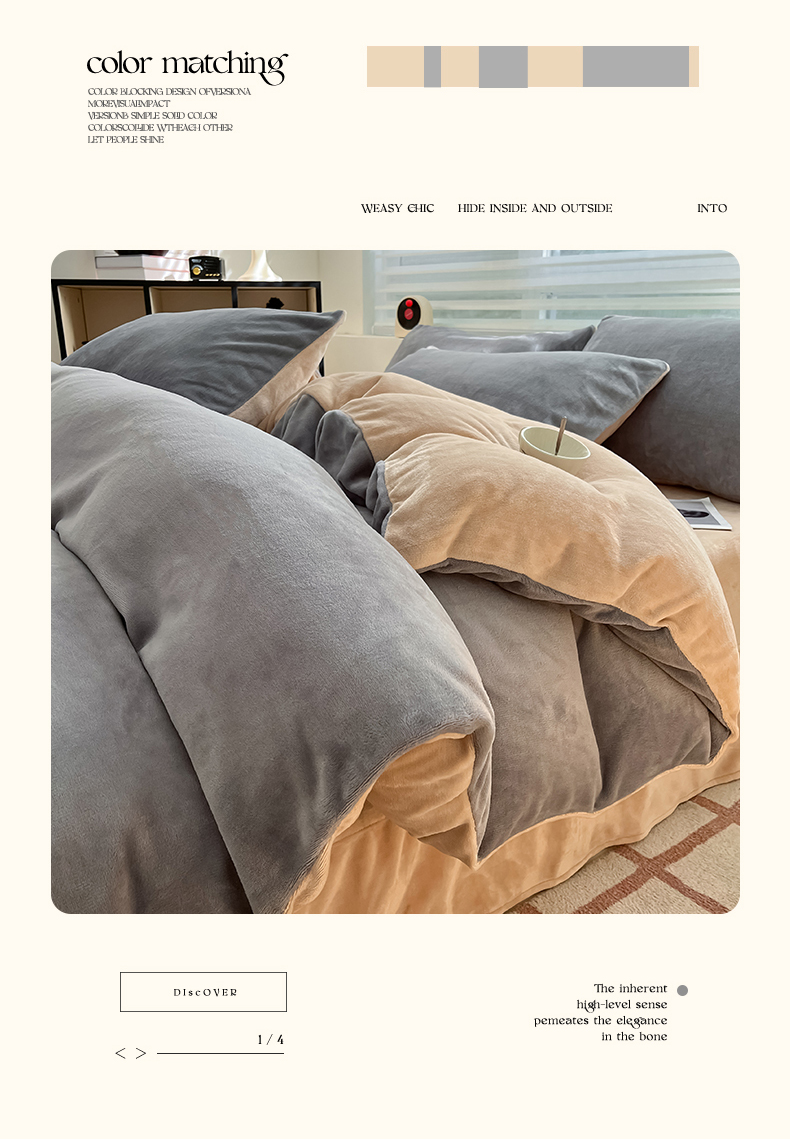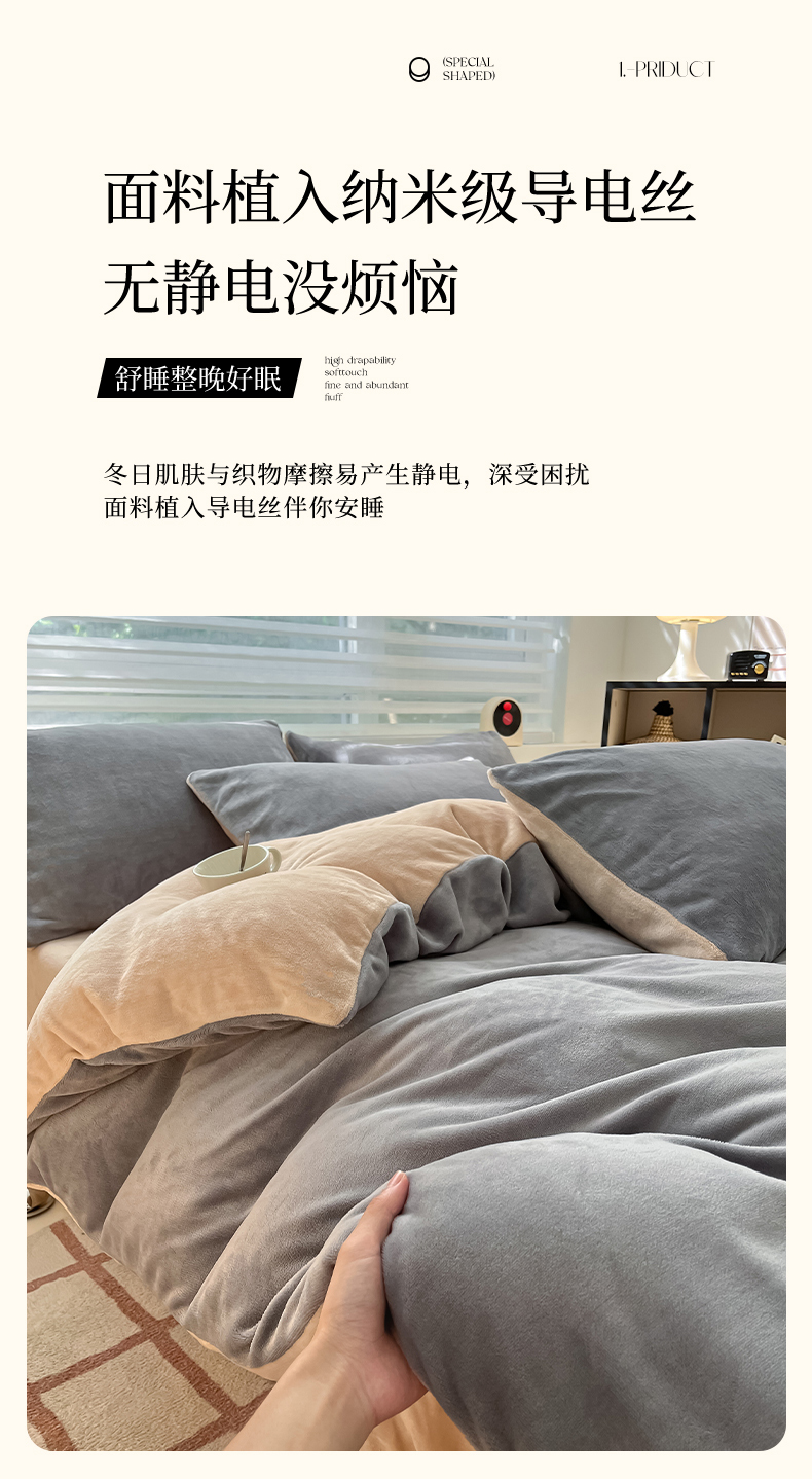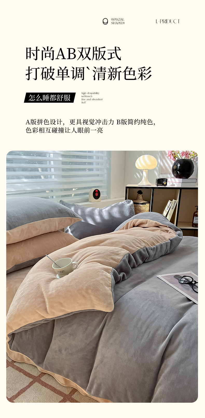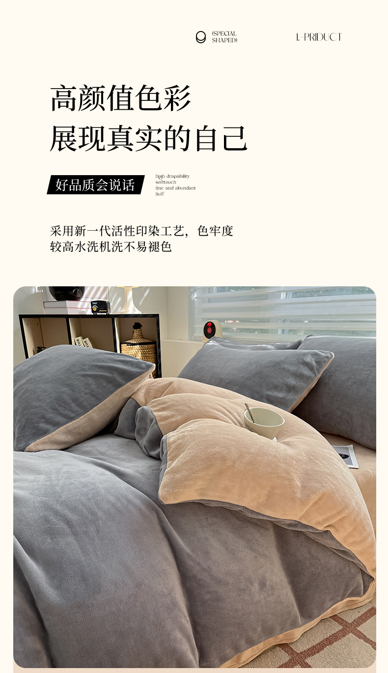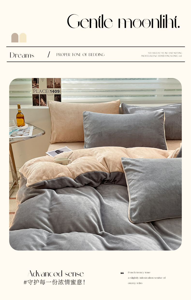 商品名称:绘萱 2025新款高克重纯色双拼牛奶绒四件套 简约灰卡其