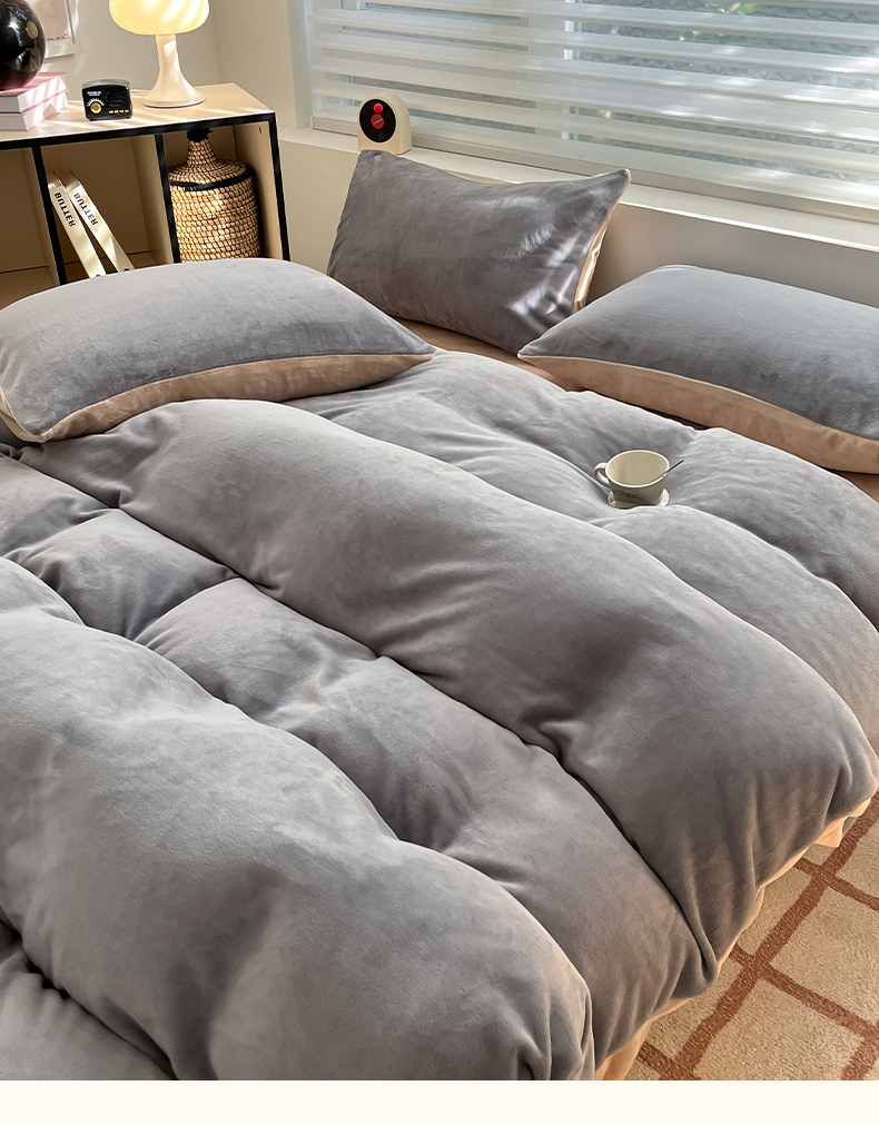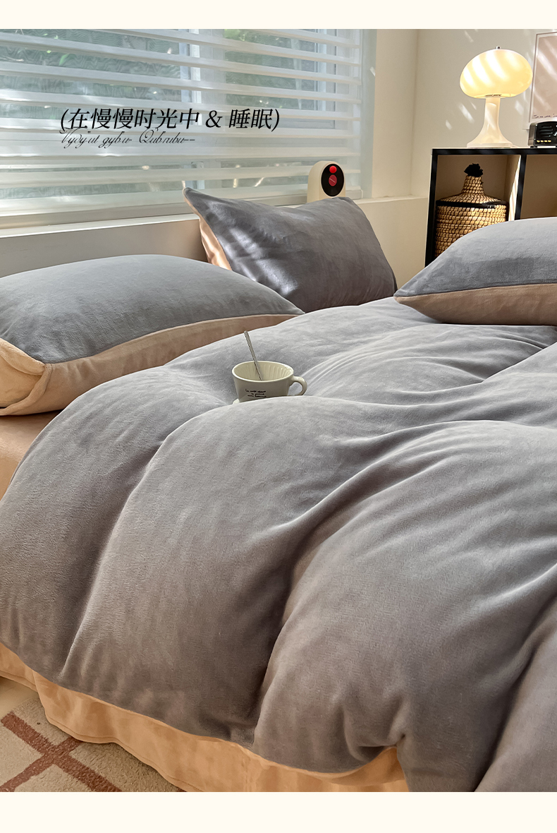 绘萱 2025新款高克重纯色双拼牛奶绒四件套 简约灰卡其