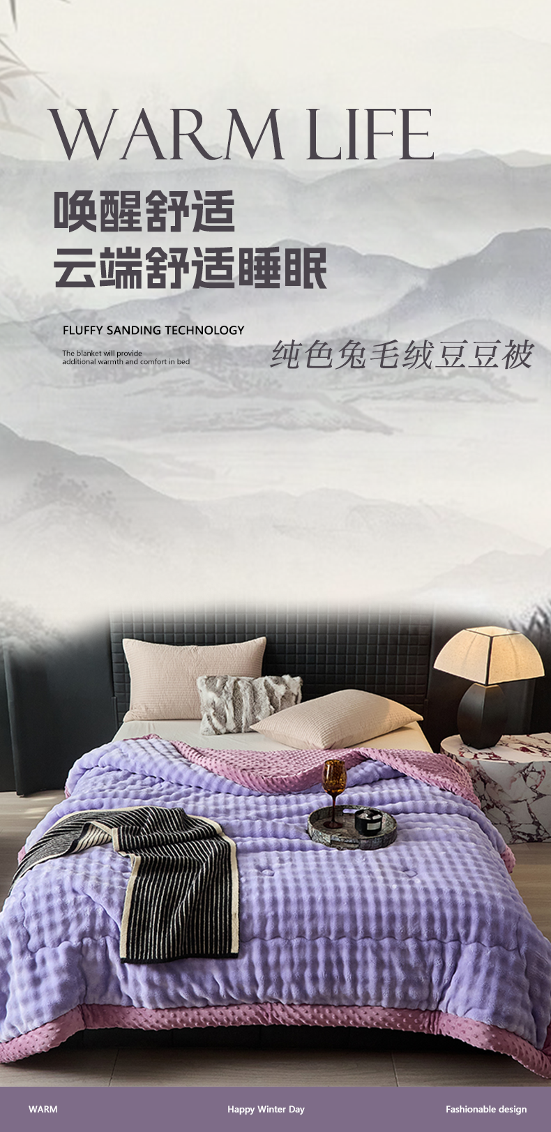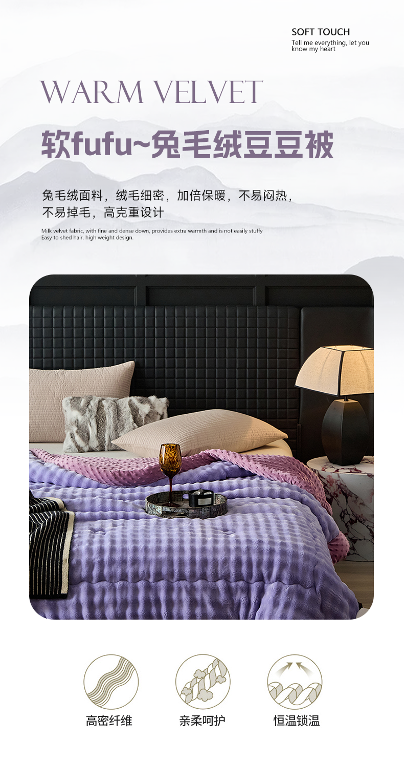 (总)源舜家纺 2025新款纯色豆豆被毛毯