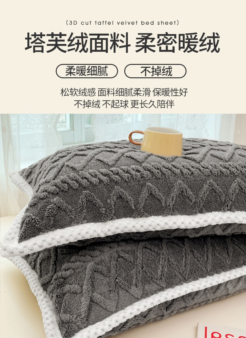 商品名称:梦舒羽 2025新款220克高克重塔芙绒枕套枕芯套宿舍枕头套单人一对装 至尊灰