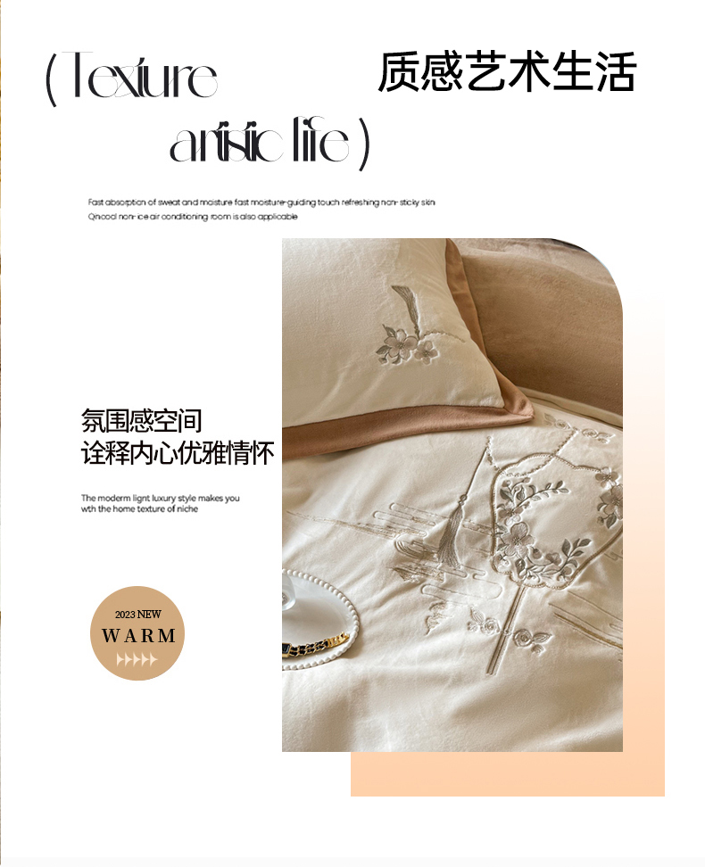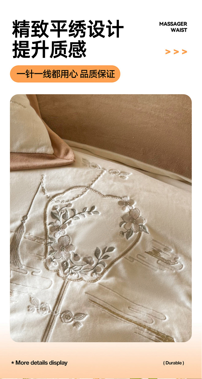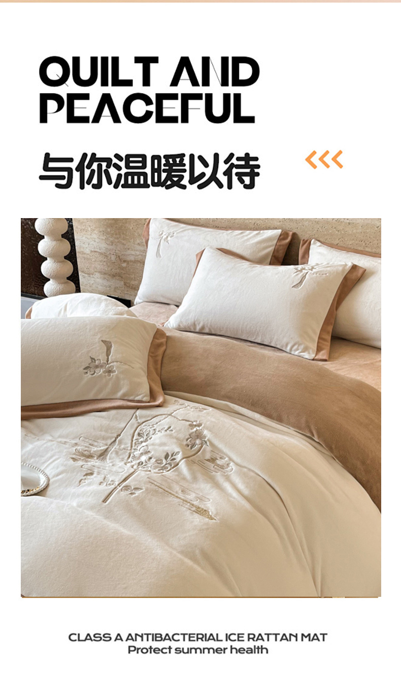 恋佳居 2025新款牛奶绒高克重平绣四件套 岁月静好-米色
