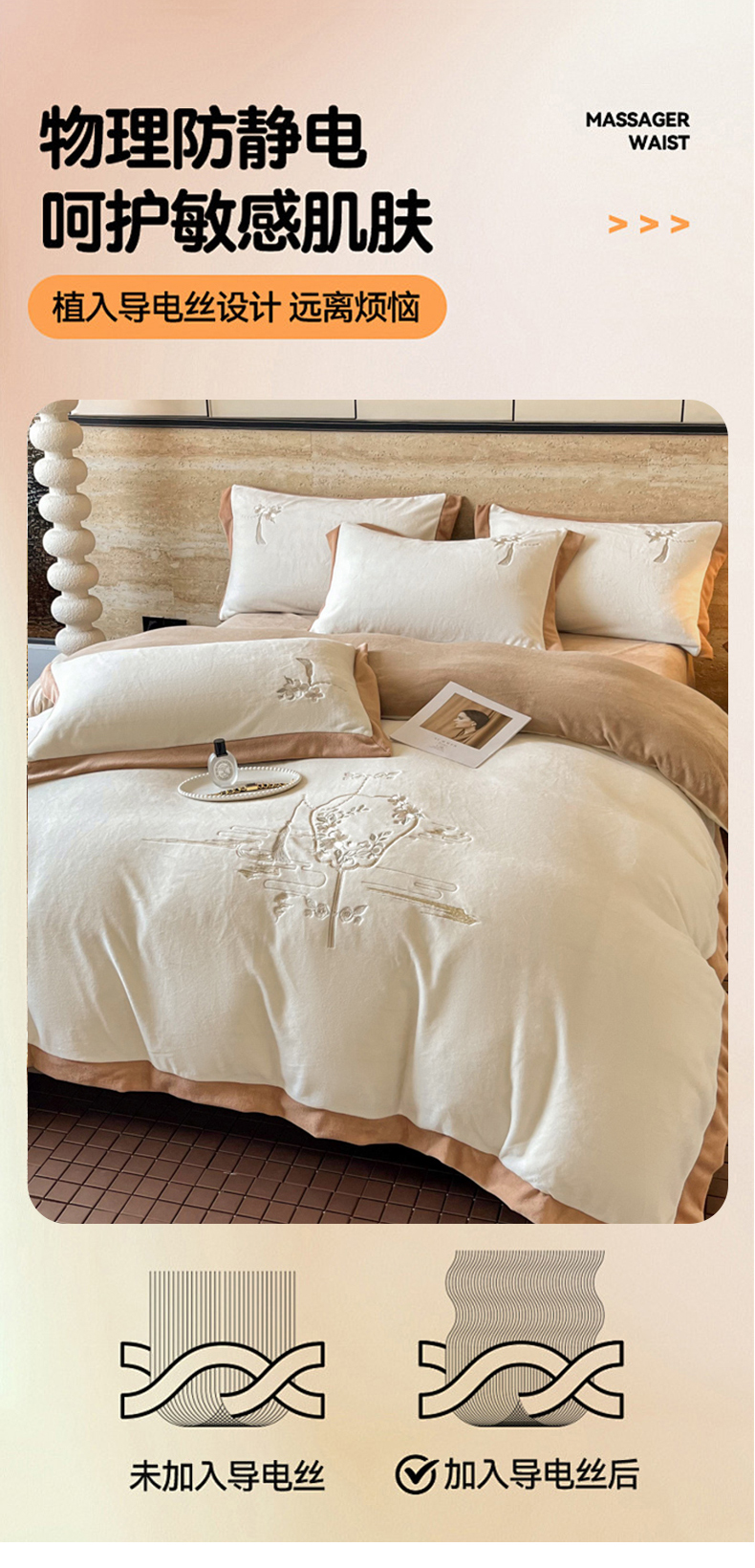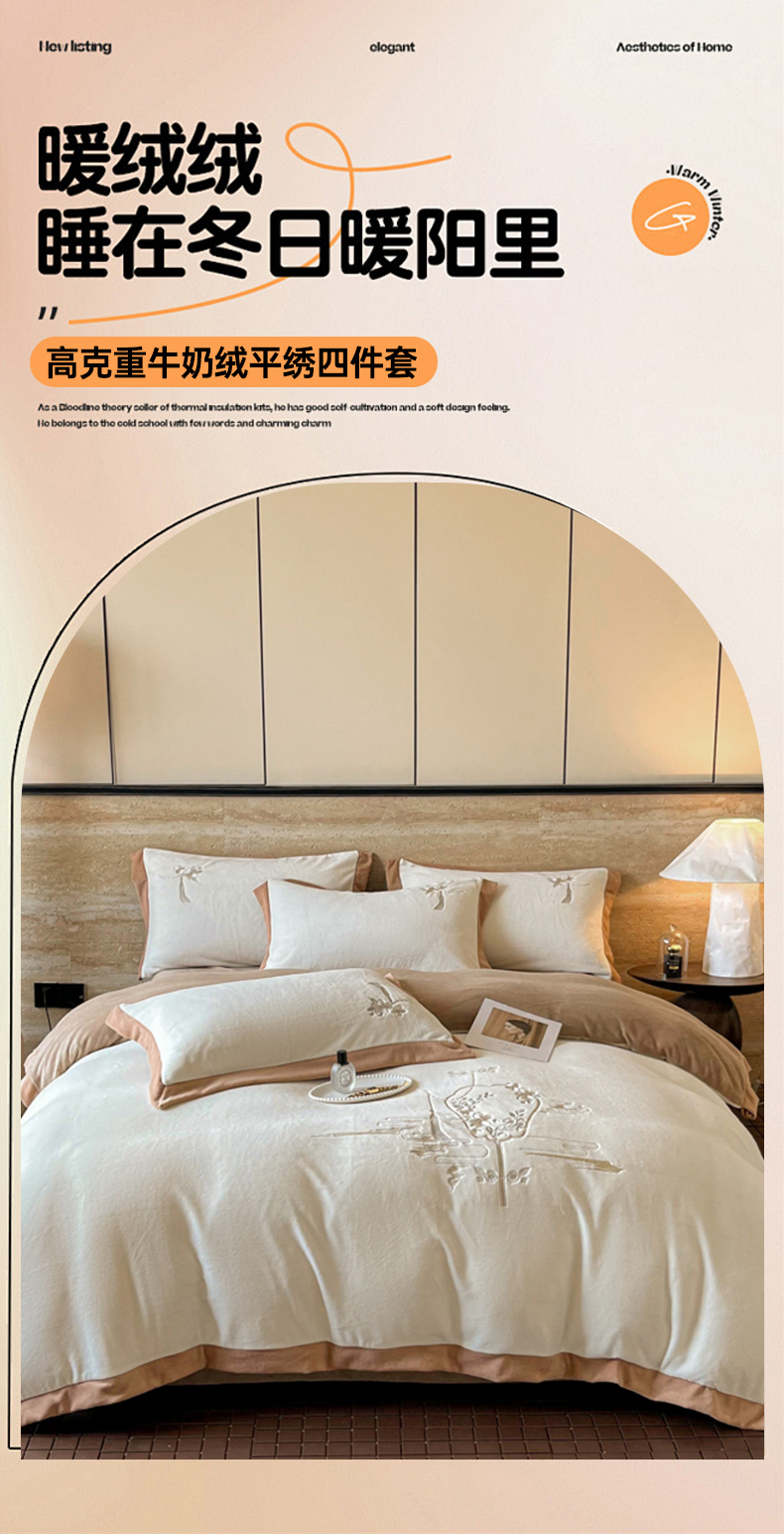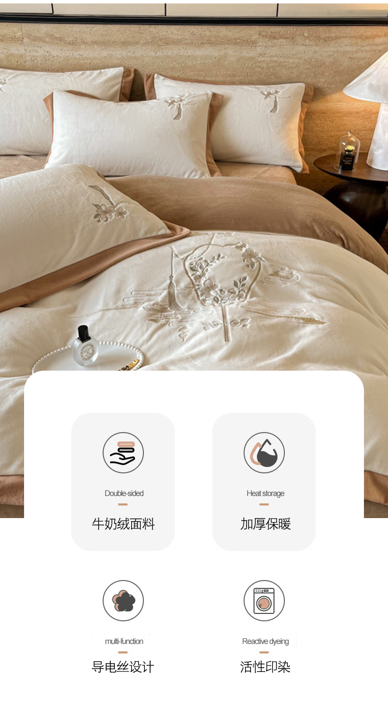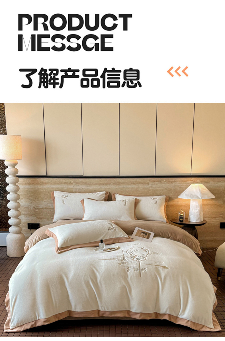 商品名称:恋佳居 2025新款牛奶绒高克重平绣四件套 岁月静好-米色