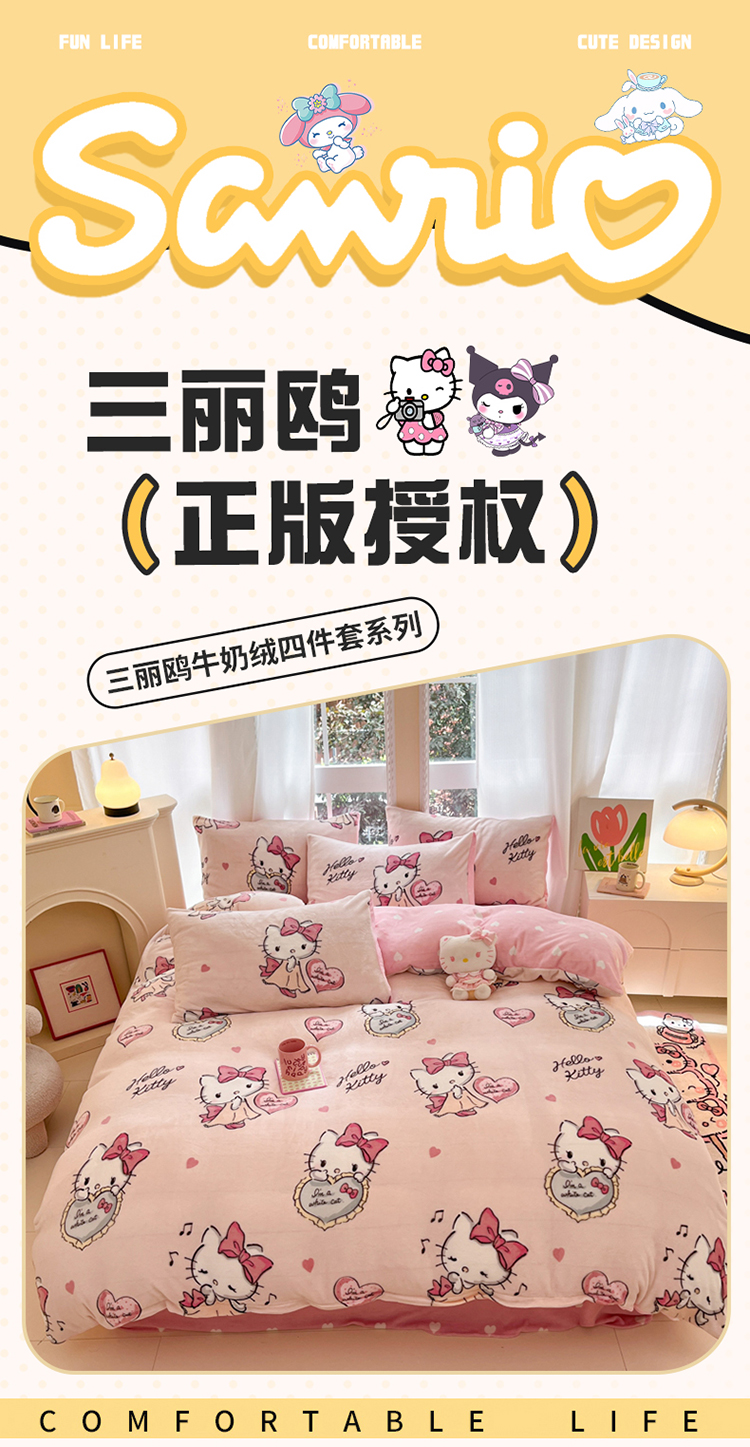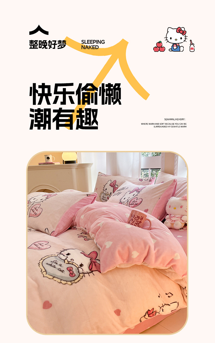 当前位置: 91家纺网 > 商品网购 > 床品套件 > 四件套 > 牛奶绒四件套 > 2024新款三丽鸥牛奶绒小版四件套 牛奶绒小版-害羞KT猫