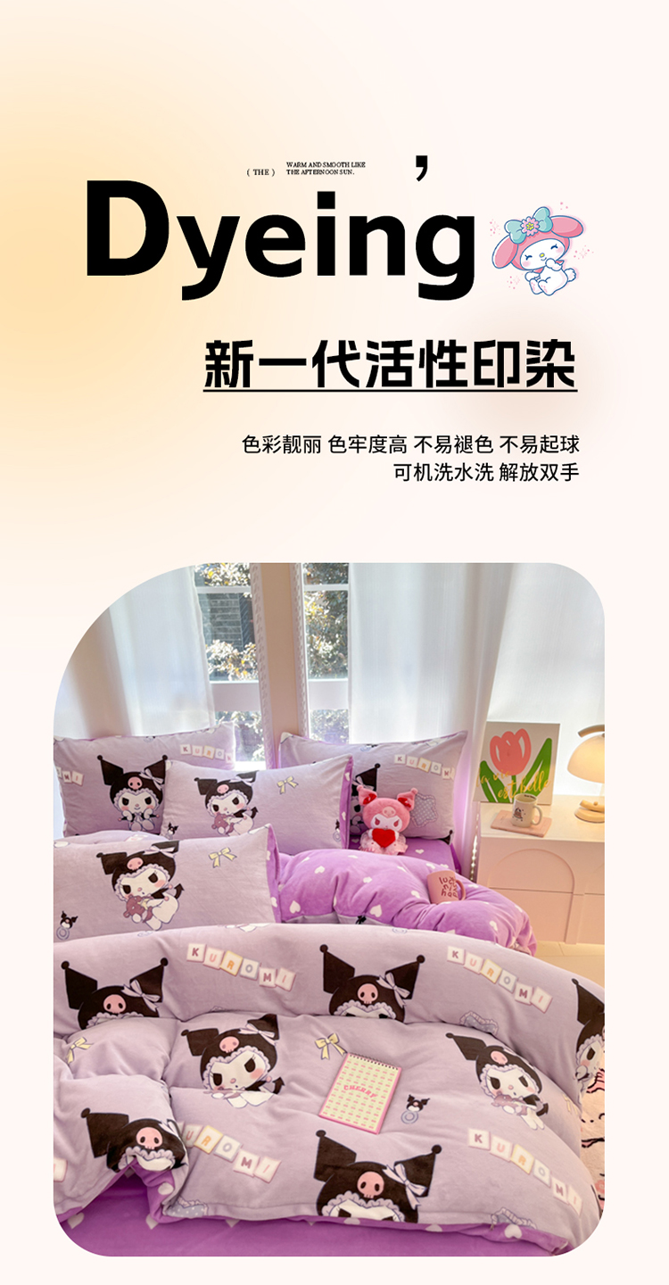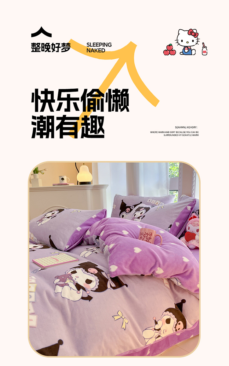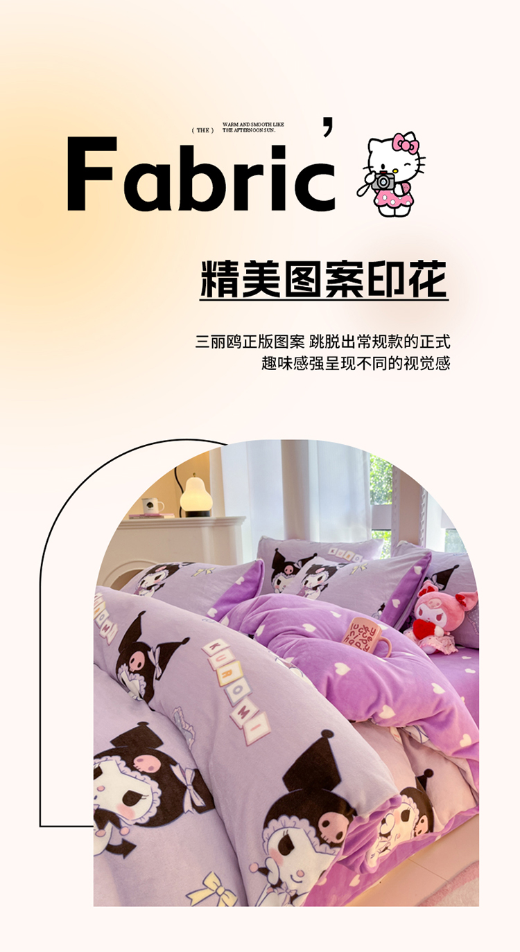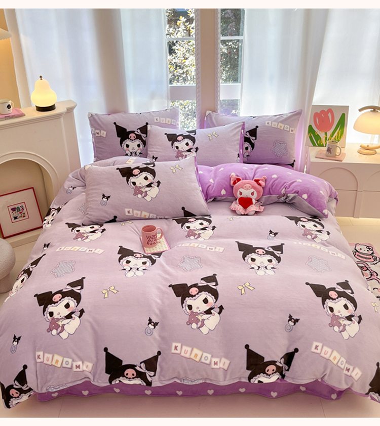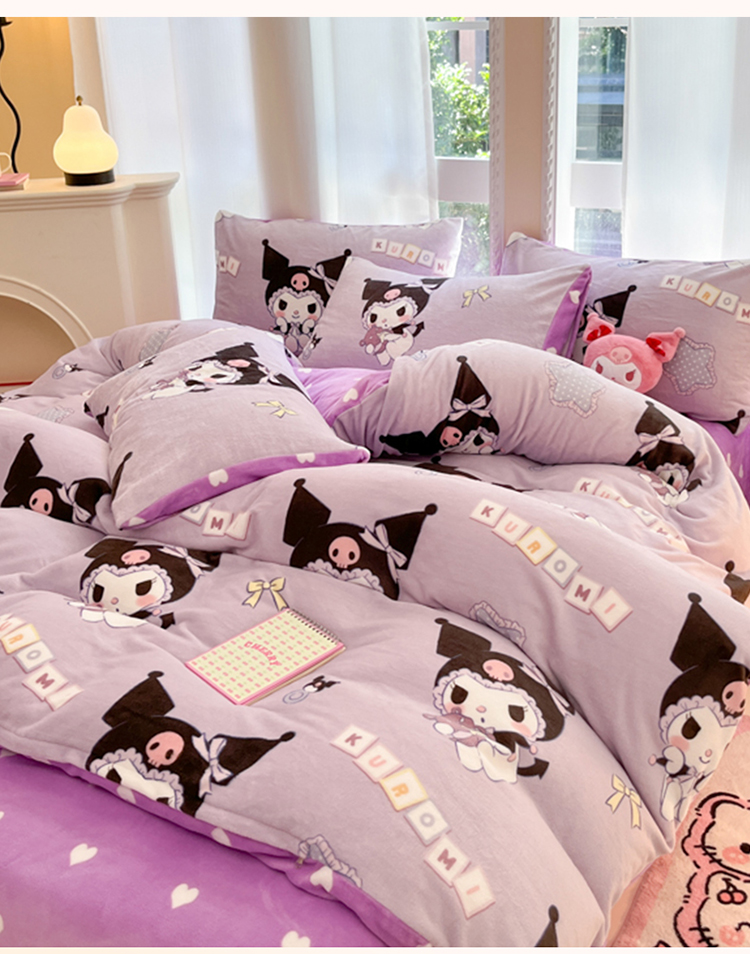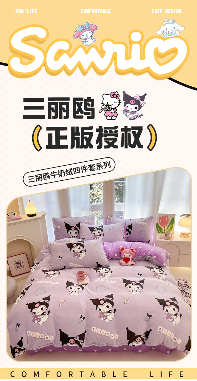 当前位置: 91家纺网 > 商品网购 > 床品套件 > 四件套 > 牛奶绒四件套 > 2024新款三丽鸥牛奶绒小版四件套 牛奶绒小版-星星库洛米