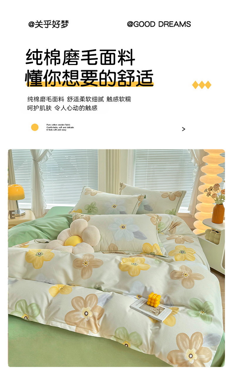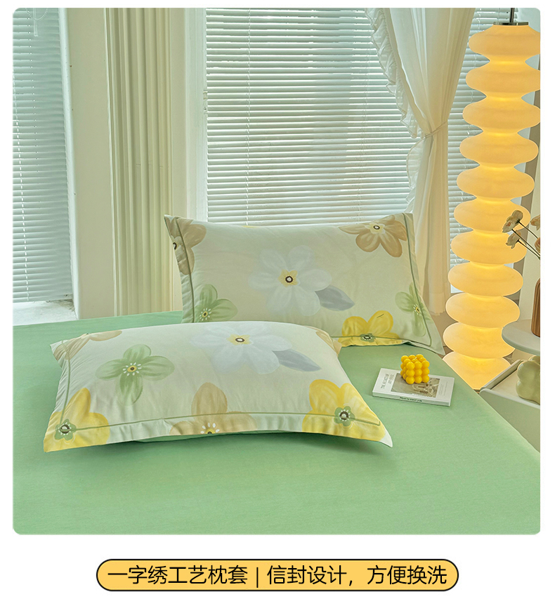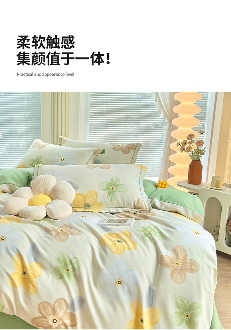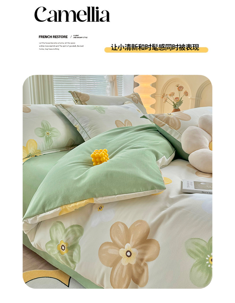 当前位置: 91家纺网 > 商品网购 > 床品套件 > 四件套 > 全棉普通四件套 > 优尚家纺 2025新款全棉磨毛纯棉喷气印花清新轻奢款四件套 清新款-花语甜心-绿