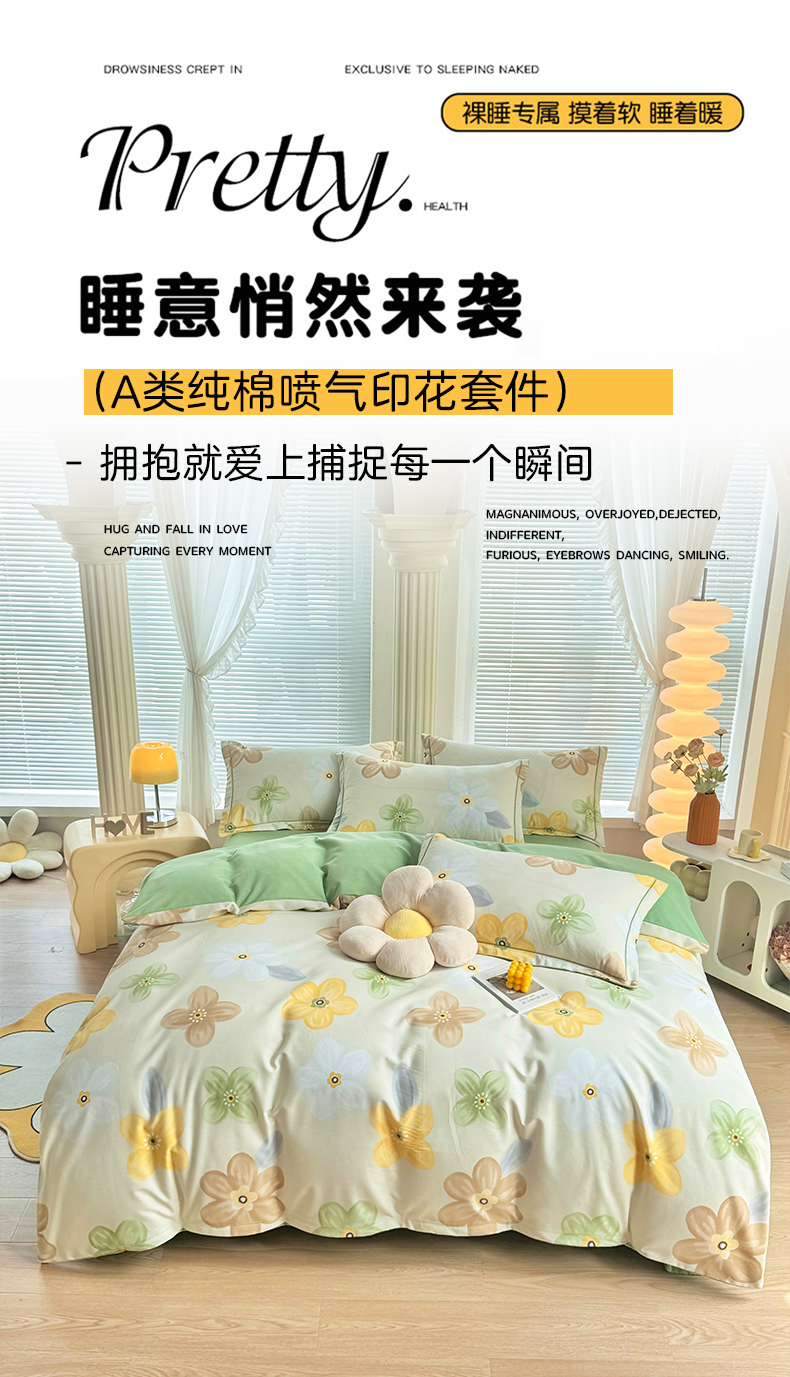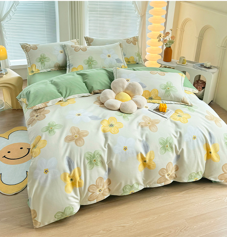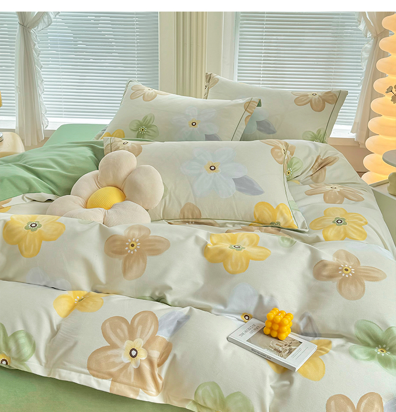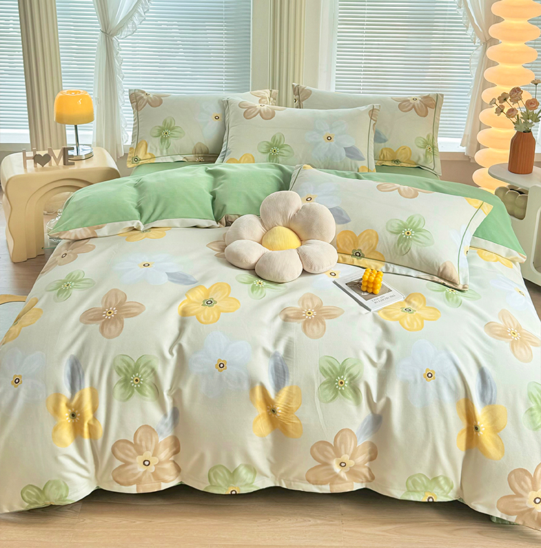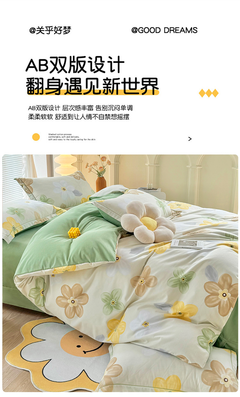 当前位置: 91家纺网 > 商品网购 > 床品套件 > 四件套 > 全棉普通四件套 > 优尚家纺 2025新款全棉磨毛纯棉喷气印花清新轻奢款四件套 清新款-花语甜心-绿