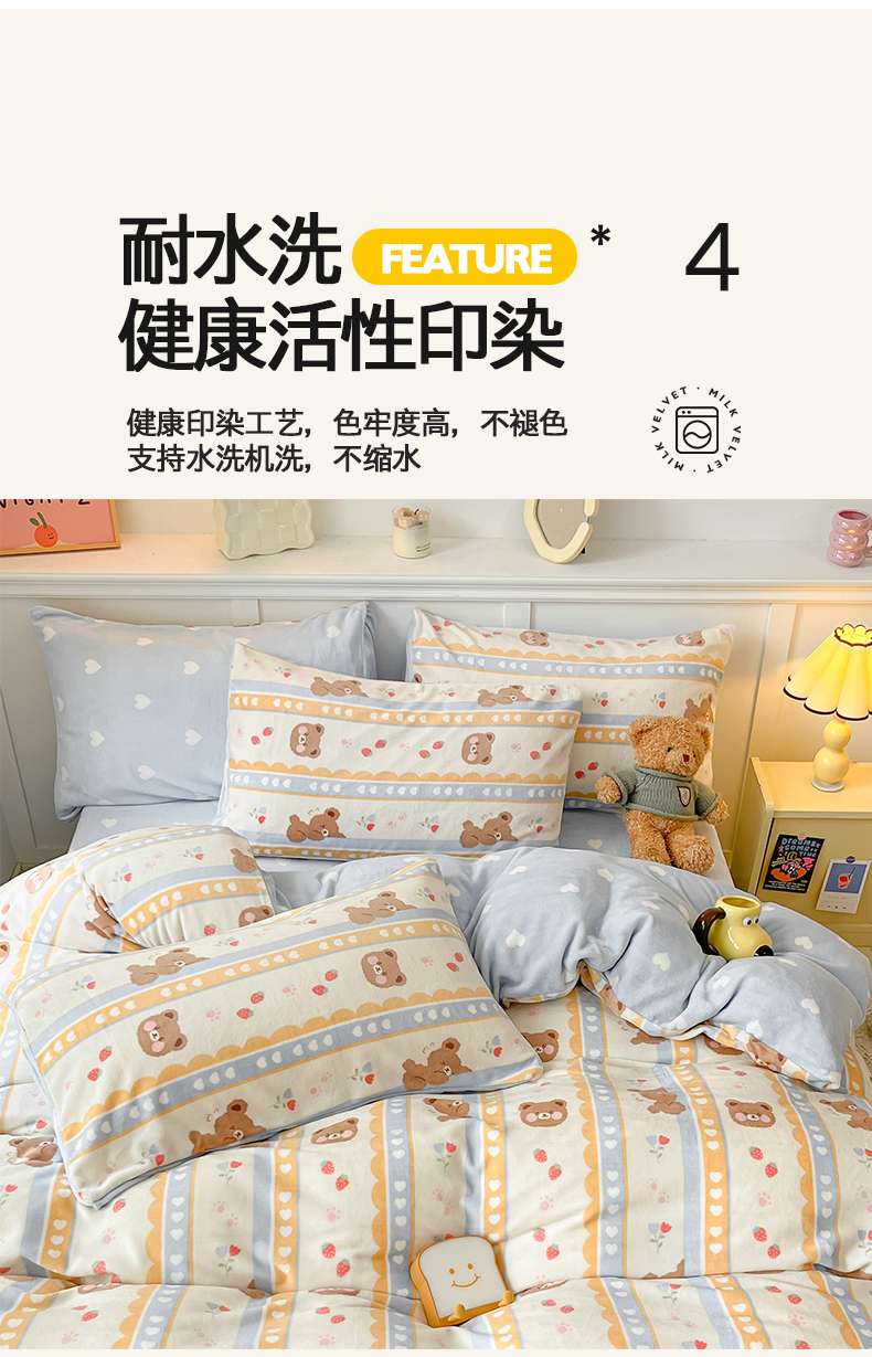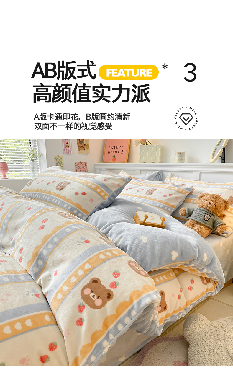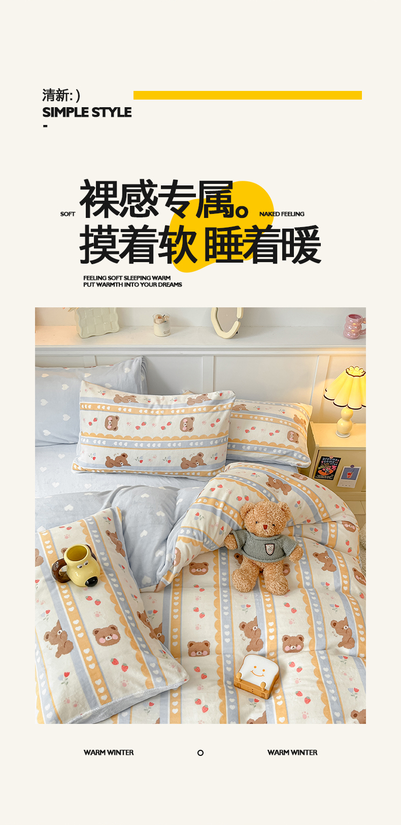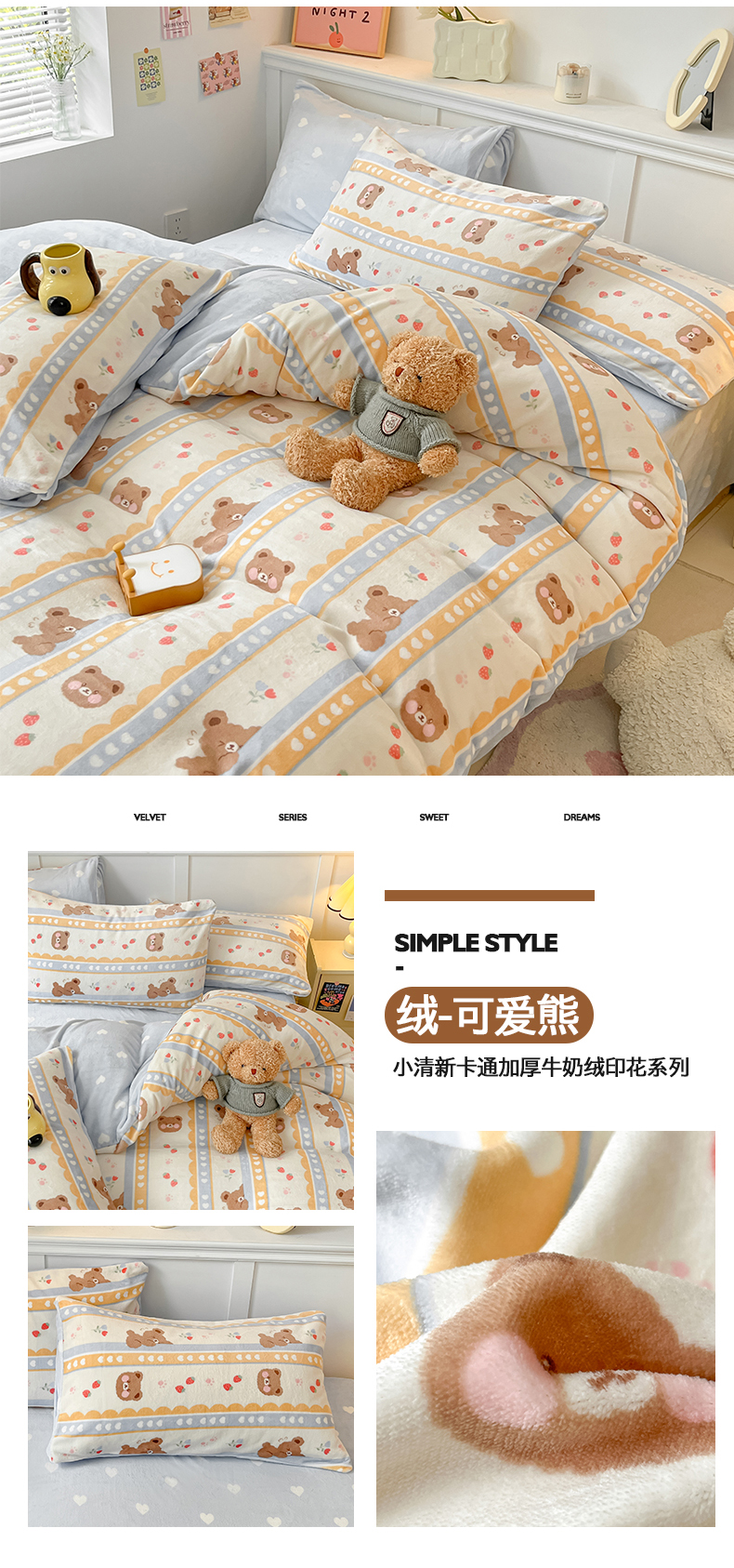 2024新款200g加厚防静电牛奶绒小清新四件套 绒-可爱熊