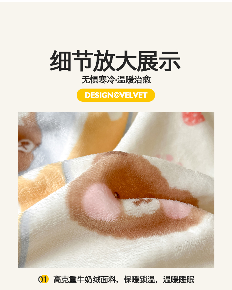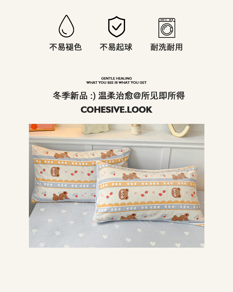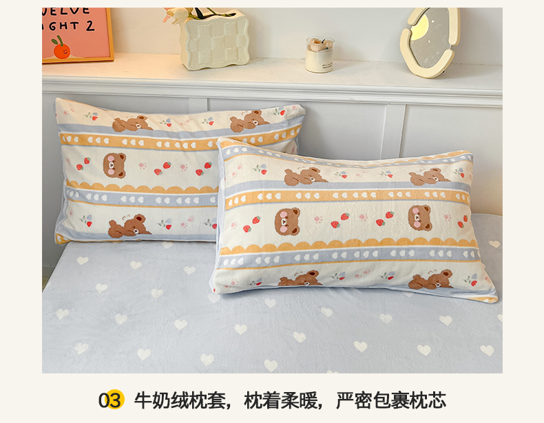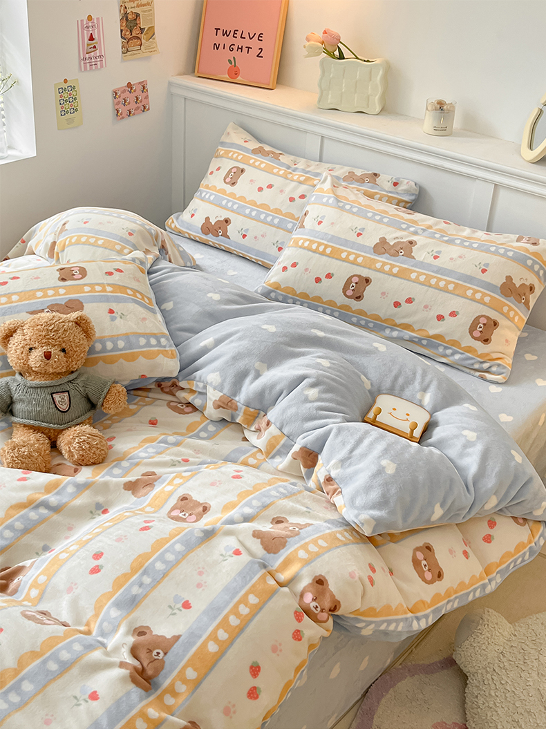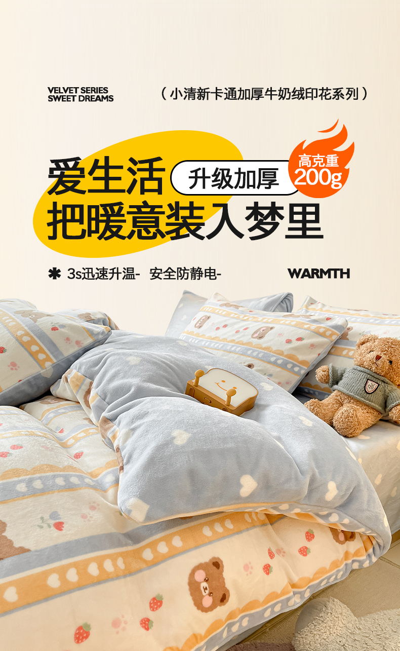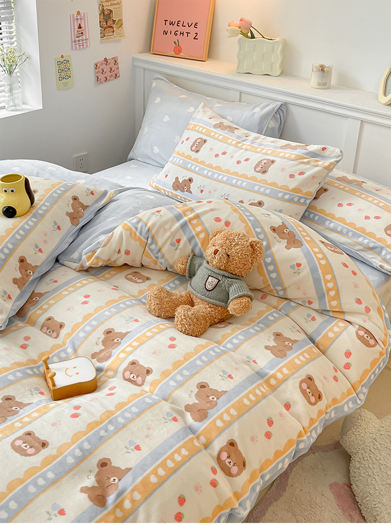 2024新款200g加厚防静电牛奶绒小清新四件套 绒-可爱熊