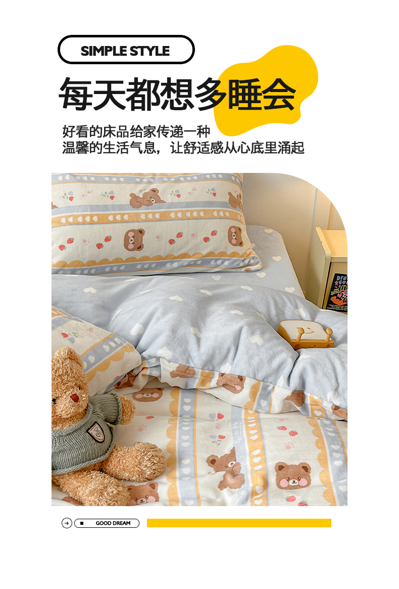 商品名称:2024新款200g加厚防静电牛奶绒小清新四件套 绒-可爱熊