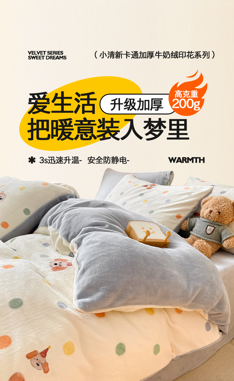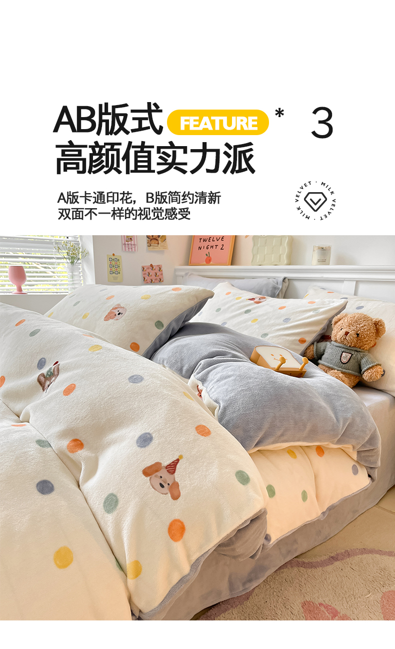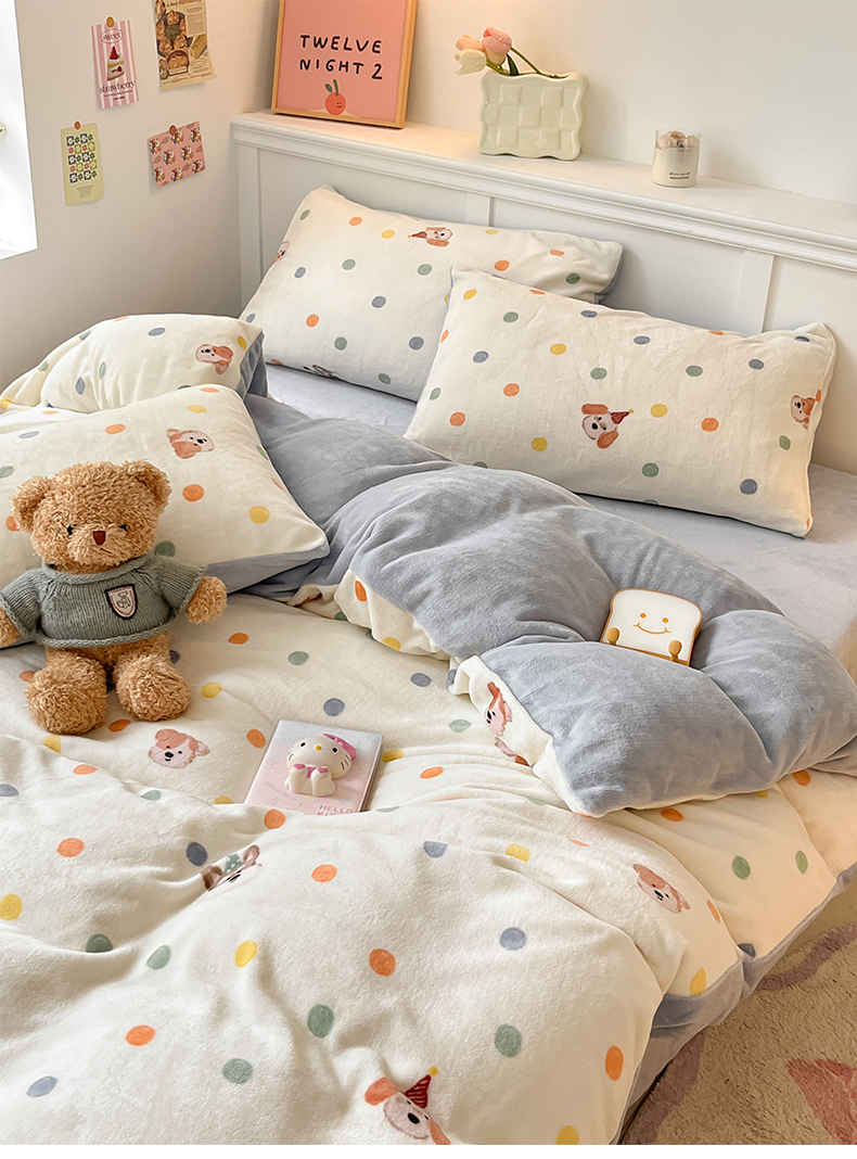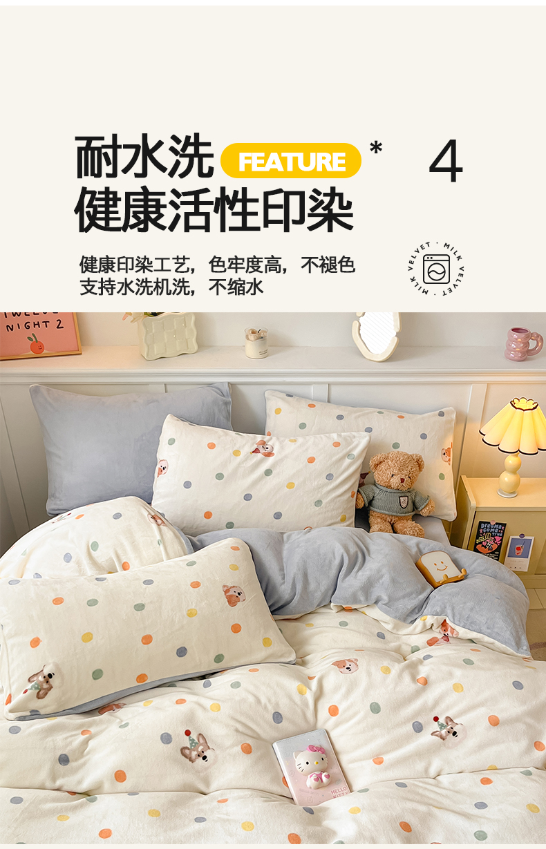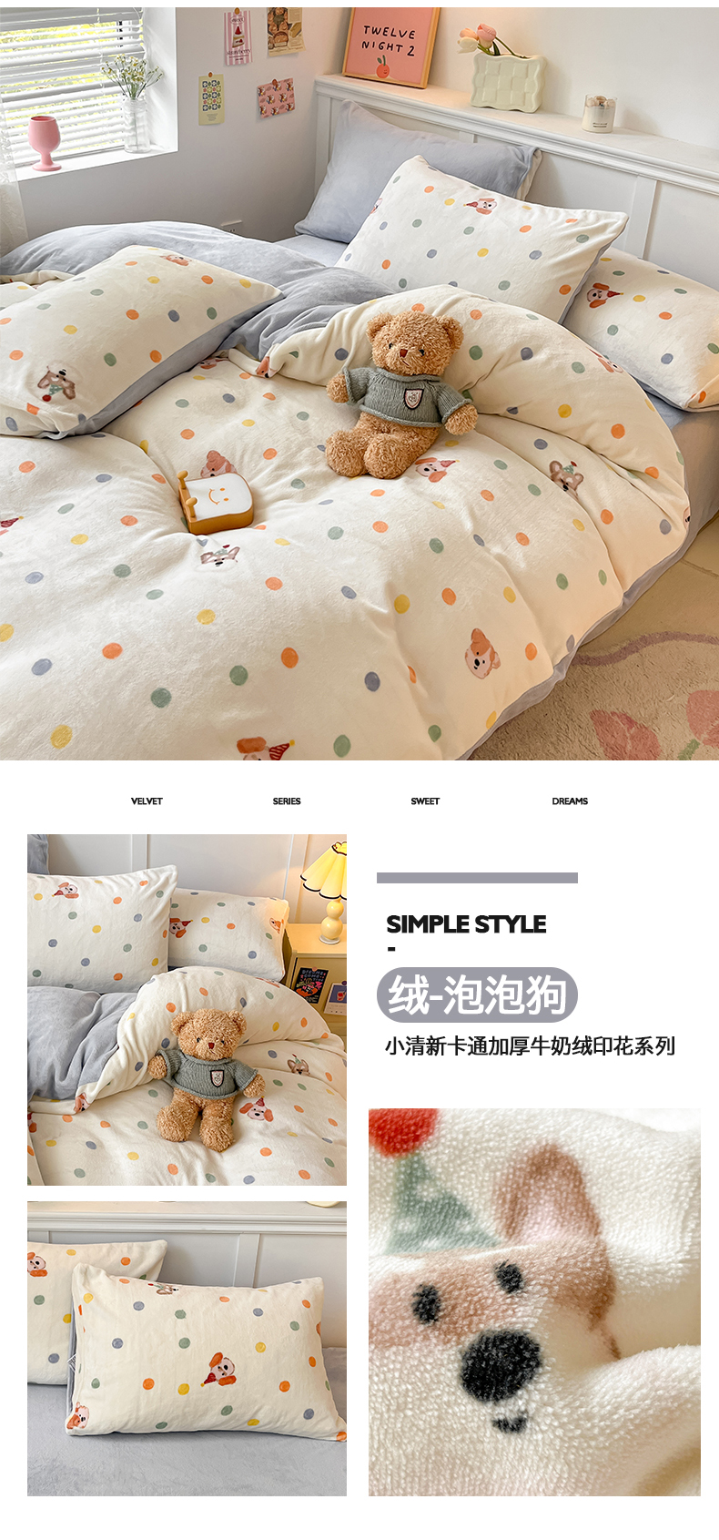 2024新款200g加厚防静电牛奶绒小清新四件套 绒-泡泡狗