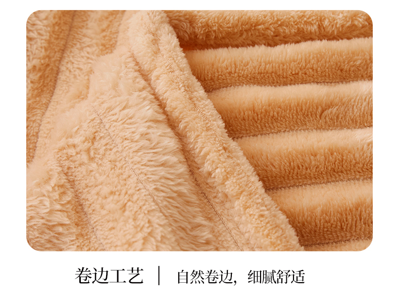 商品名称:畅畅家纺 2024新款秋冬兔毛绒宽抽条纯色毛毯 卡其色