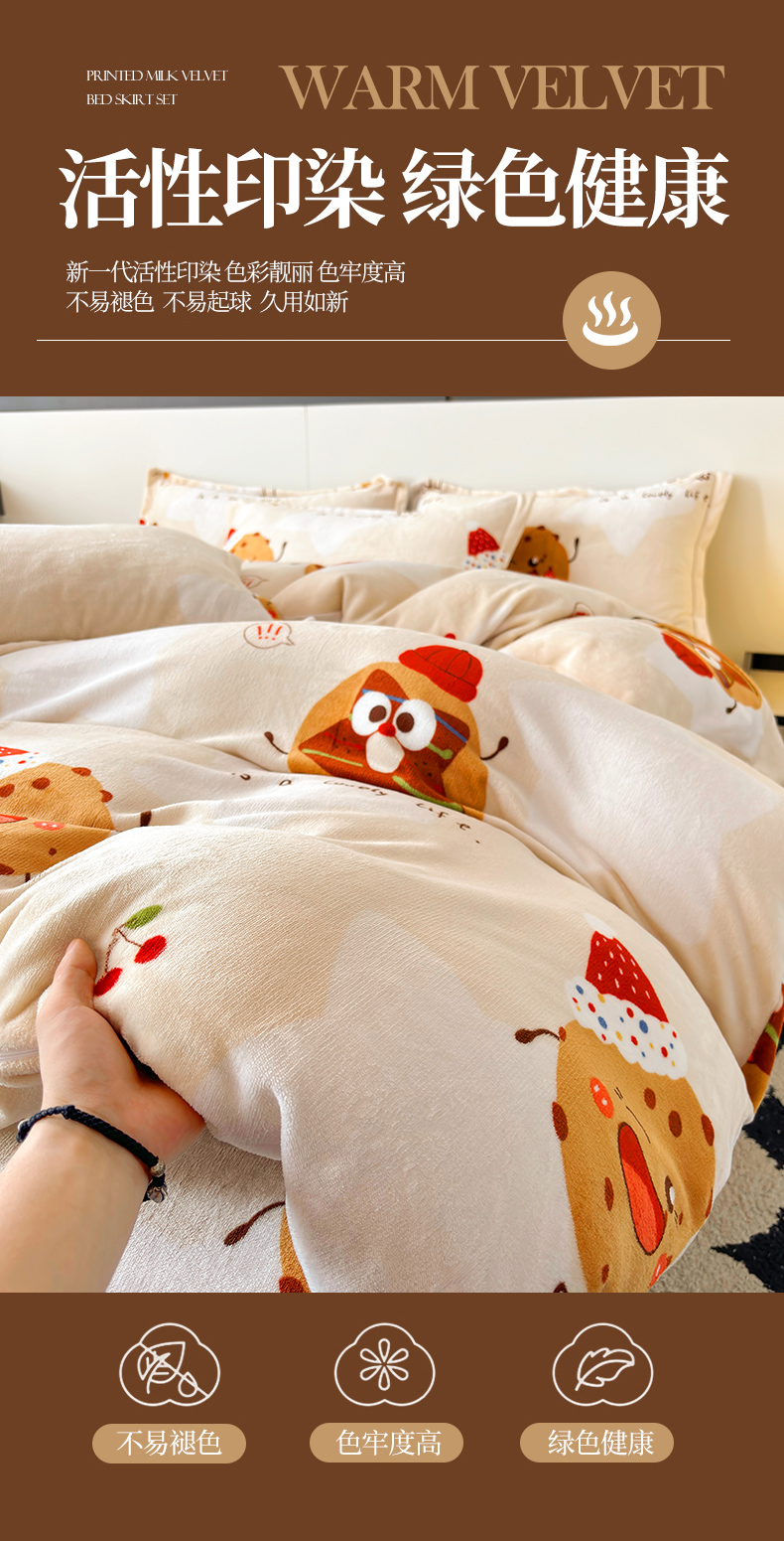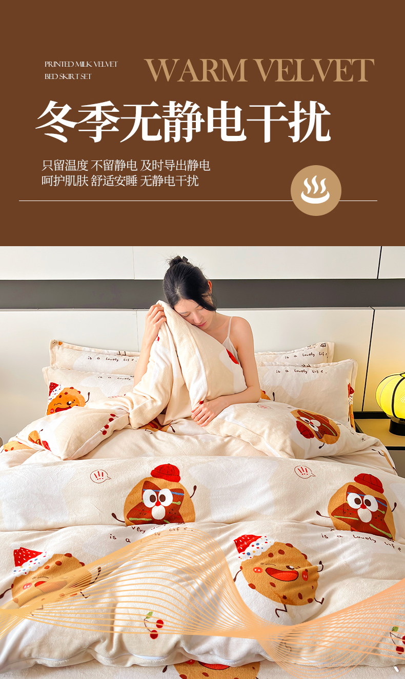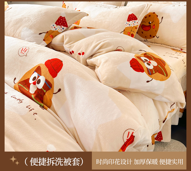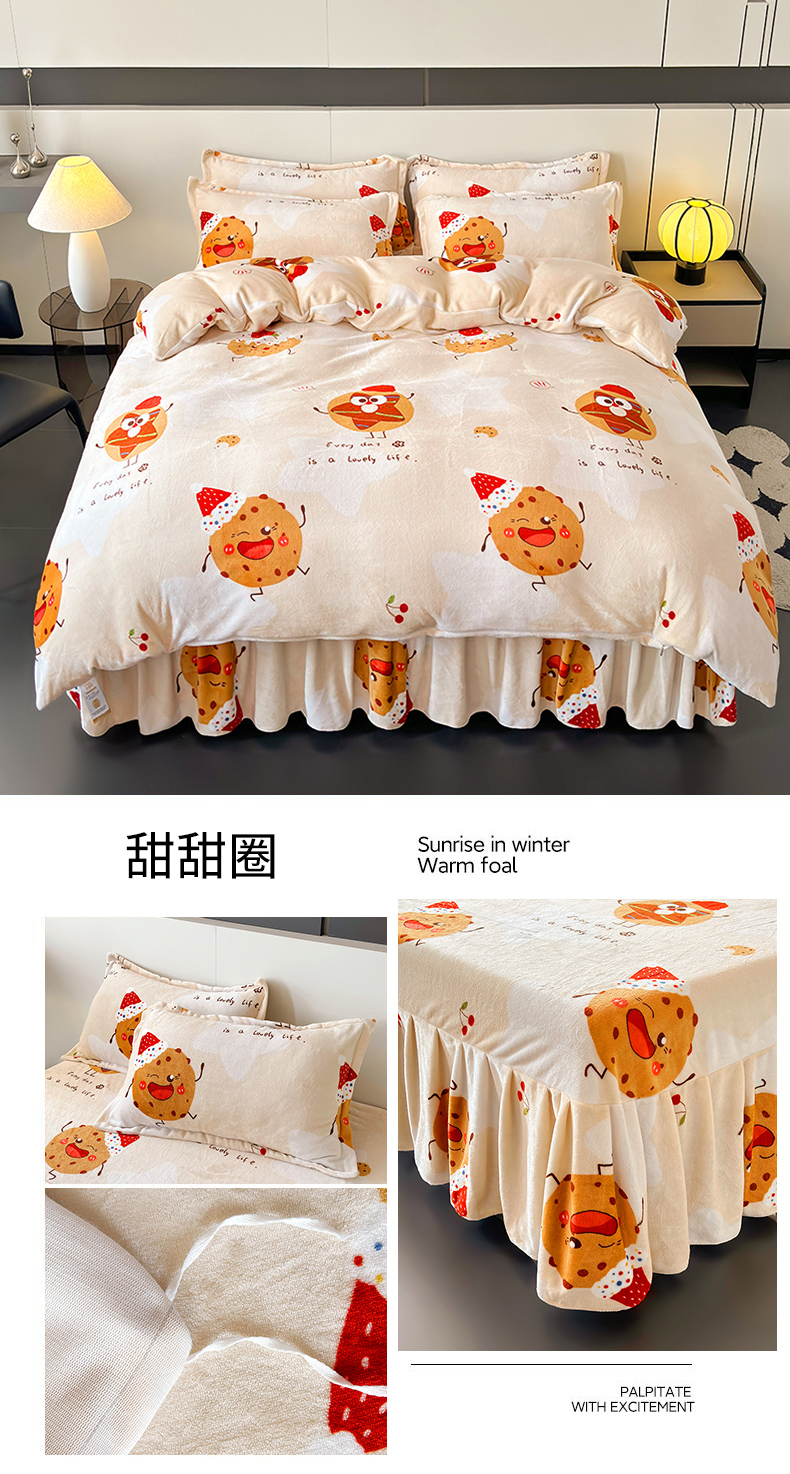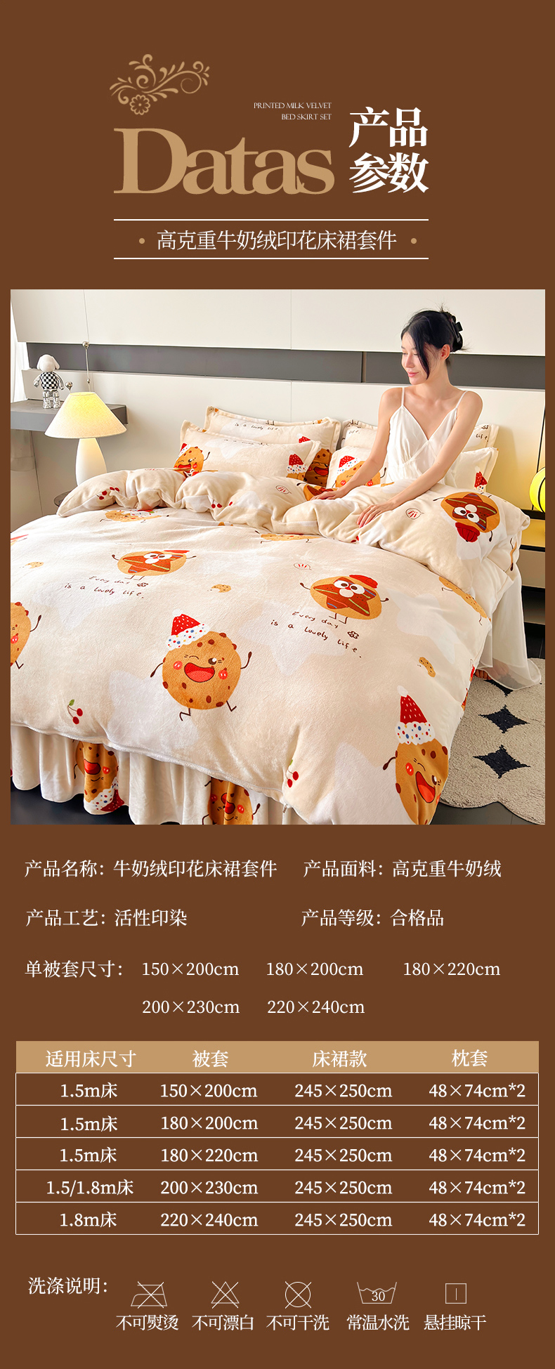 当前位置: 91家纺网 > 商品网购 > 床品套件 > 四件套 > 牛奶绒四件套 > 董韵家纺 2025新款高克重全消光牛奶绒法莱绒金貂绒印花单品被套床裙四件套(提供买家秀)甜甜圈