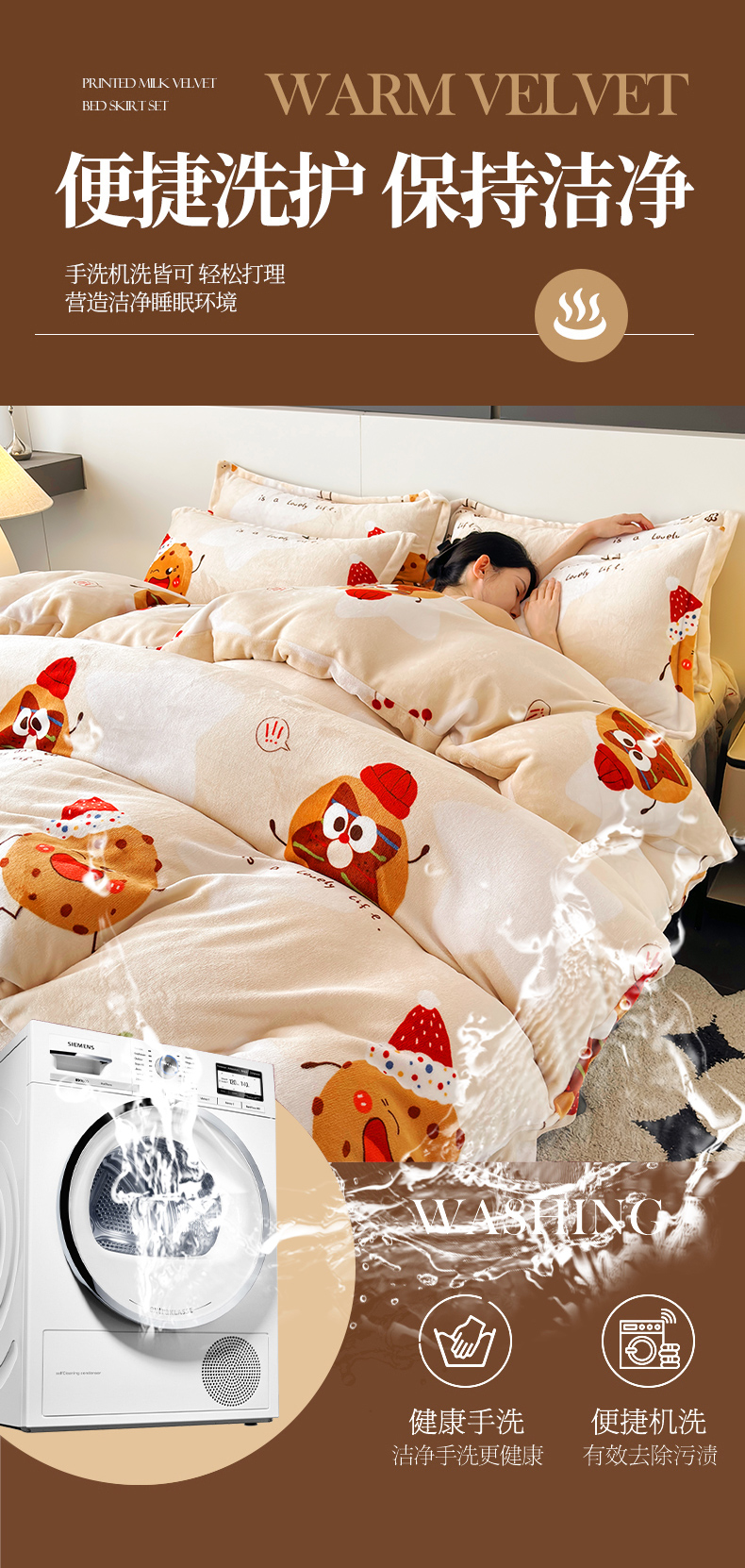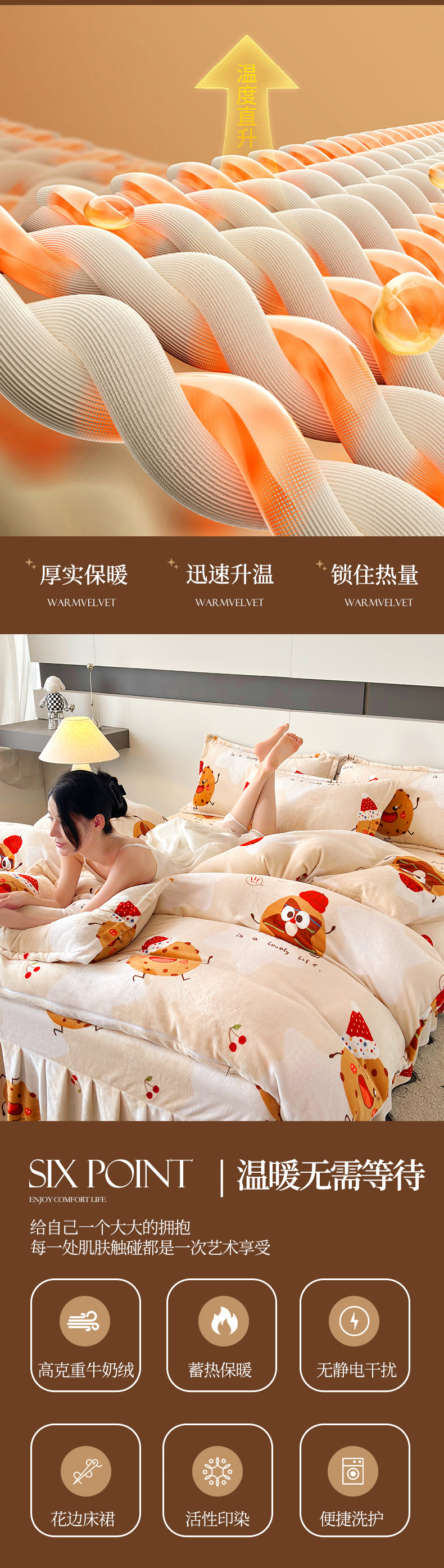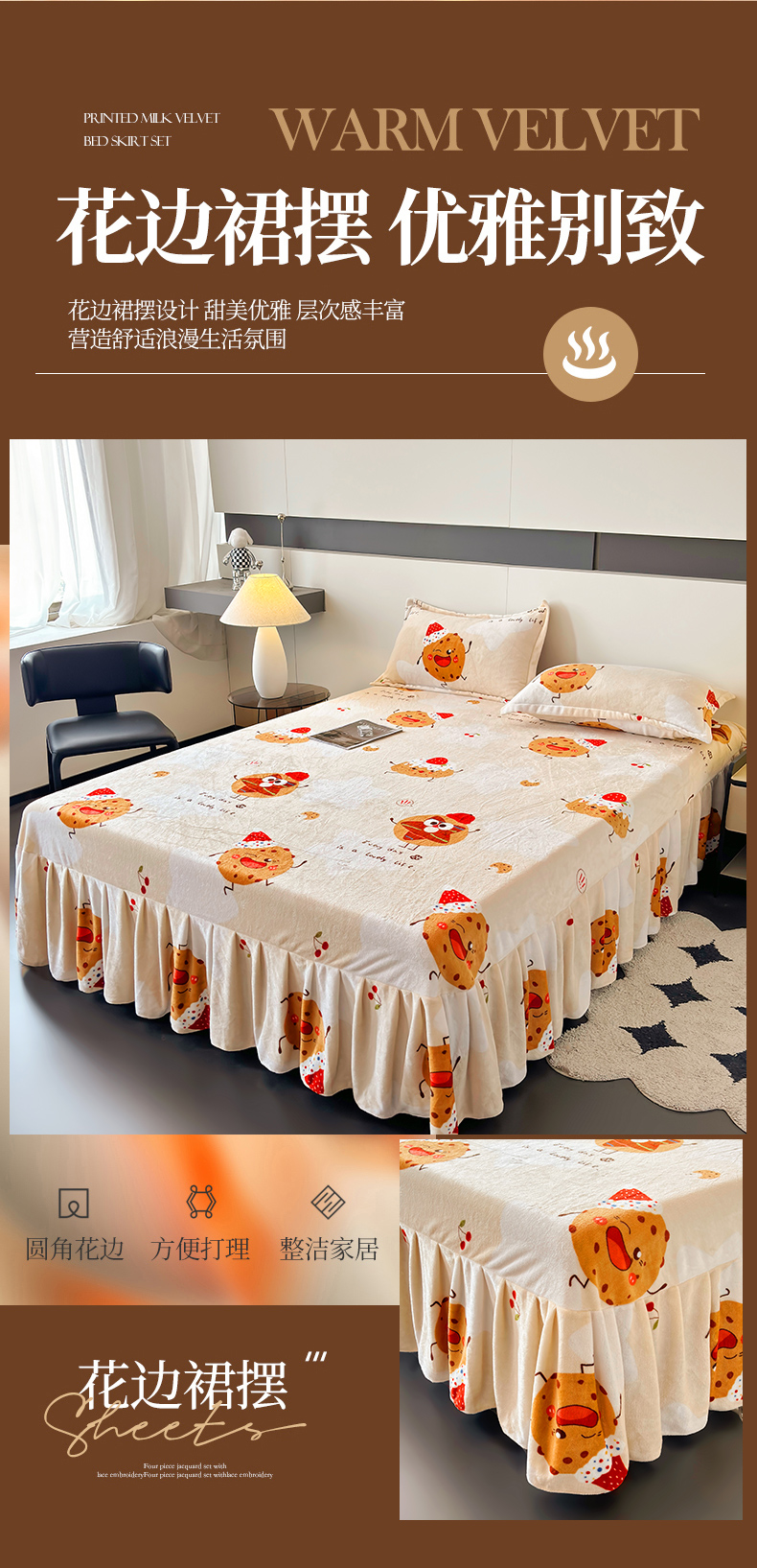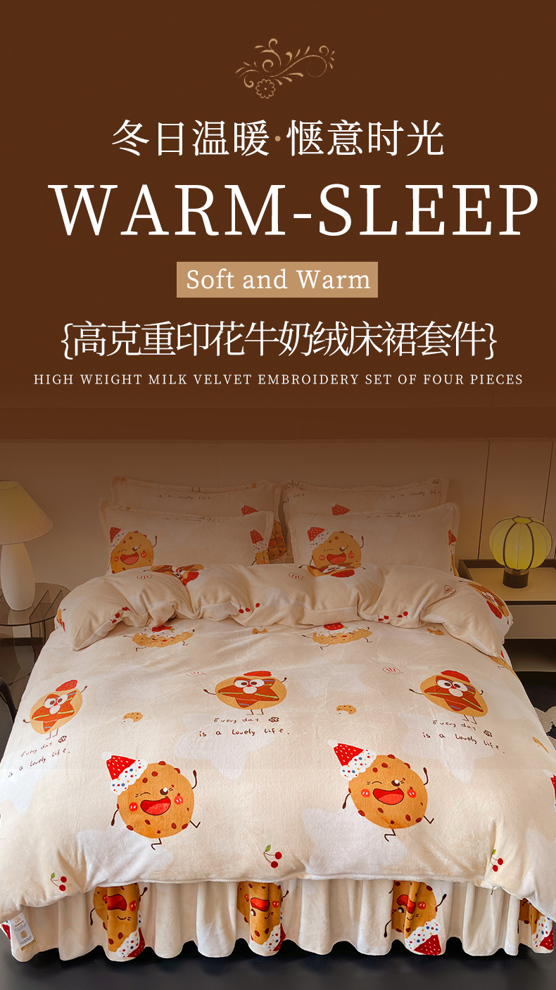 当前位置: 91家纺网 > 商品网购 > 床品套件 > 四件套 > 牛奶绒四件套 > 董韵家纺 2025新款高克重全消光牛奶绒法莱绒金貂绒印花单品被套床裙四件套(提供买家秀)甜甜圈