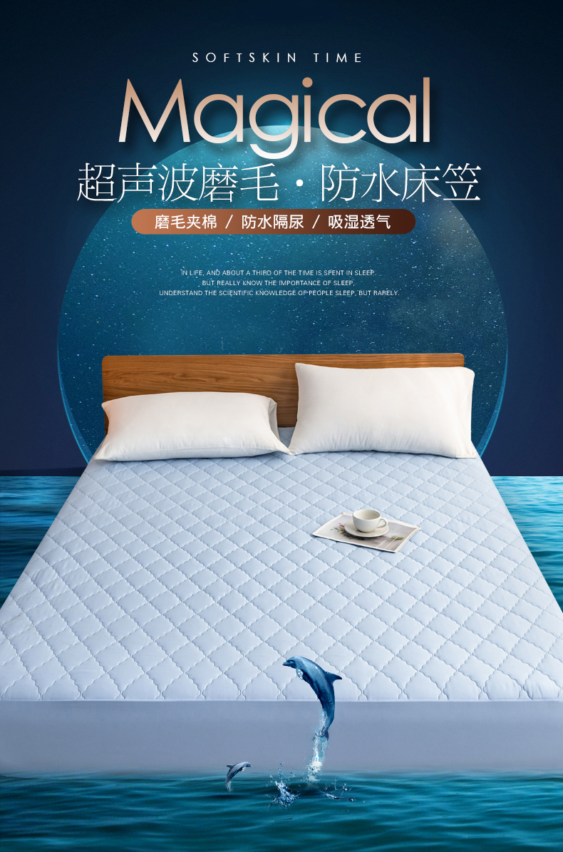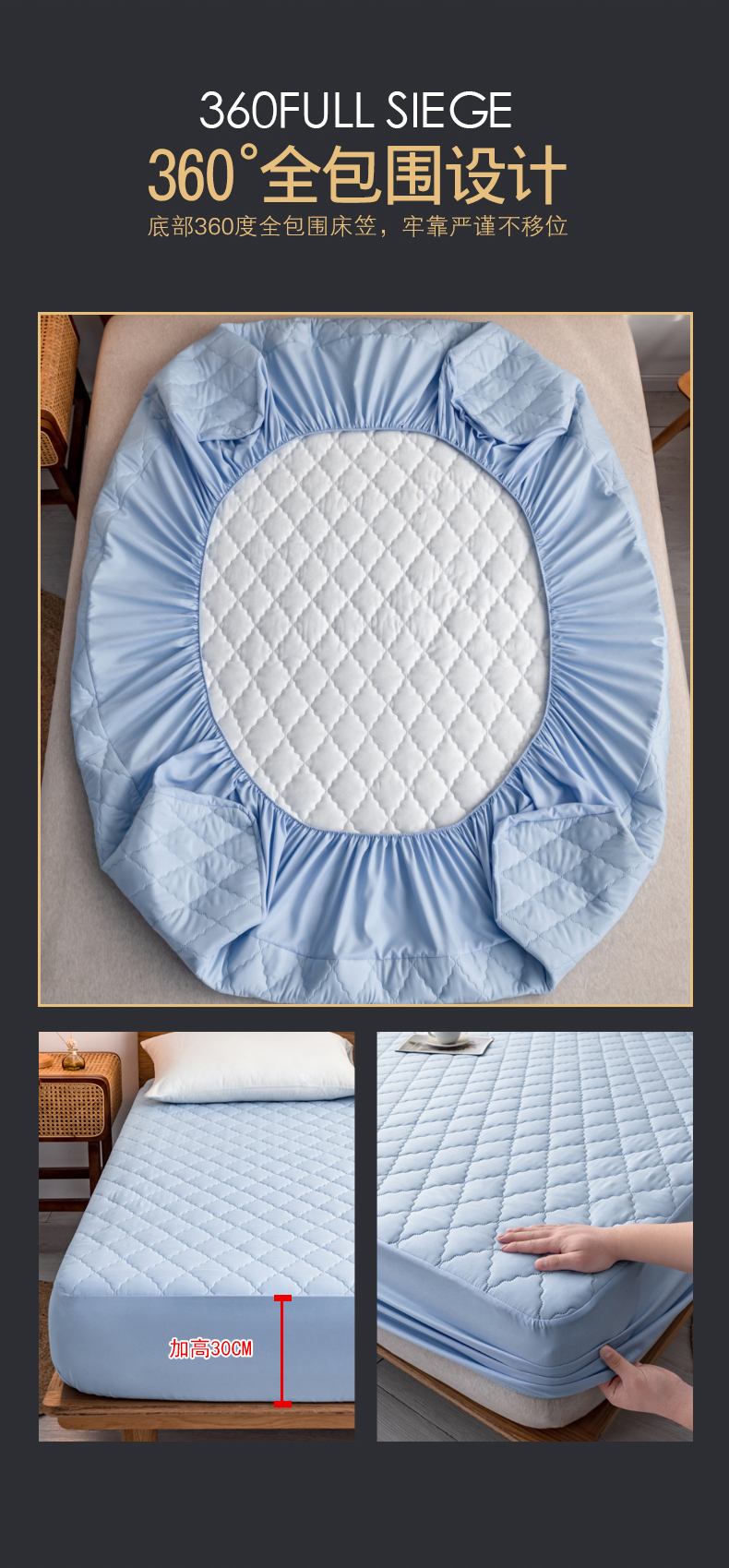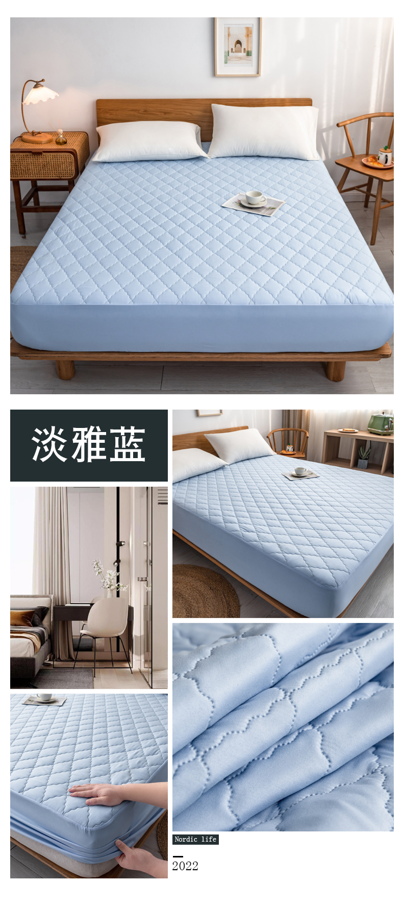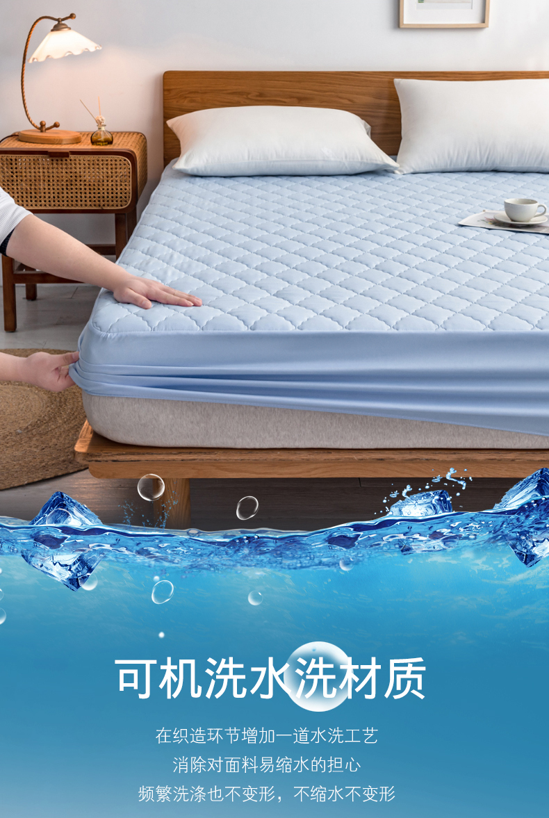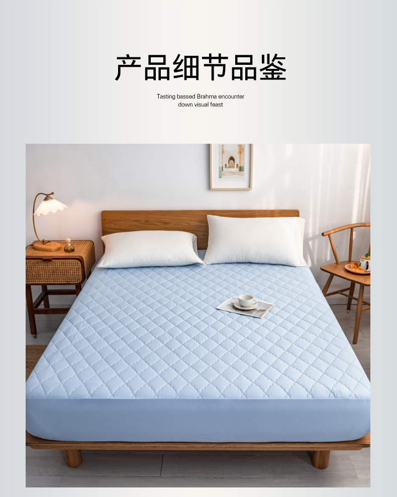 商品名称:2024新款加厚夹棉防水床笠素色-【四季款】 淡雅蓝