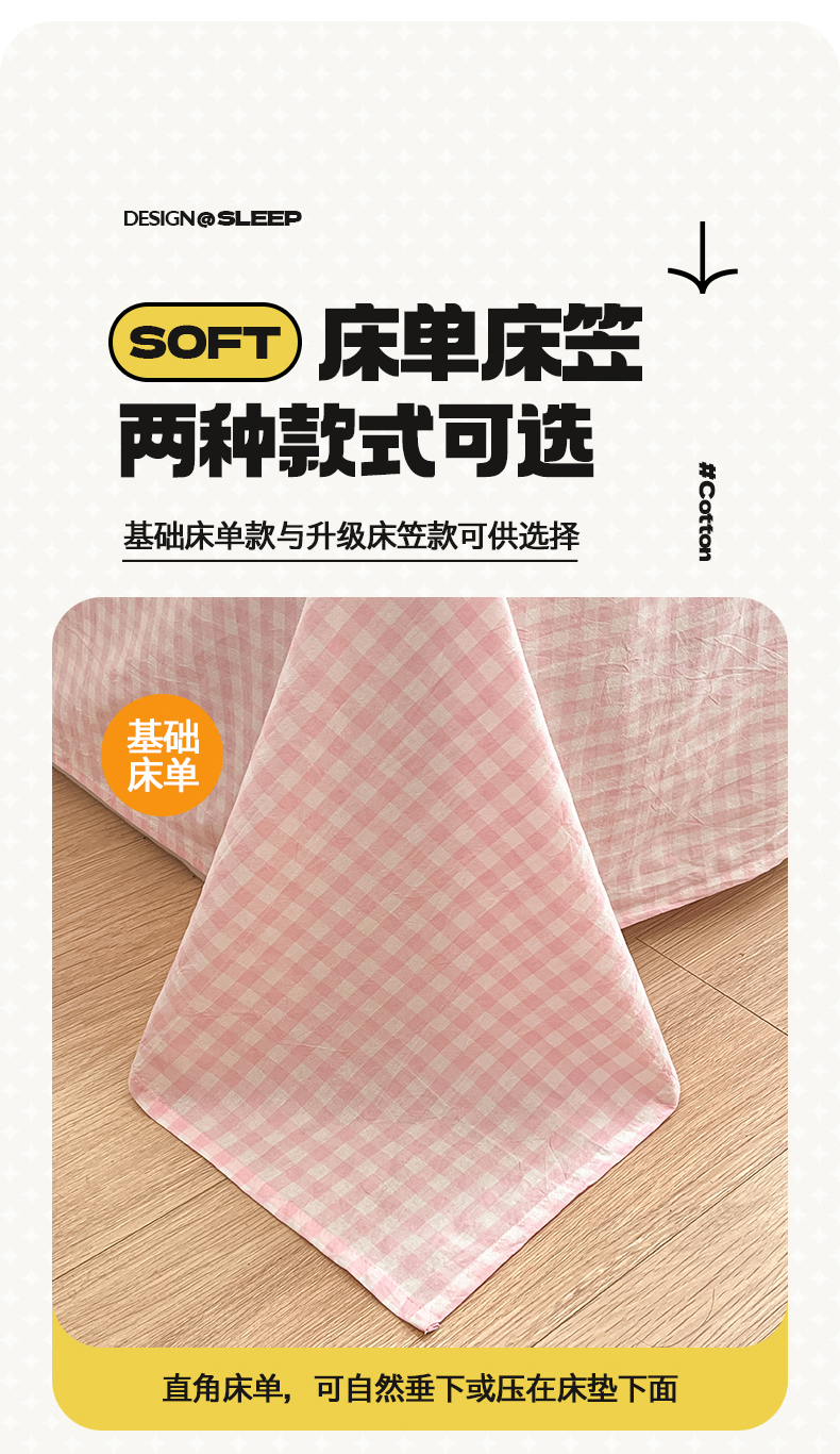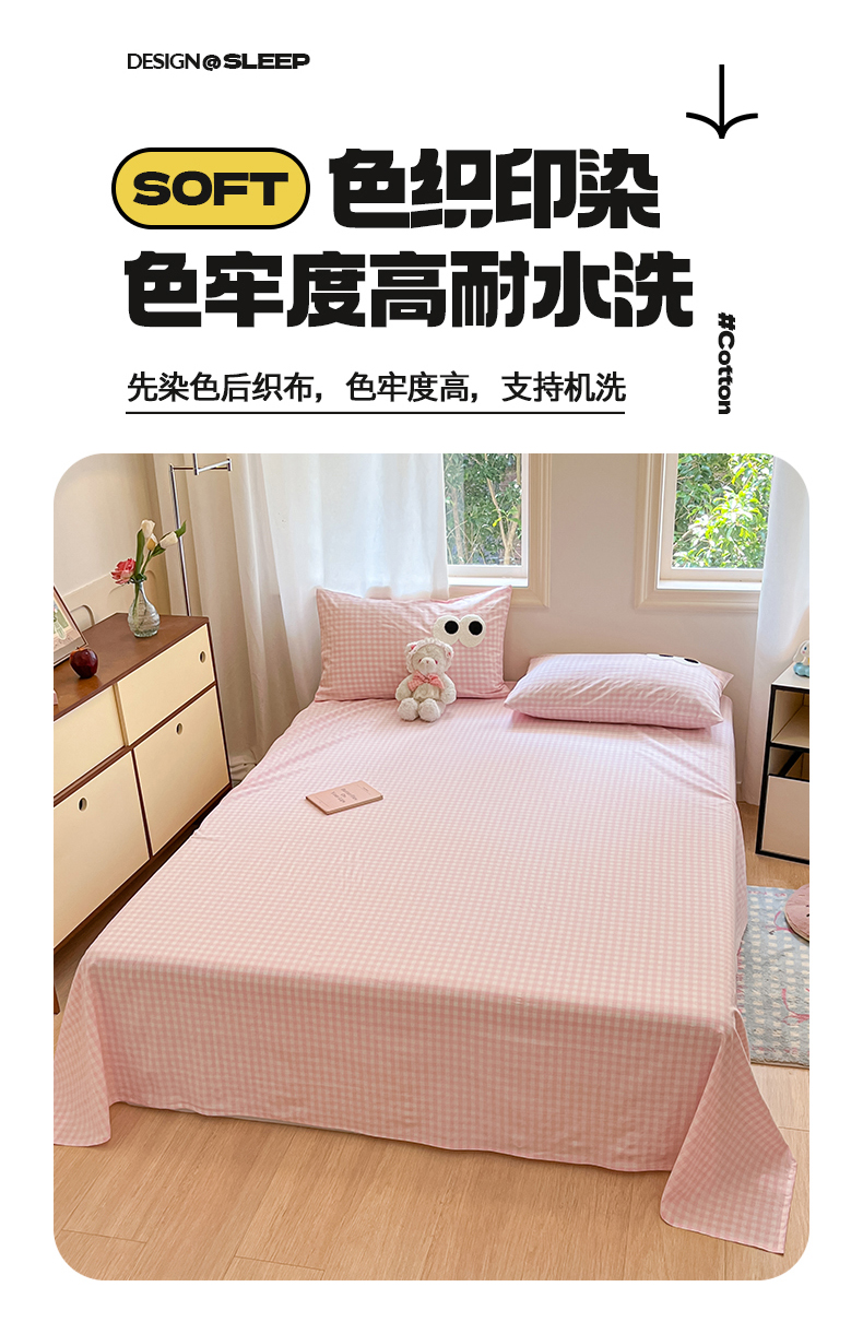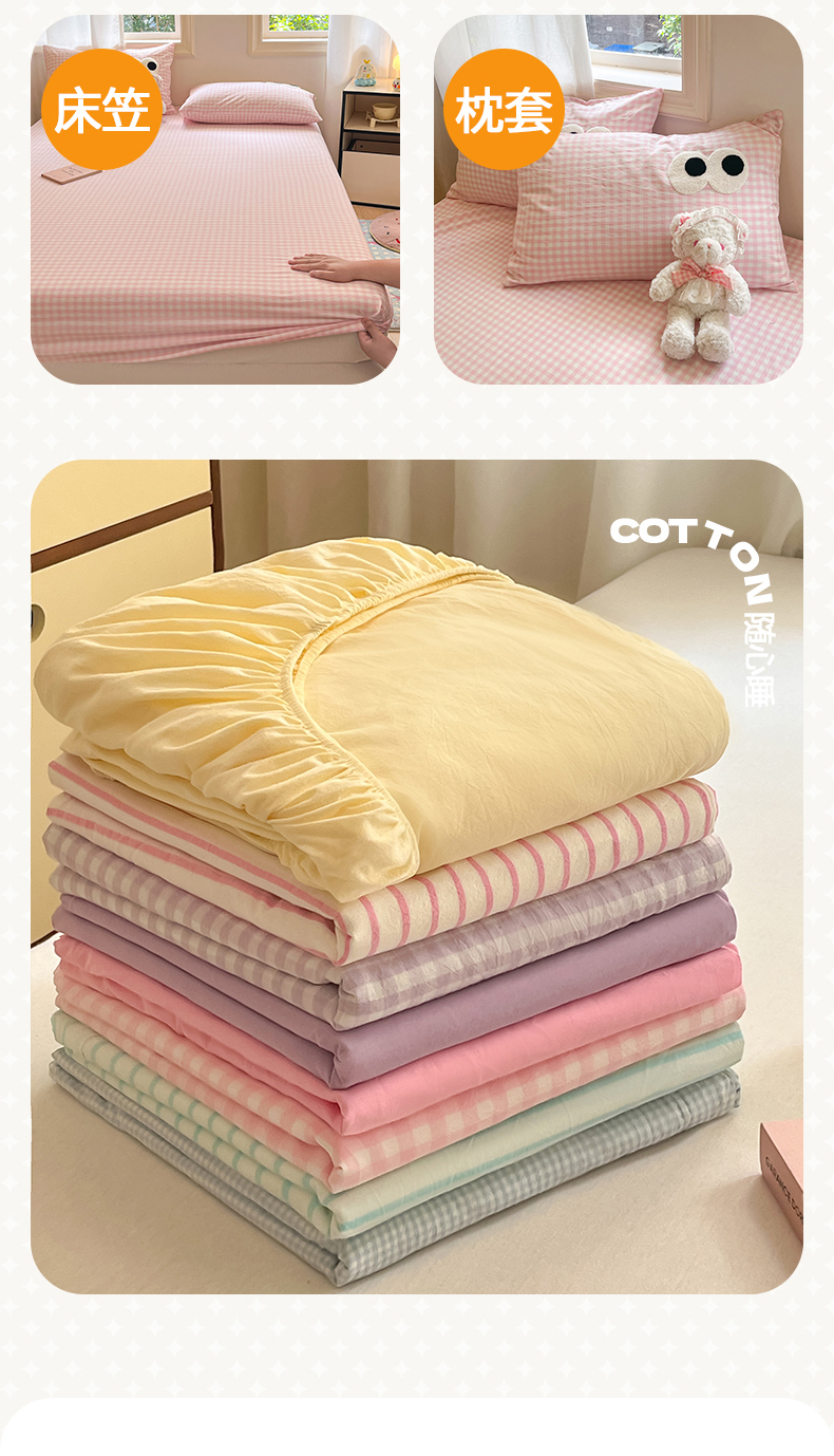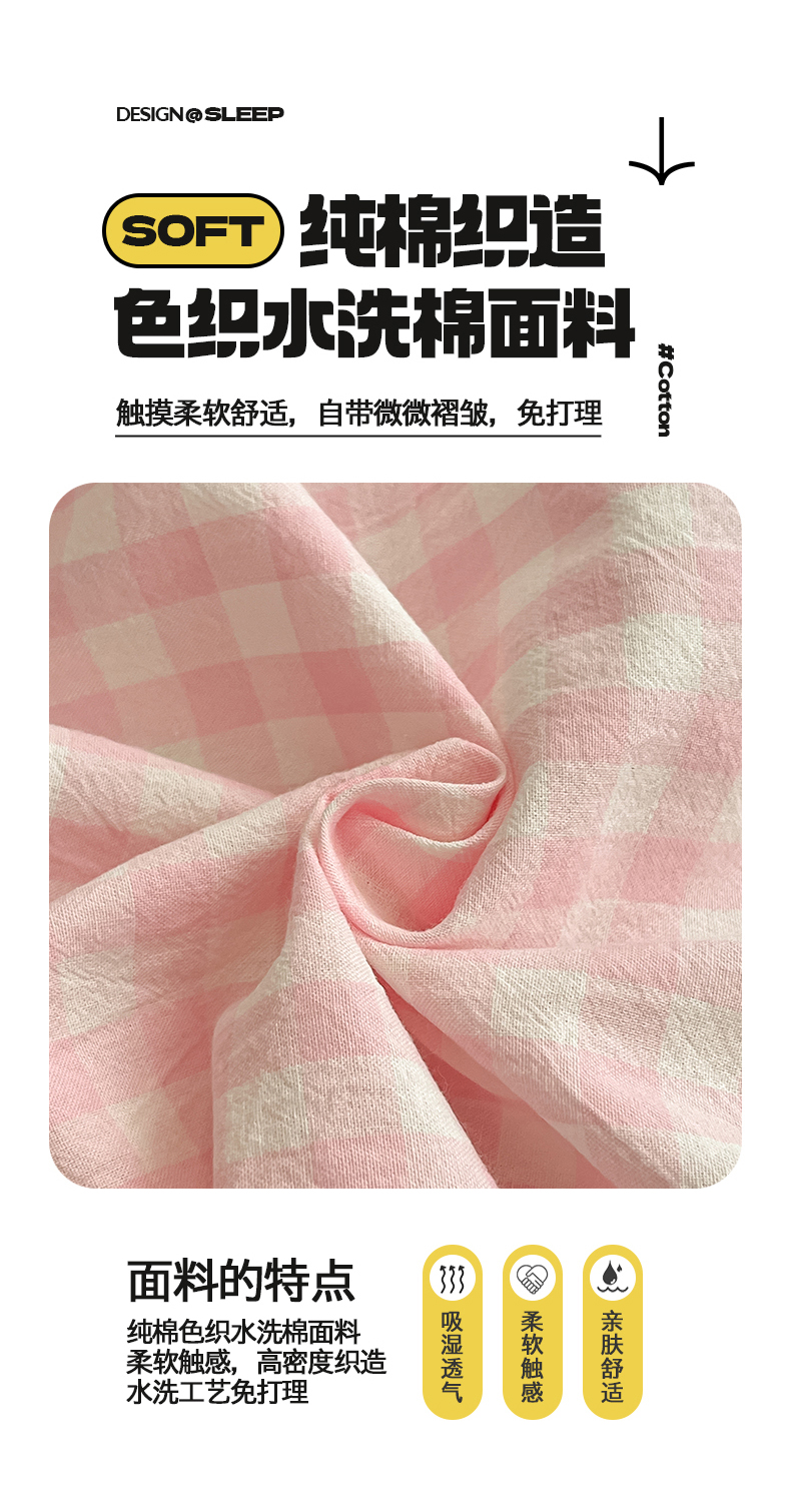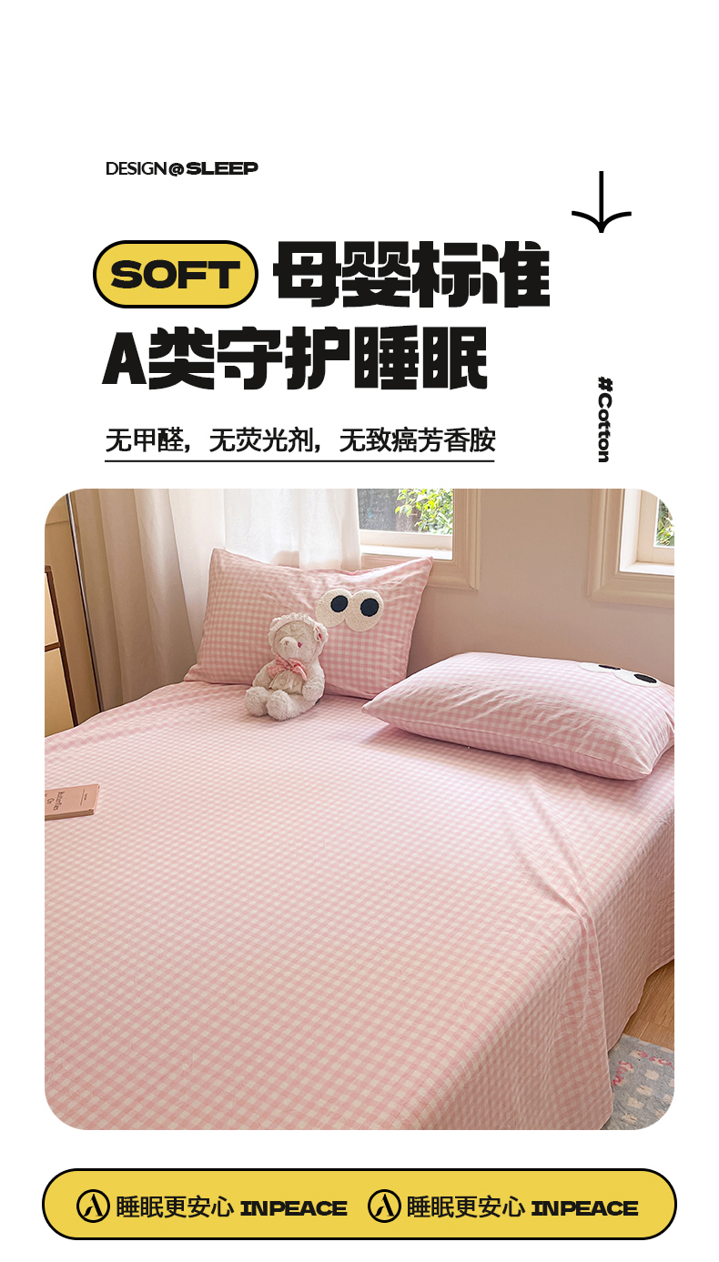 • 91家纺网 家纺一手货源 找家纺 桃子 2024新款ins纯棉色织水洗毛巾绣大眼仔单床笠 色织水洗棉-大眼仔粉格