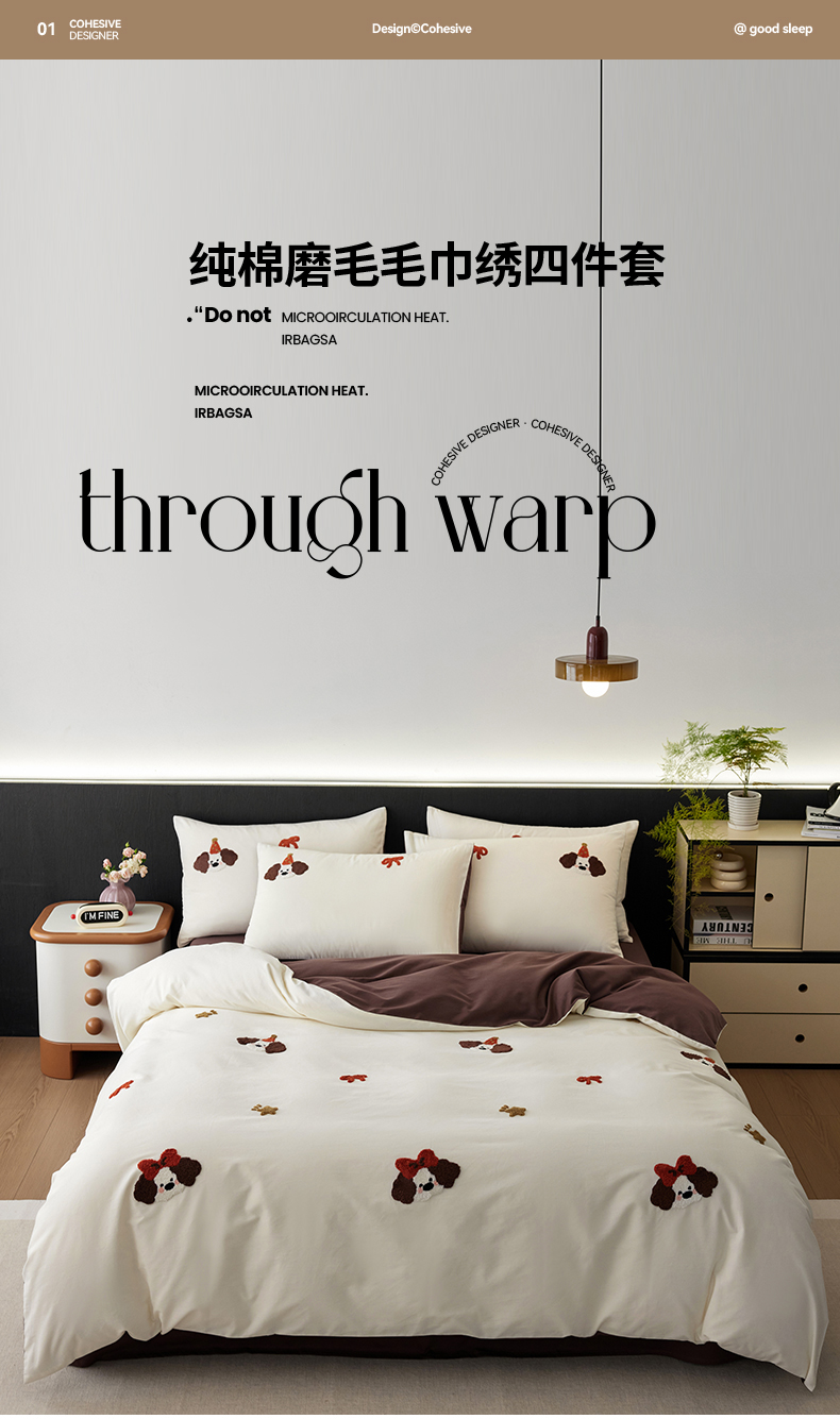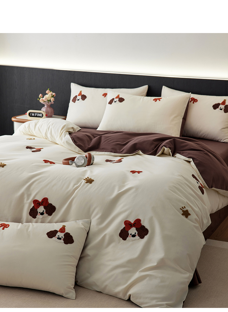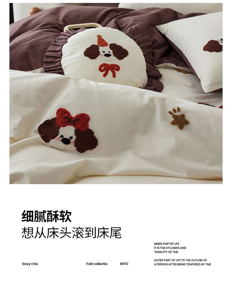 当前位置: 91家纺网 > 商品网购 > 床品套件 > 四件套 > 毛巾绣四件套 > 简纯主义 2025新款100S全棉磨毛毛巾绣甜甜系列四件套 星星狗