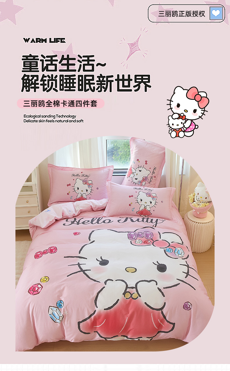 商品名称:蘭菲家纺 2024新款全棉大版卡通三丽鸥四件套 向往
