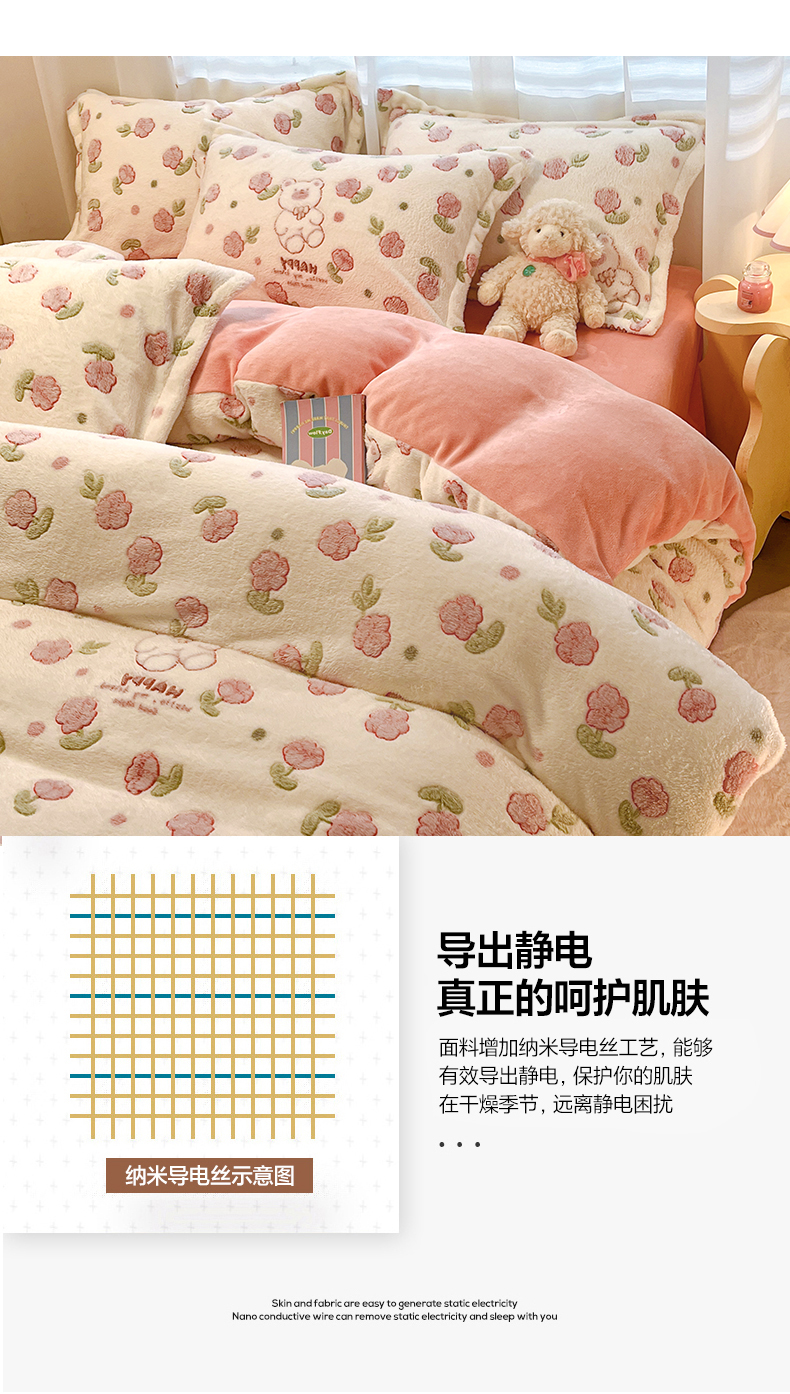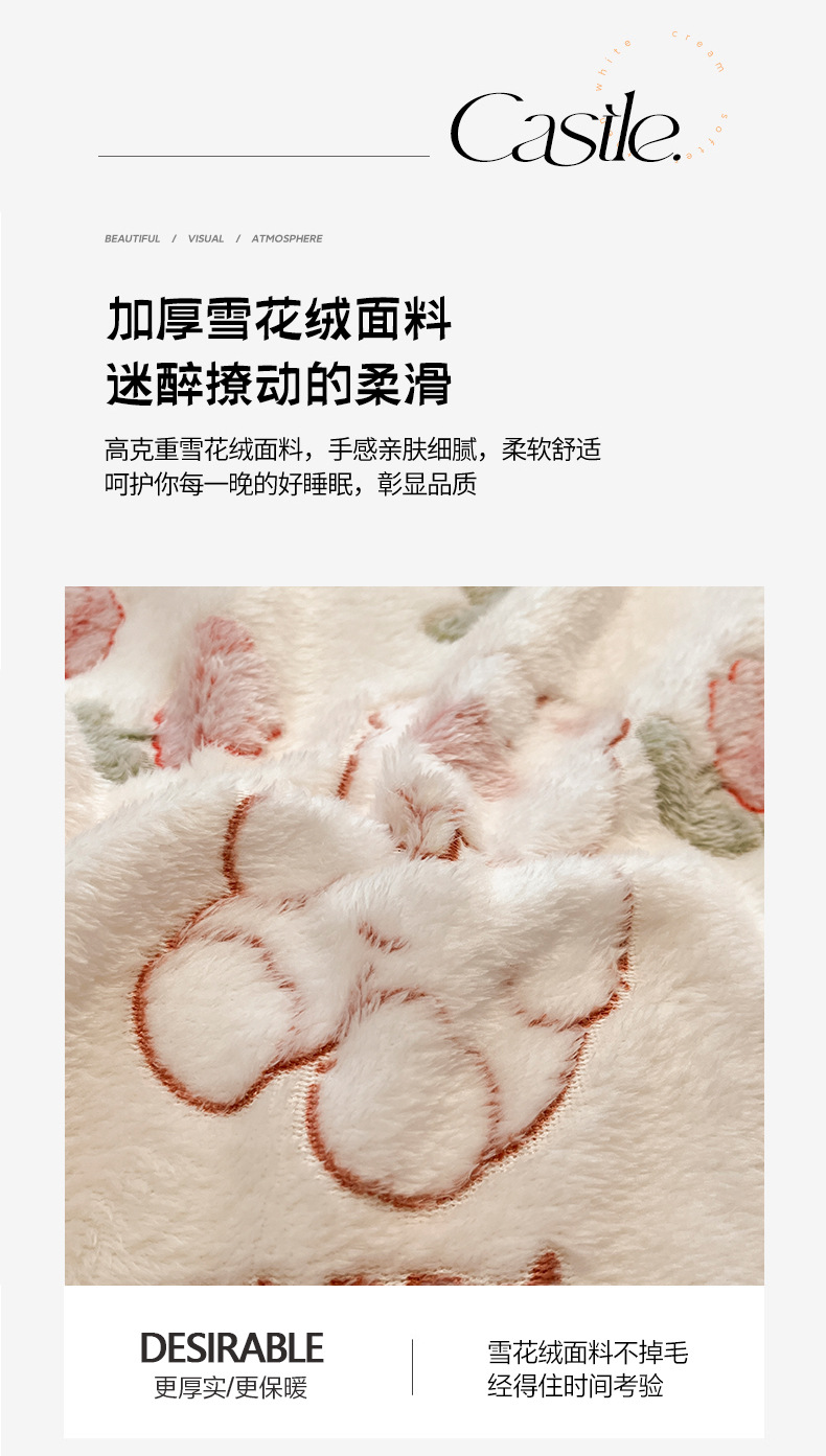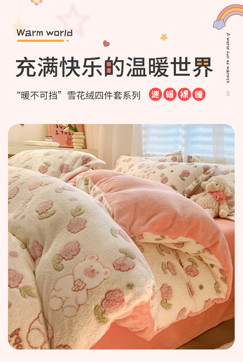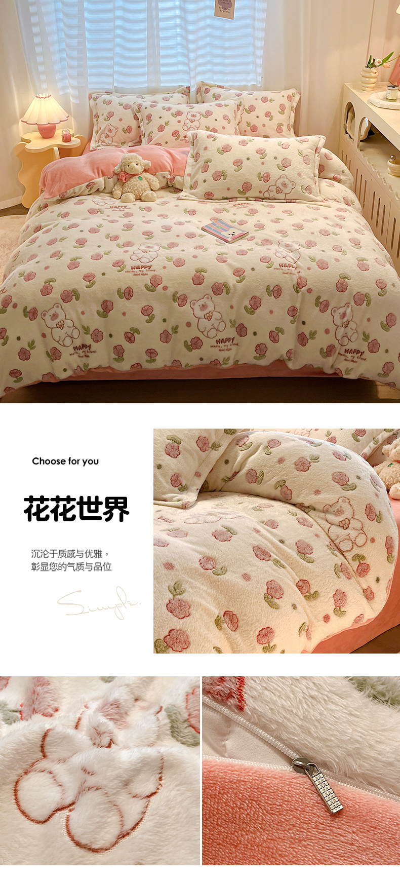 当前位置: 91家纺网 > 商品网购 > 床品套件 > 四件套 > 其它四件套 > 韩巢家纺 2024新款加厚雪花绒印花四件套-风格一(提供卖家秀) 花花世界