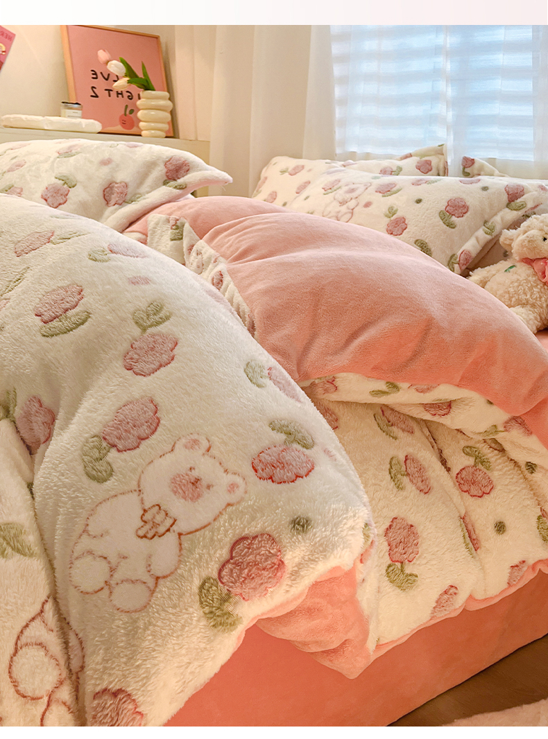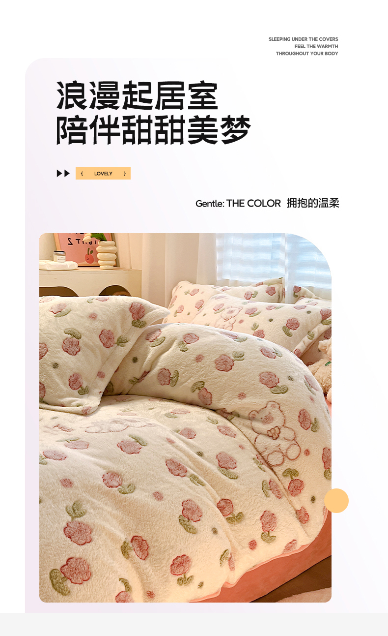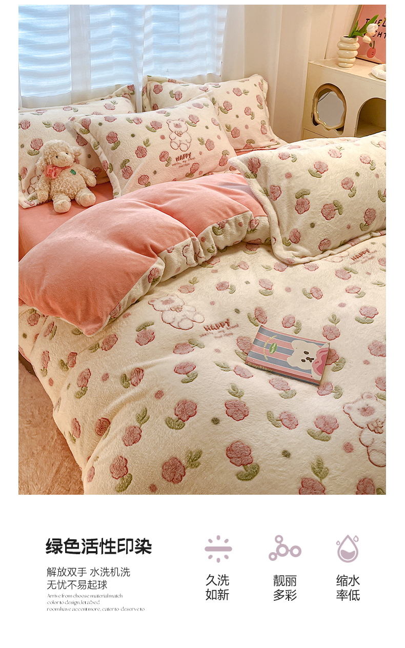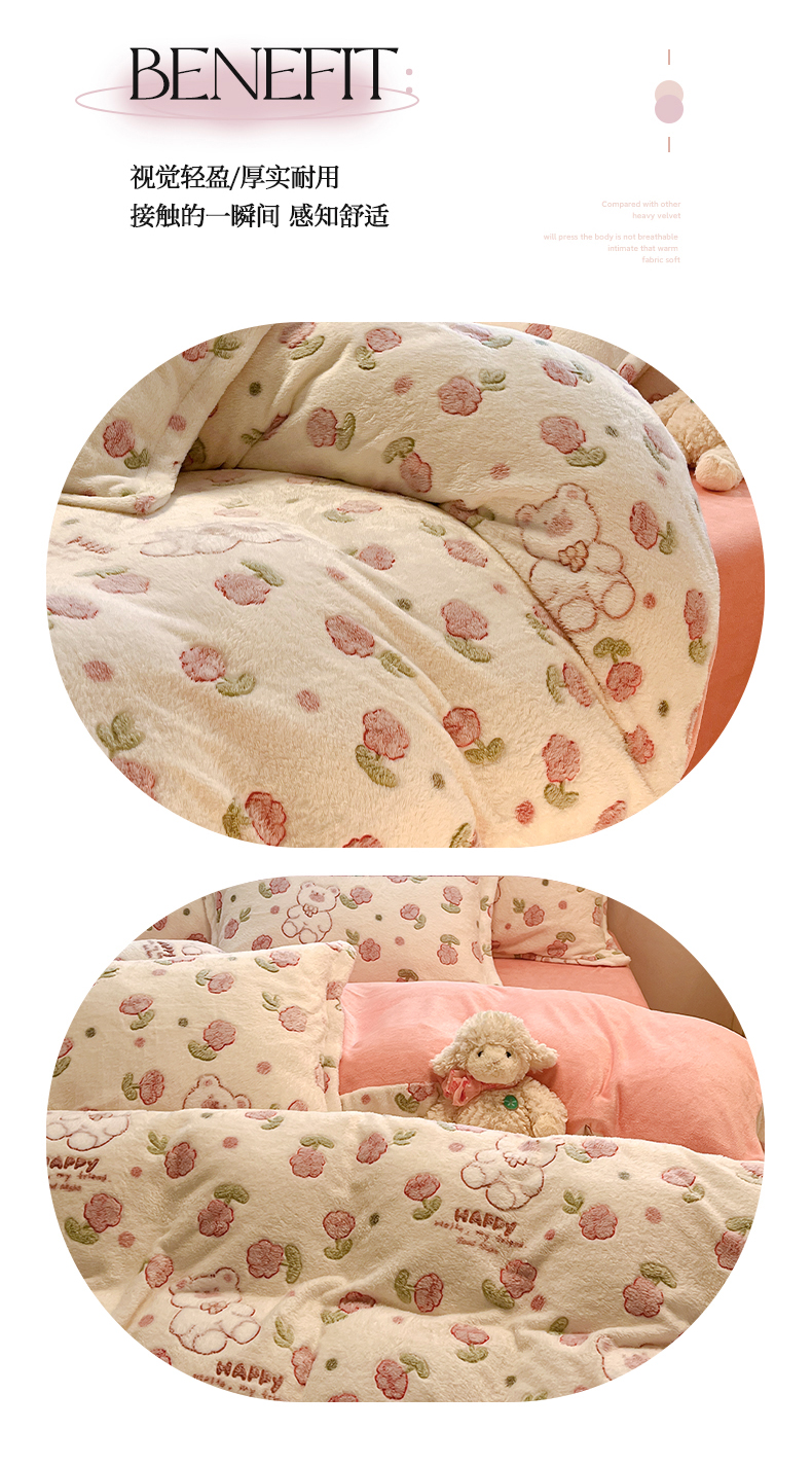 当前位置: 91家纺网 > 商品网购 > 床品套件 > 四件套 > 其它四件套 > 韩巢家纺 2024新款加厚雪花绒印花四件套-风格一(提供卖家秀) 花花世界