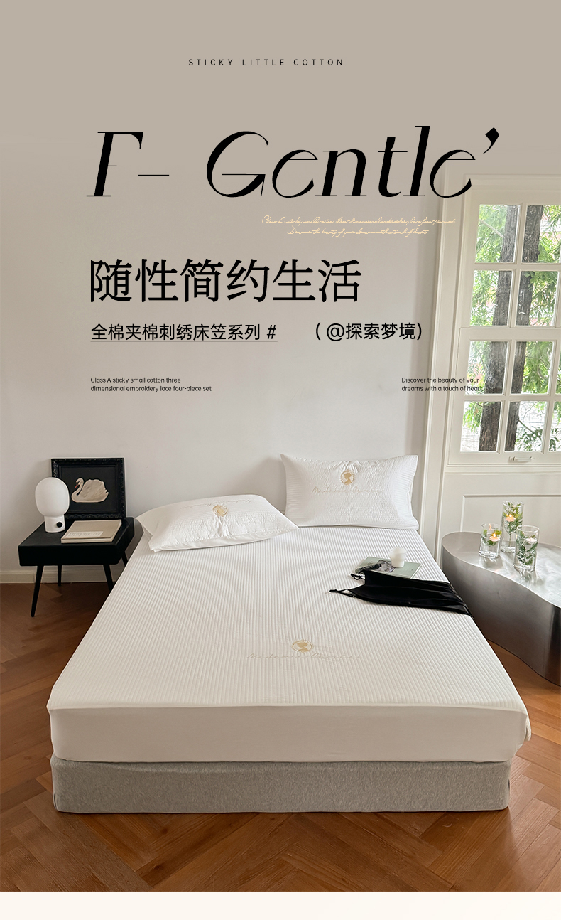 商品名称:(总)三味舒屋 2024新款全棉夹棉刺绣床笠系列-梦莎白