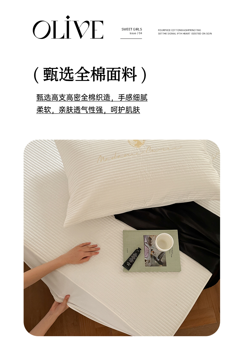 (总)三味舒屋 2025新款简约全棉纯棉夹棉床笠单床笠床笠单件-珍妮系列(严控券后控价:券后128/148/158元),珍妮白,珍妮粉,珍妮咖