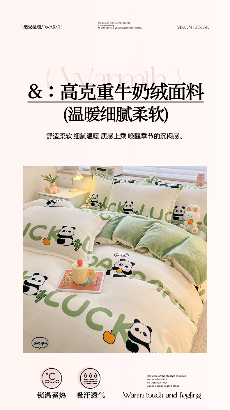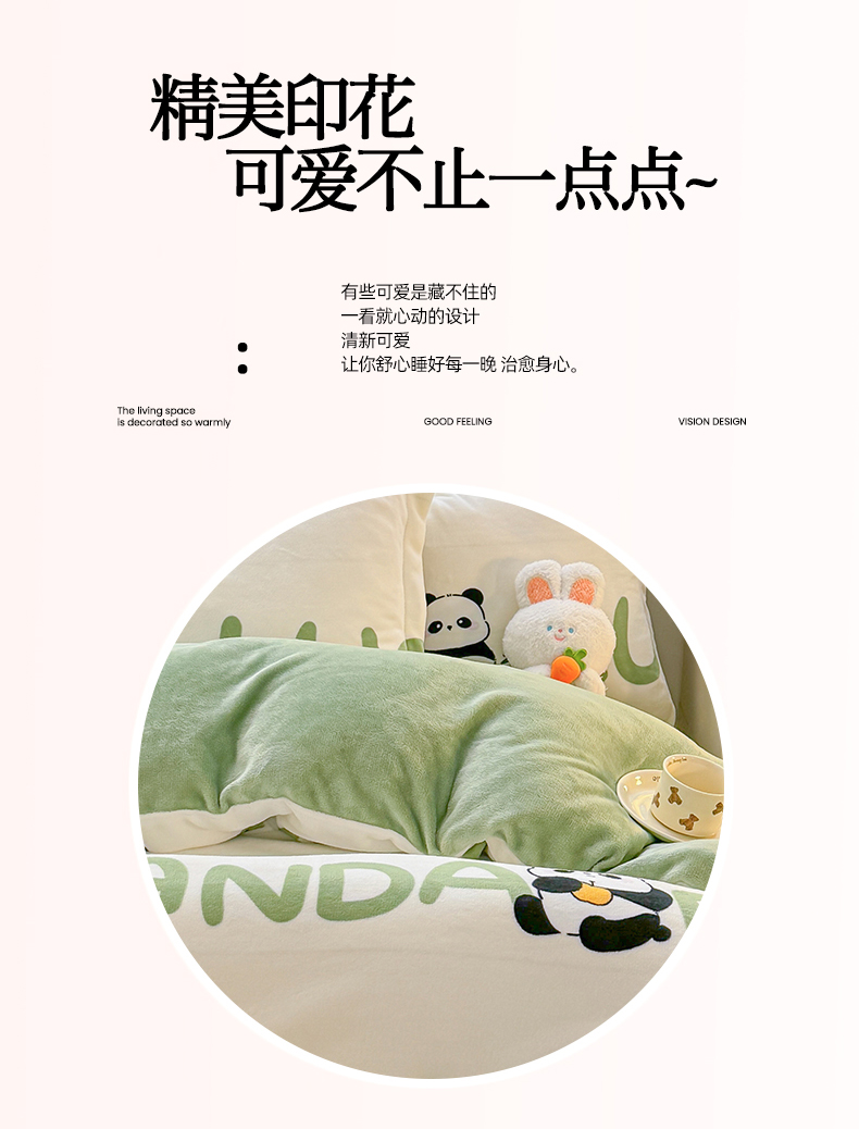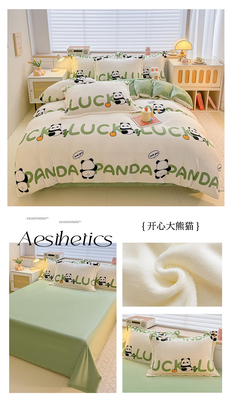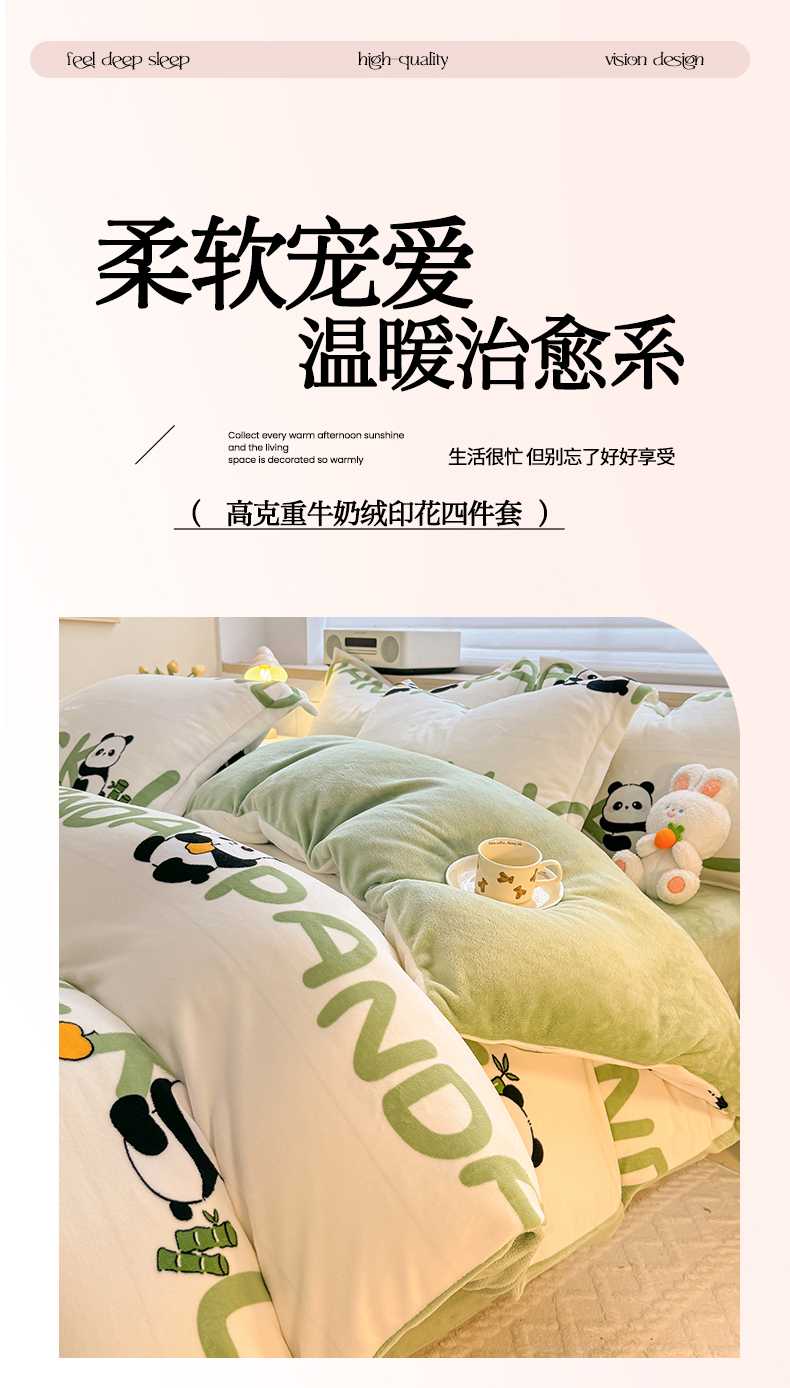 当前位置: 91家纺网 > 商品网购 > 床品套件 > 四件套 > 牛奶绒四件套 > 妖妖家纺 2024新款高克重200克印花牛奶绒四件套 开心大熊猫