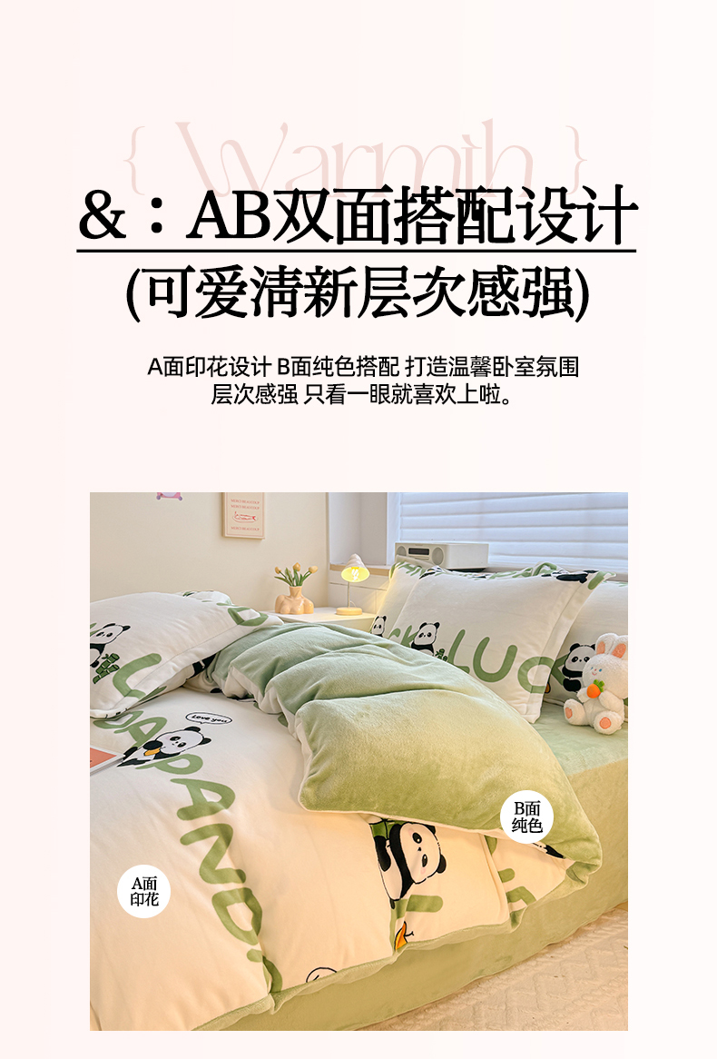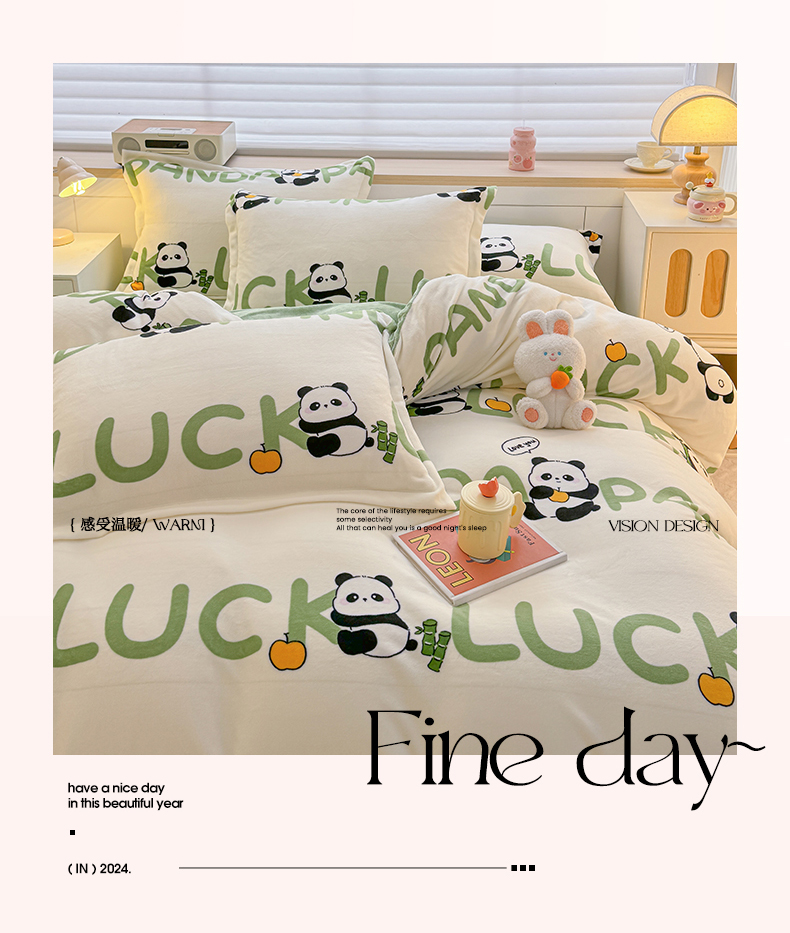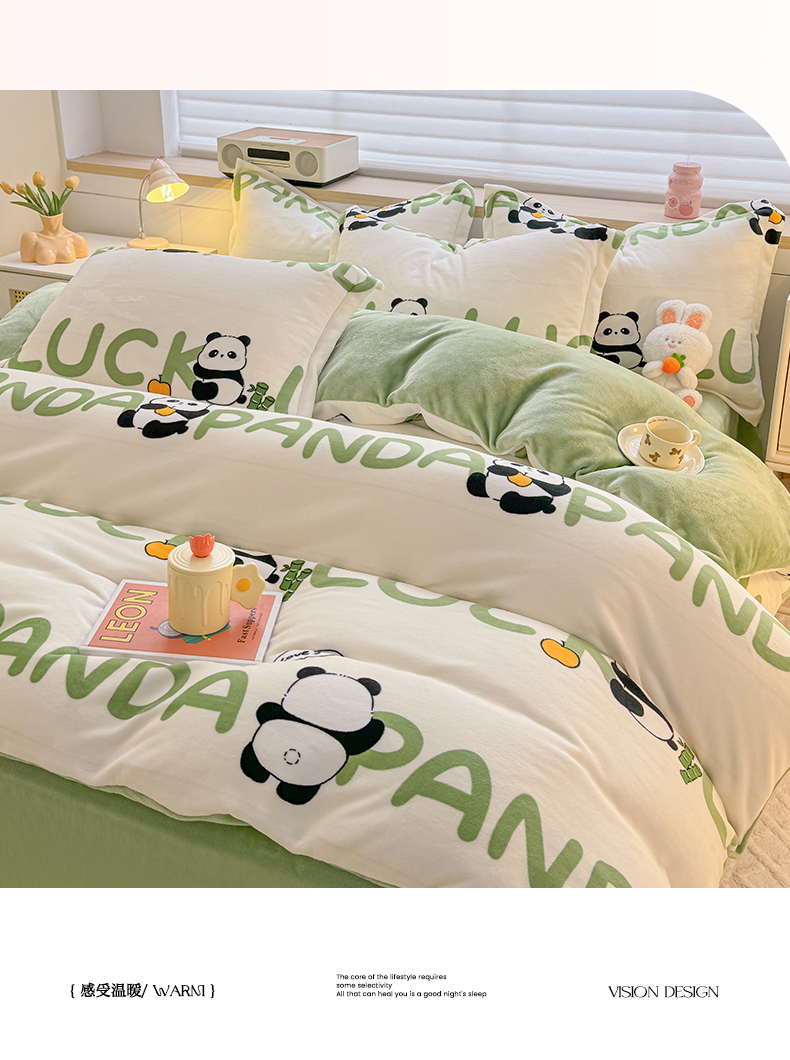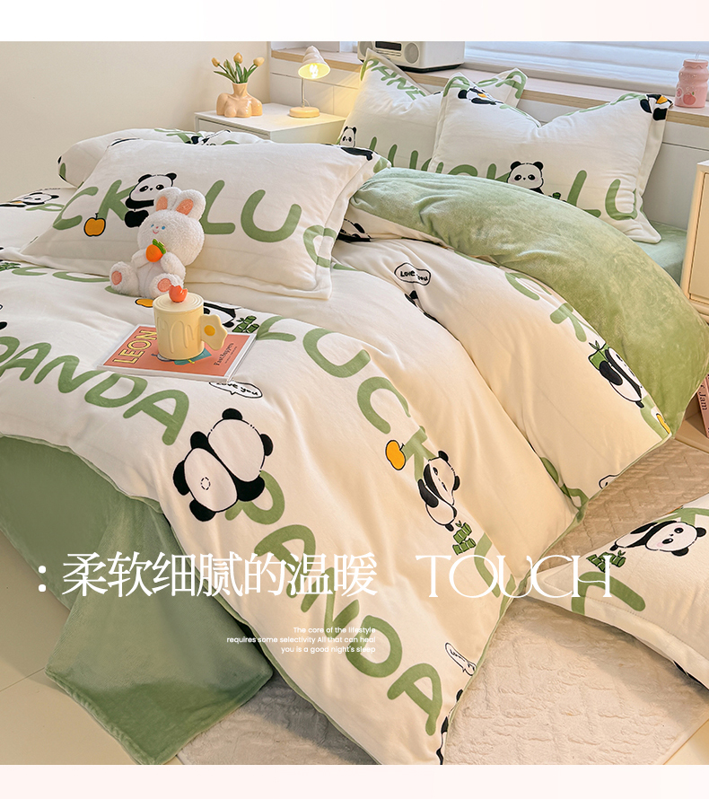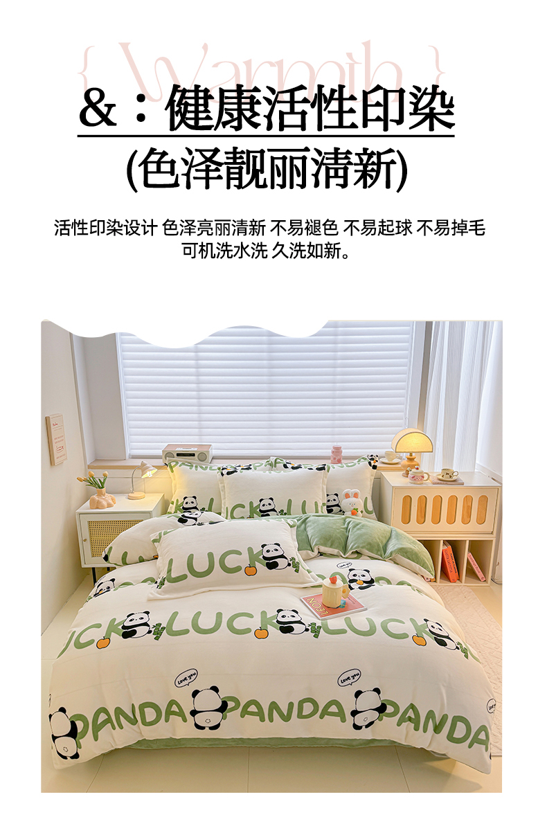 当前位置: 91家纺网 > 商品网购 > 床品套件 > 四件套 > 牛奶绒四件套 > 妖妖家纺 2024新款高克重200克印花牛奶绒四件套 开心大熊猫