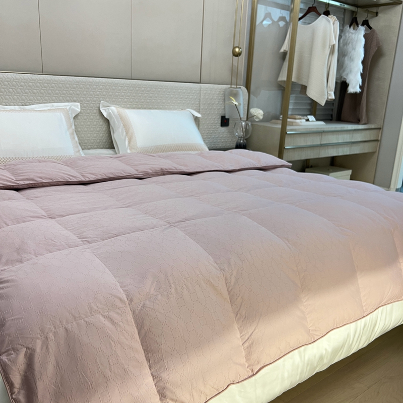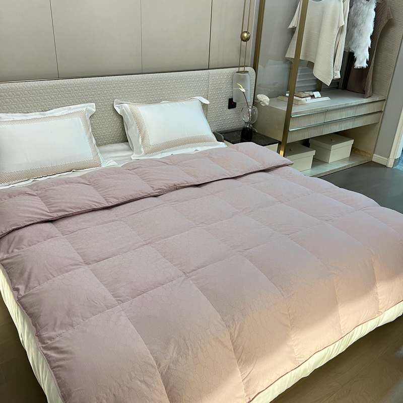 (总)静若居 2025新款高端提花羽绒被鸭绒被贡缎提花单层羽绒被壳,飘颜粉,飘金色,飘高级灰