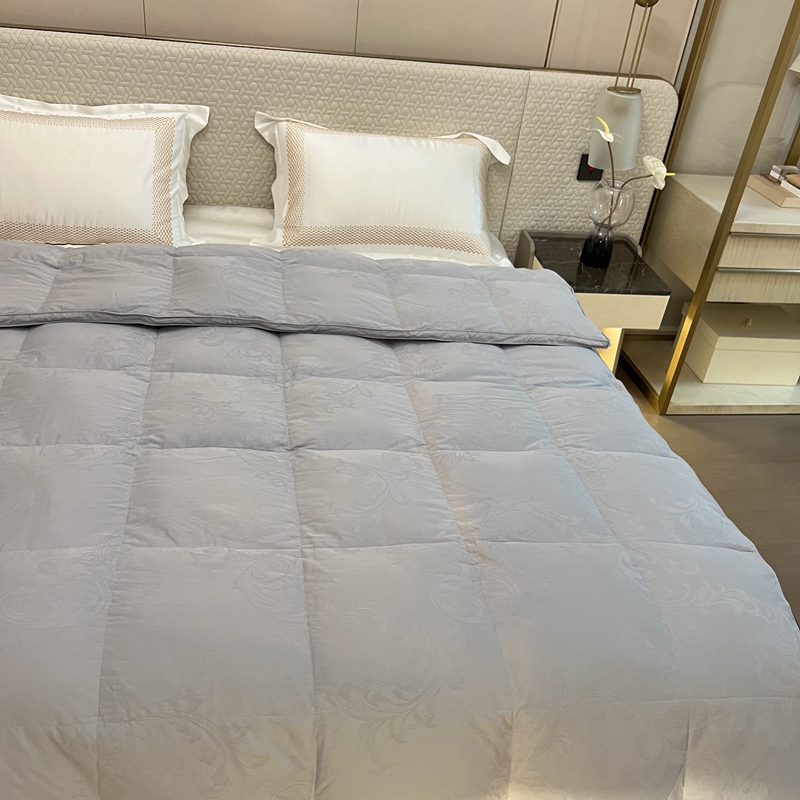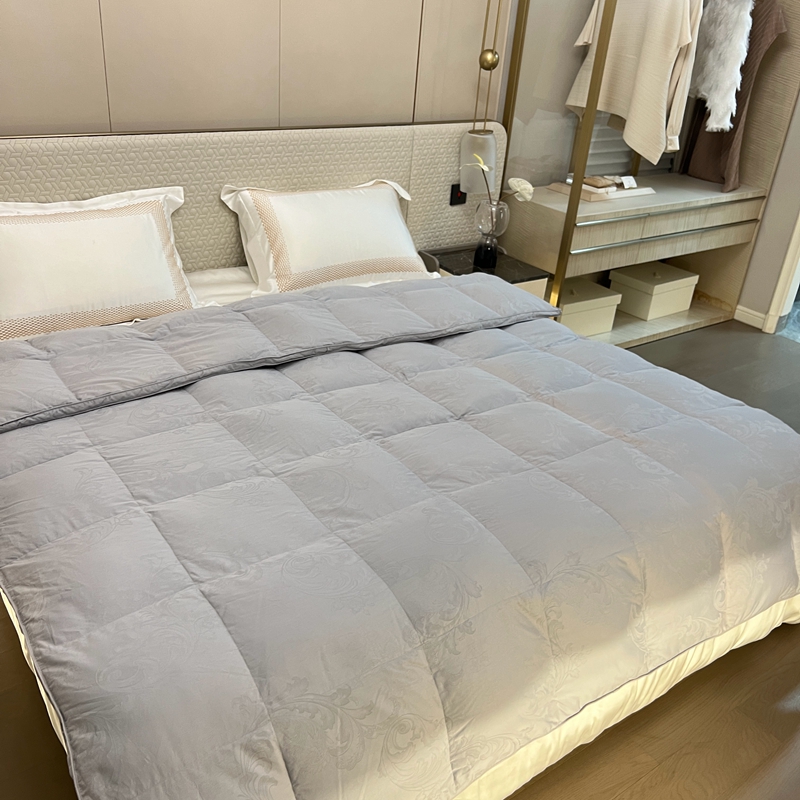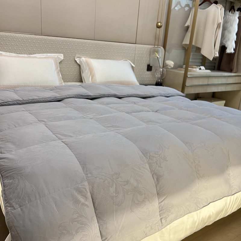 商品名称:静若居 2024新款双层大提花羽绒被壳不跑绒自充绒羽绒被壳厂家直销 双层凤尾灰色1
