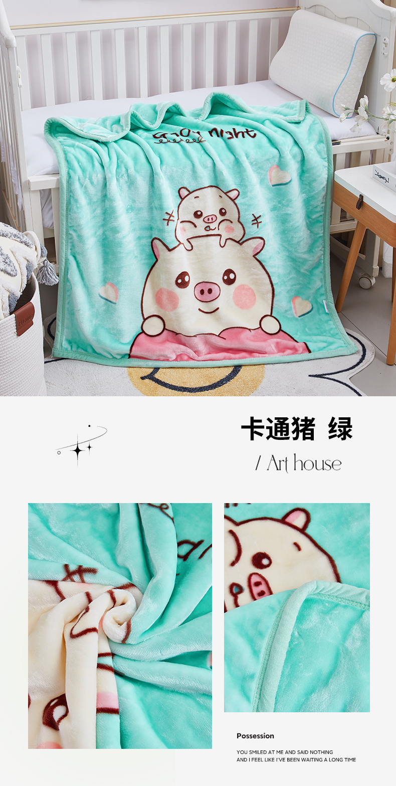 商品名称:凯轩毛毛毯毯子网销专供 2024新款加厚保暖儿童印花云毛毯毯子系列 卡通猪 绿