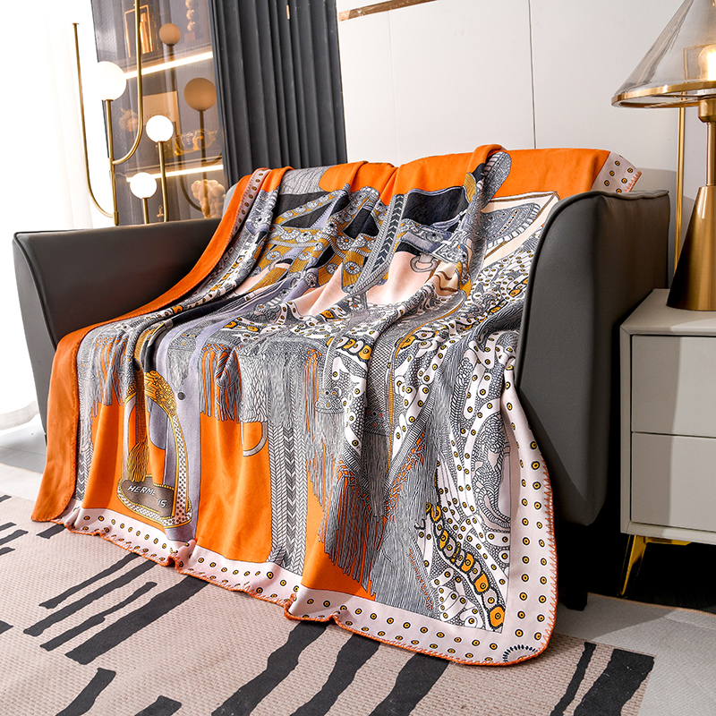 爵仕 2024高档锦狐绒毛毯复合毯奢华复古绒毯爱马风格 马鞍