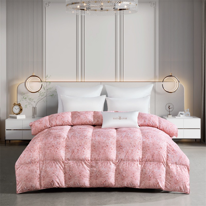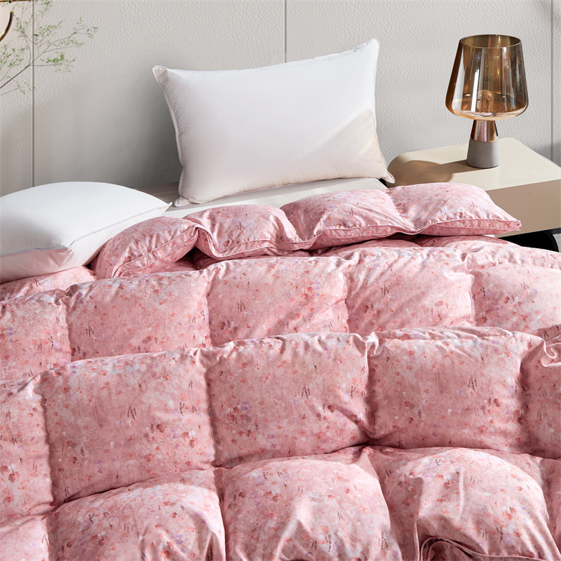 静若居羽绒被壳 2024羽绒被壳印花糯棉静音软糯面料羽绒被壳厂家直销 小碎花嫩粉色