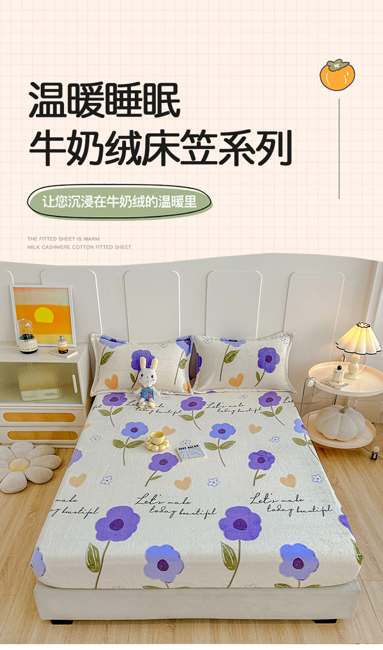 卡普二店 2024新款牛奶绒印花单床笠 初夏花开