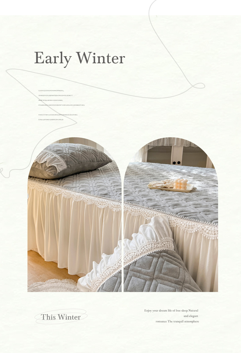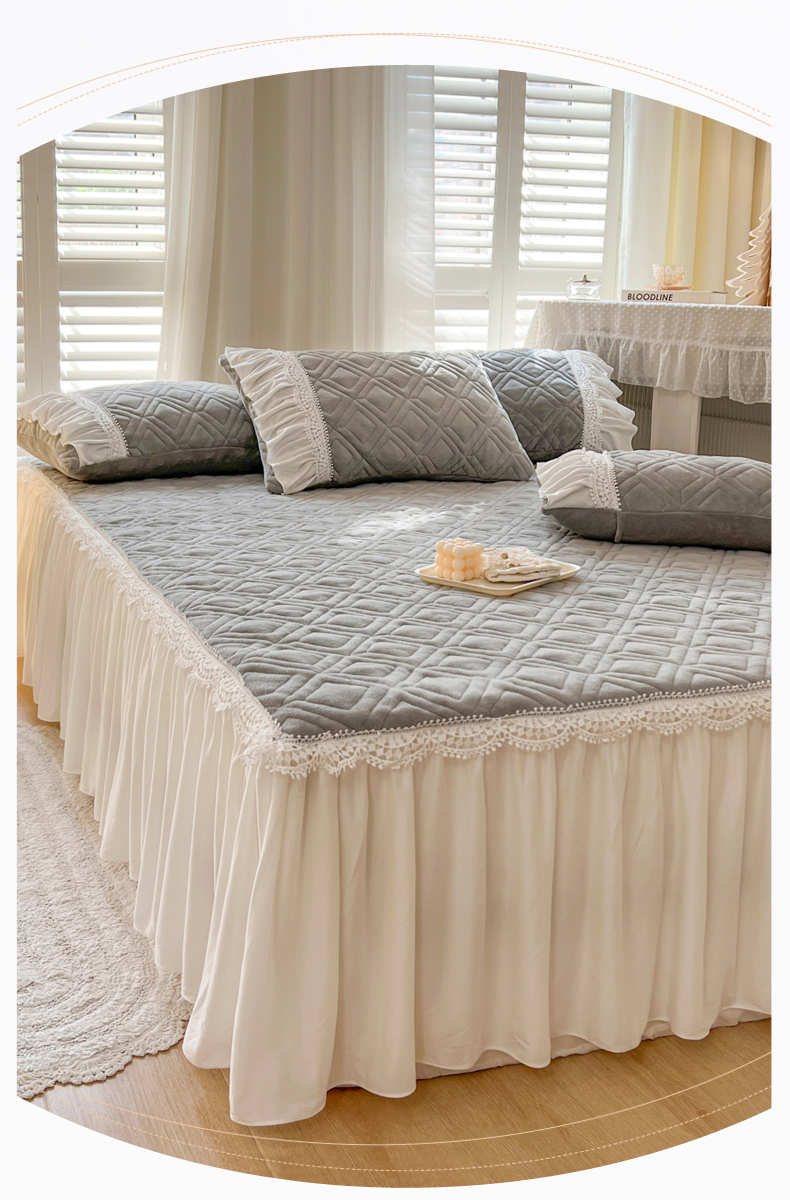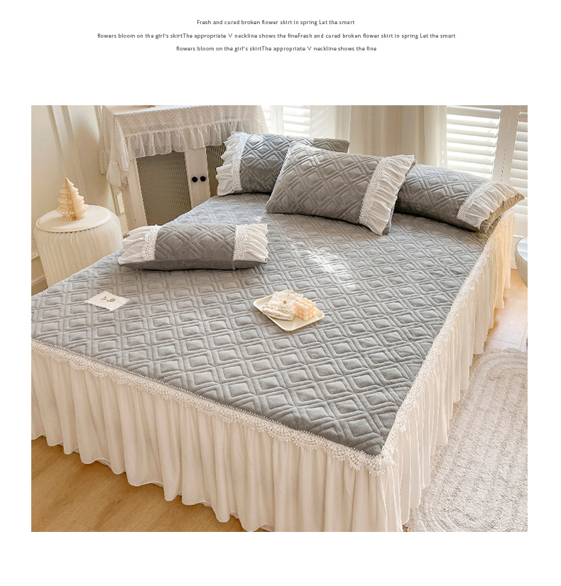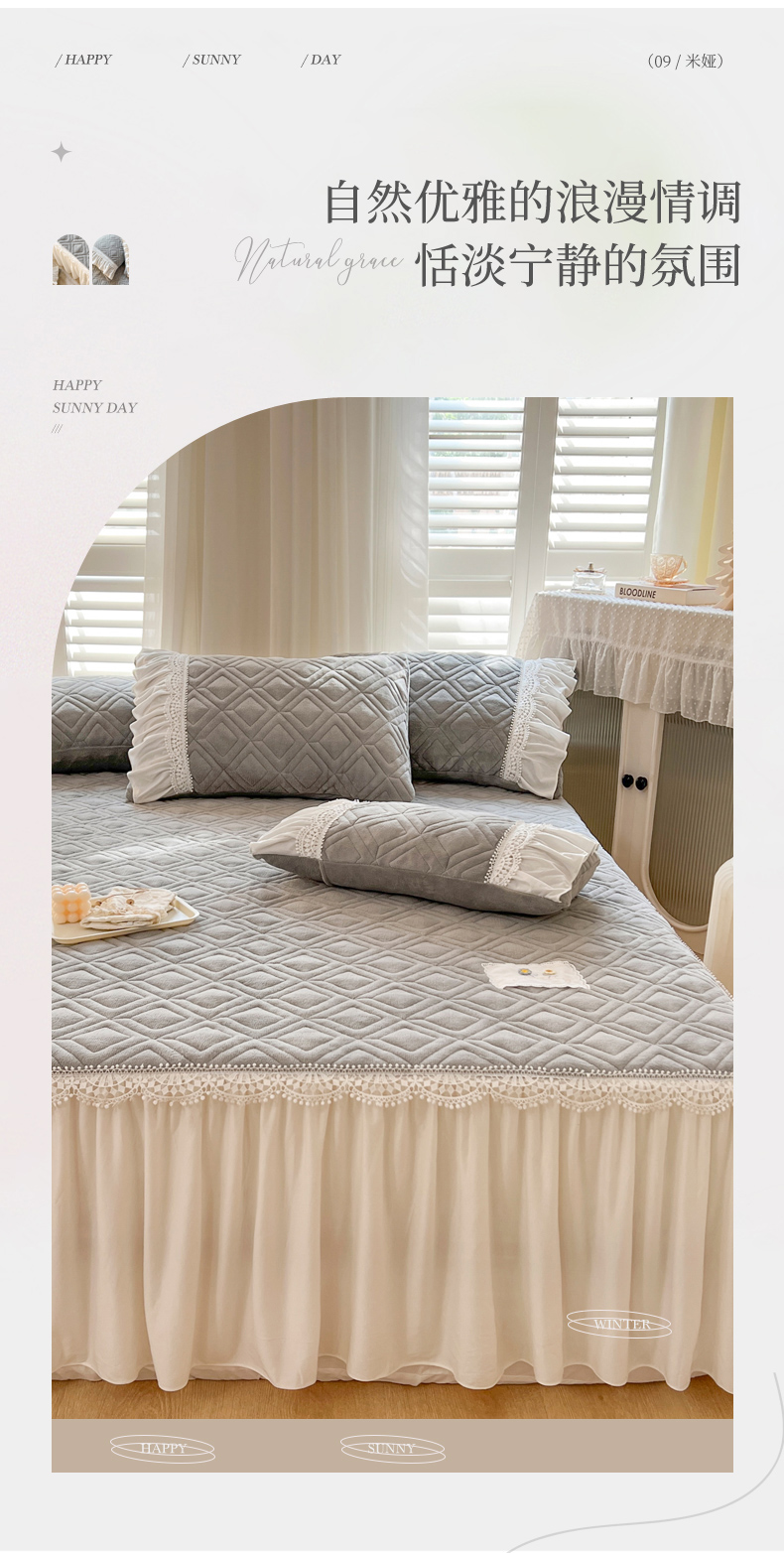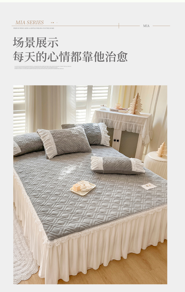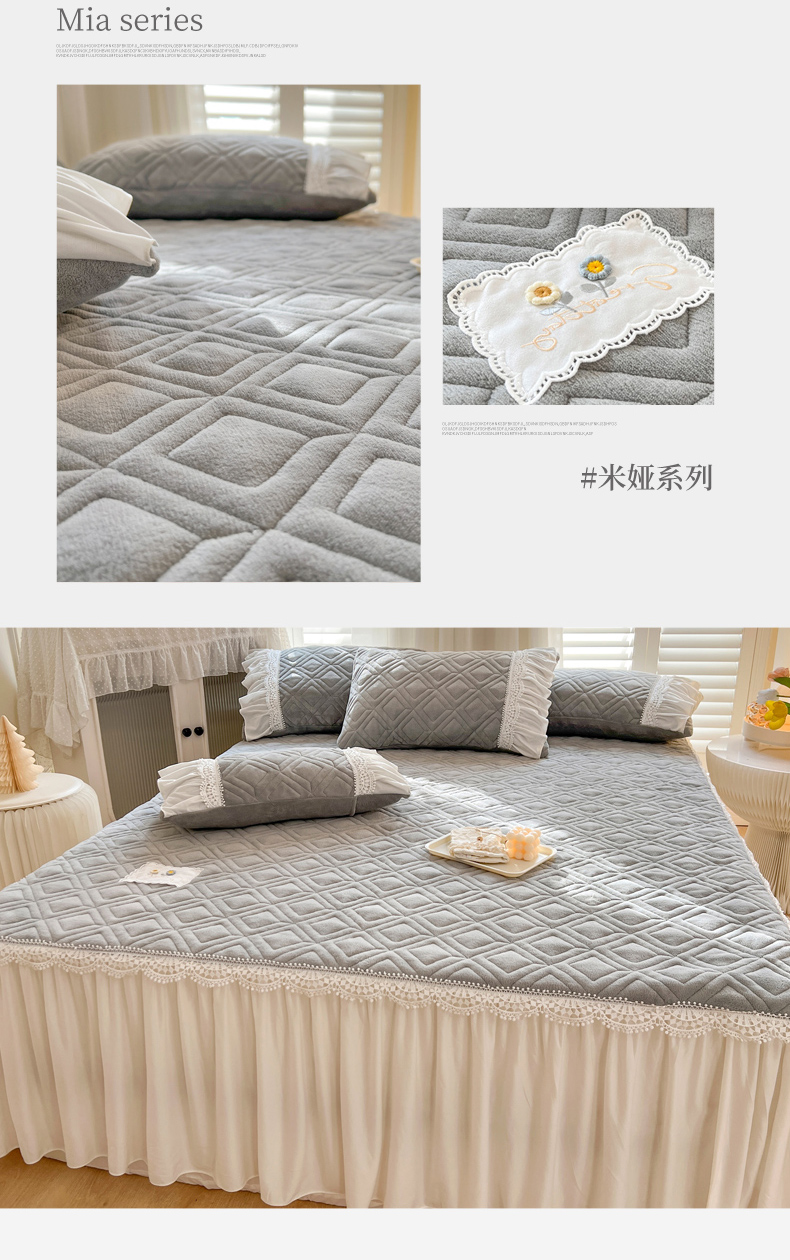 乐朵家居 2024新款夹棉牛奶绒床裙-米娅 米娅-灰