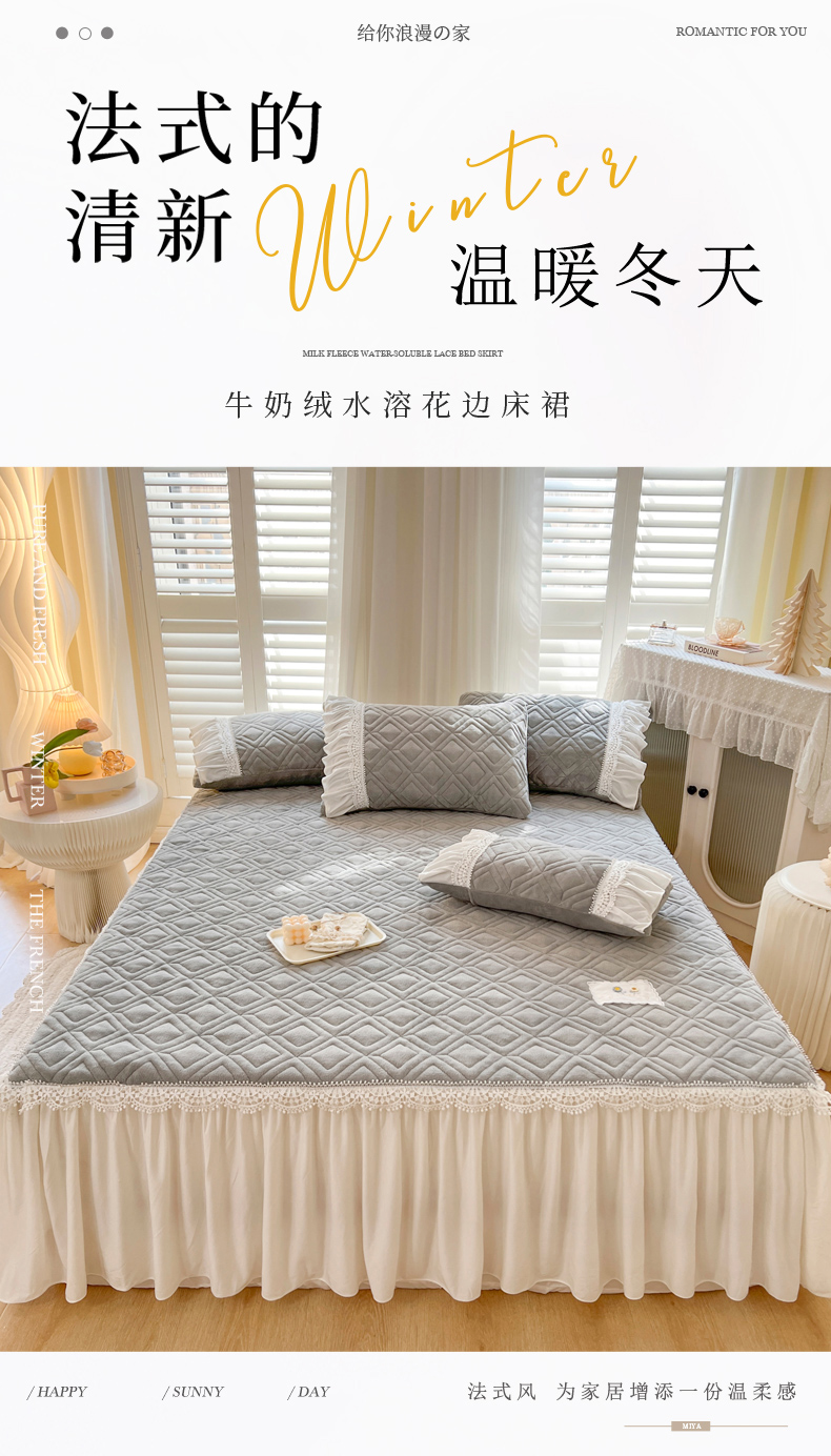 商品名称:乐朵家居 2024新款夹棉牛奶绒床裙-米娅 米娅-灰