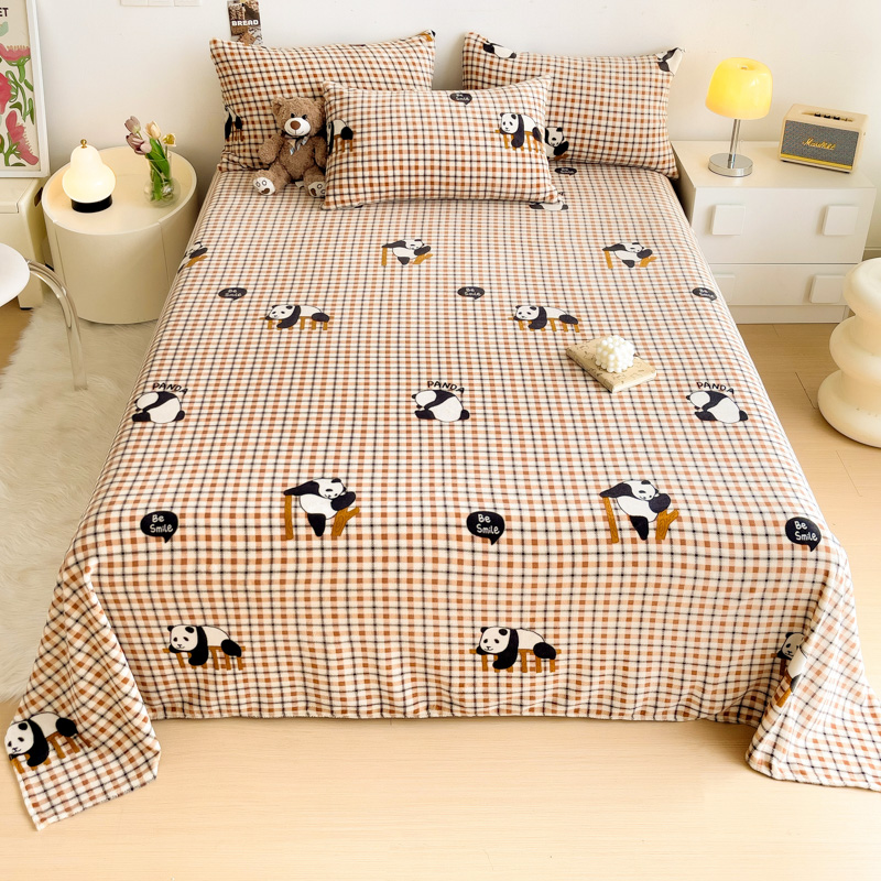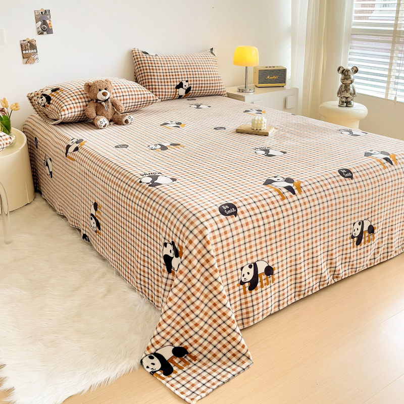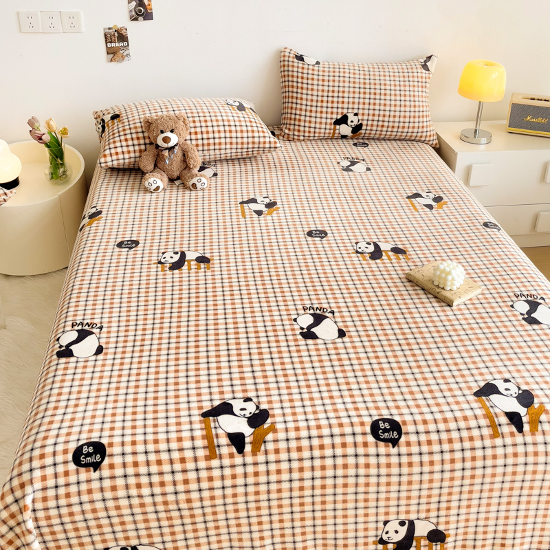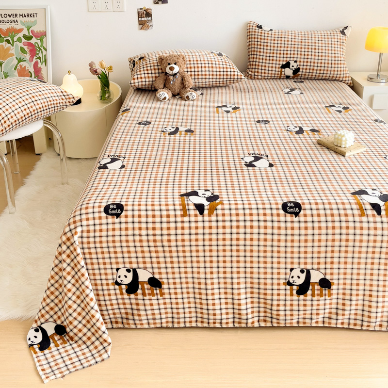 艾橙家纺 2024新款A类加厚牛奶绒印花床单 格子熊猫