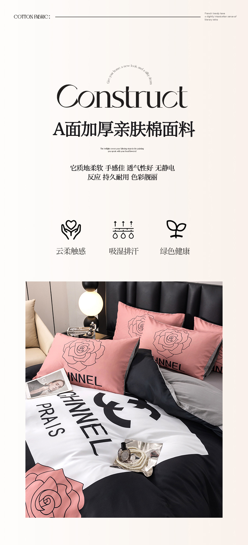(总)色鬼布艺高端家居主号 2025新款轻奢亲肤纯棉数码印花网红热款四件套,豹纹香,白金V,白香花,大H,黑白迪,黑白V,灰迪,咖古,克莱因,慕斯小姐,山茶花,星空
