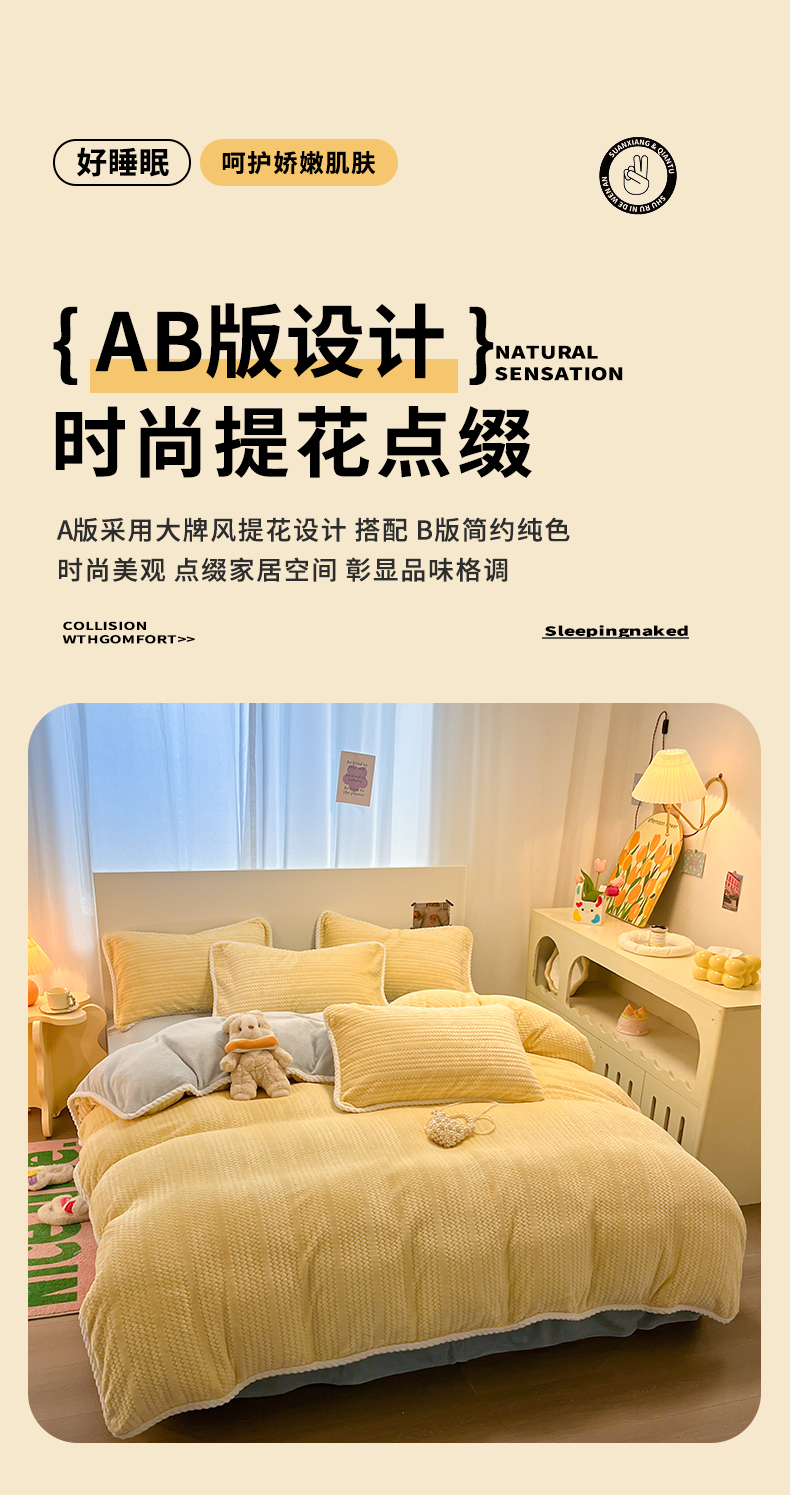 (总)蓝极人 2025新款AB版烂花牛奶绒四件套,烂花-米杏,烂花-粉灰,烂花-蓝黄,烂花-米灰,烂花-米咖,烂花-米蓝,烂花-深灰,烂花-深咖,烂花-桃粉,烂花-黄紫