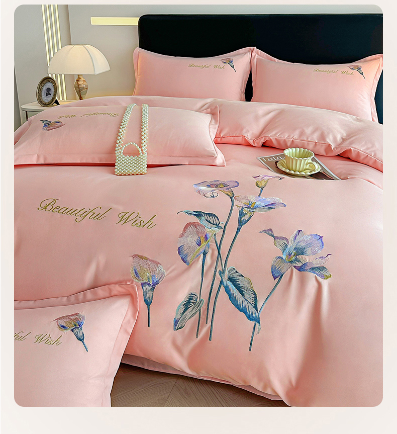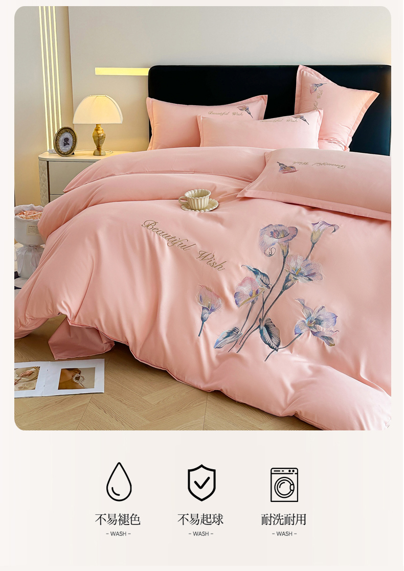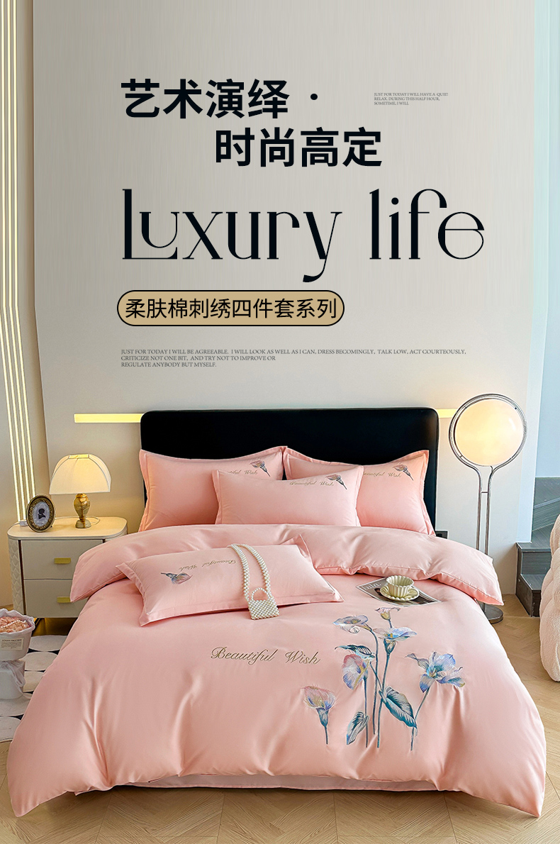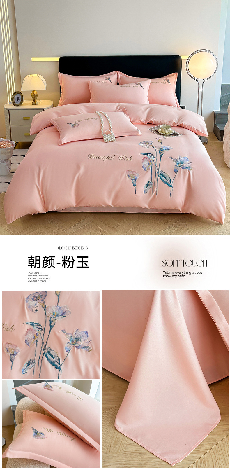 (总)帝菲妮 2025新款暖阳棉磨毛刺绣四件套花魁系列,花魁-豆沙,花魁-粉玉,花魁-橘色,花魁-蓝色,花魁-紫色