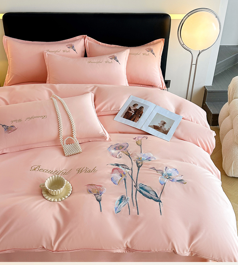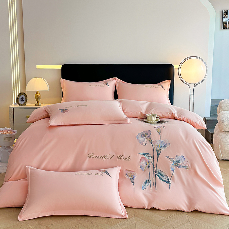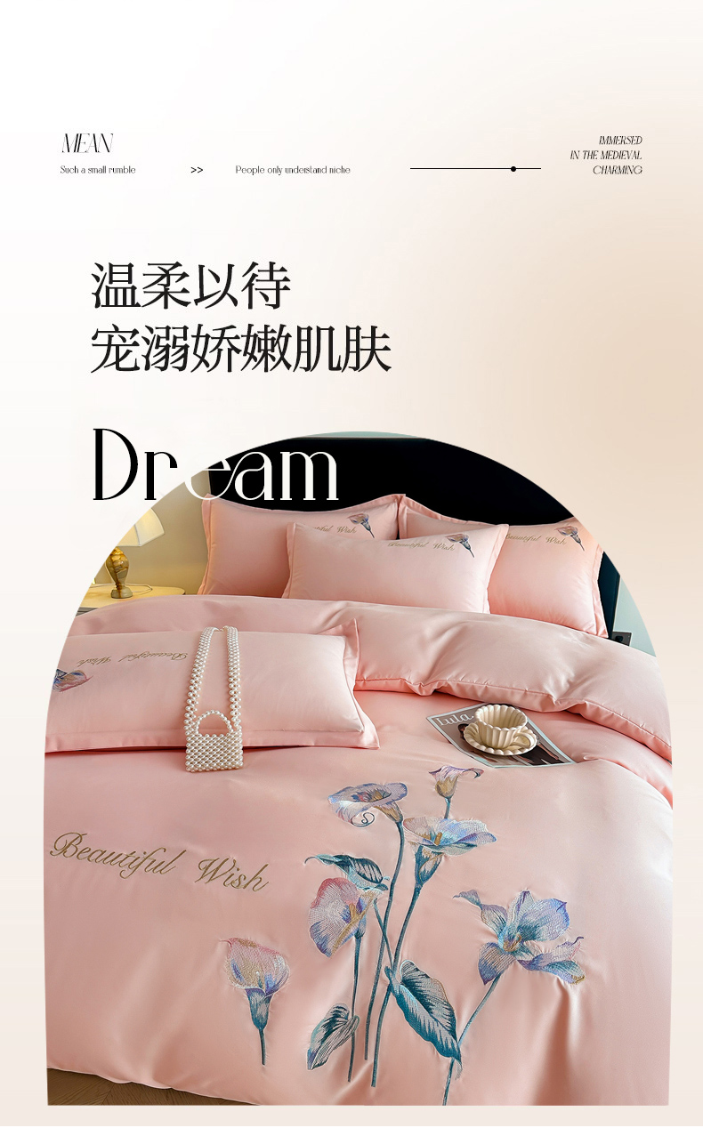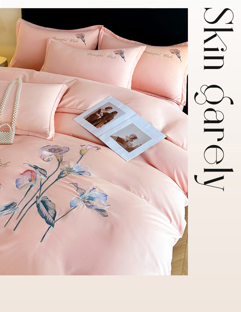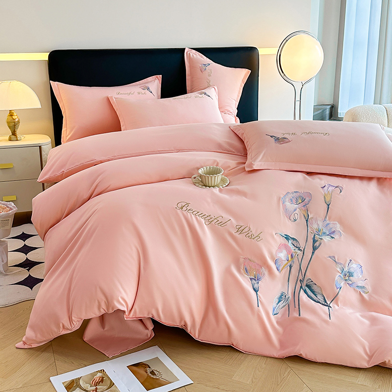 (总)帝菲妮 2025新款暖阳棉磨毛刺绣四件套花魁系列,花魁-豆沙,花魁-粉玉,花魁-橘色,花魁-蓝色,花魁-紫色