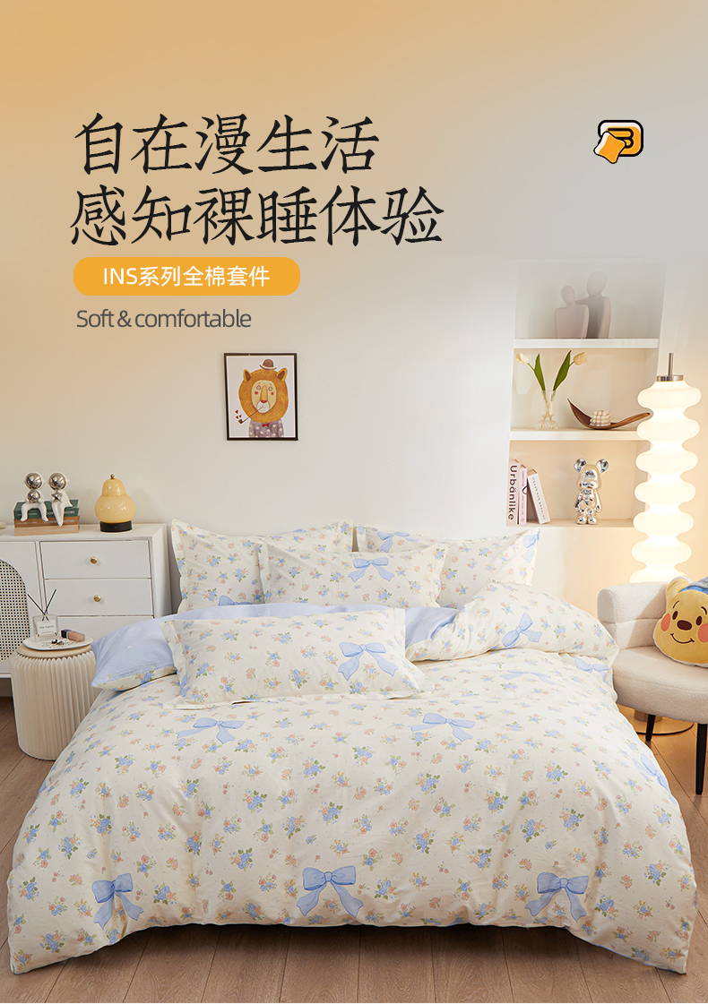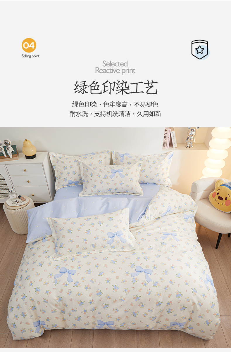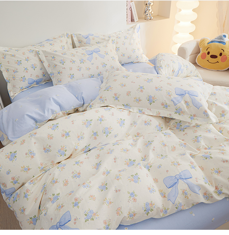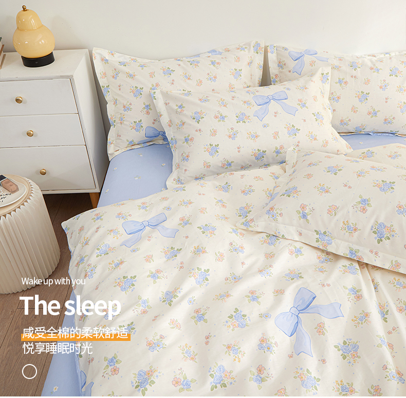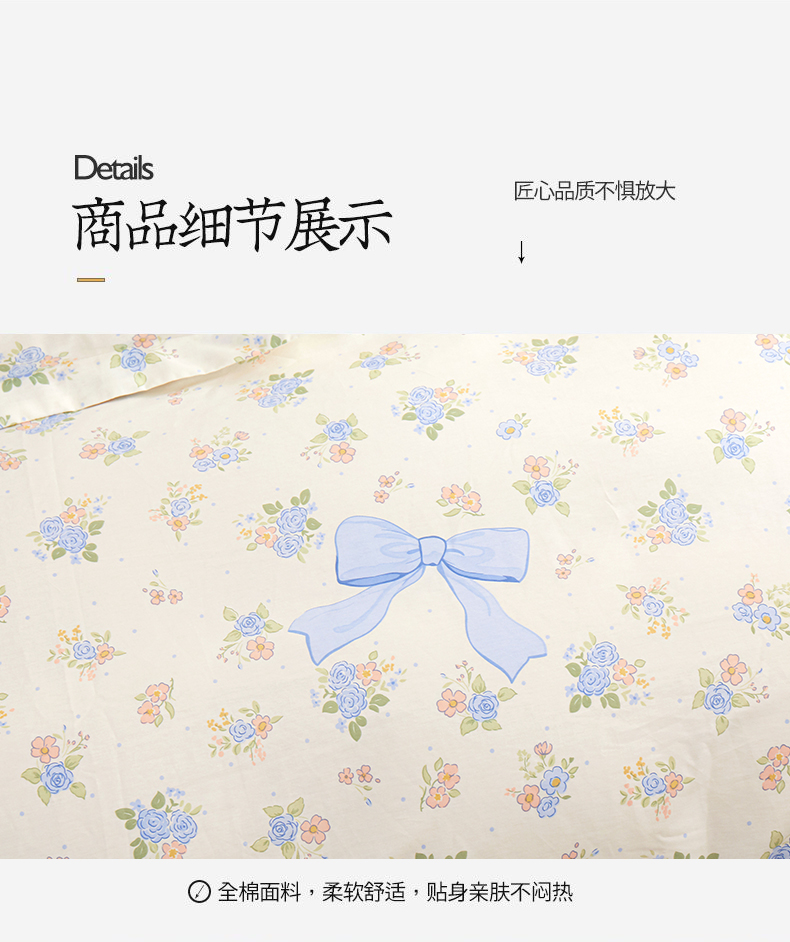 当前位置: 91家纺网 > 商品网购 > 床品套件 > 四件套 > 全棉活性四件套 > 钰伶 新款全棉简约12868印花纯棉四件套(预留6厘米缩水尺寸) 花朵蝴蝶结