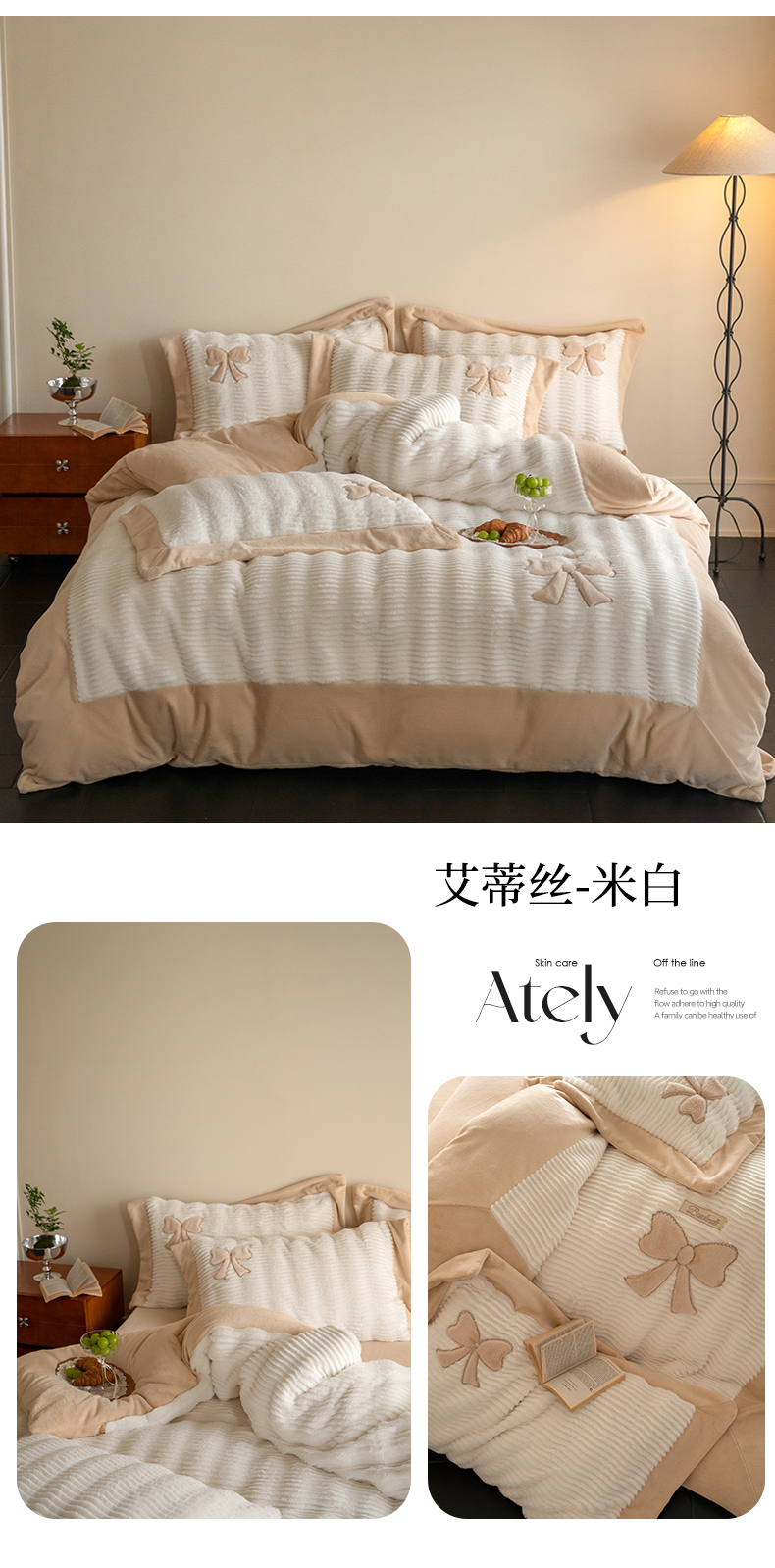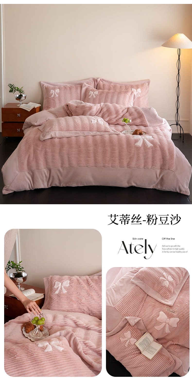 商品名称:(总)2024新款A版B版高克重牛奶绒四件套-艾蒂丝