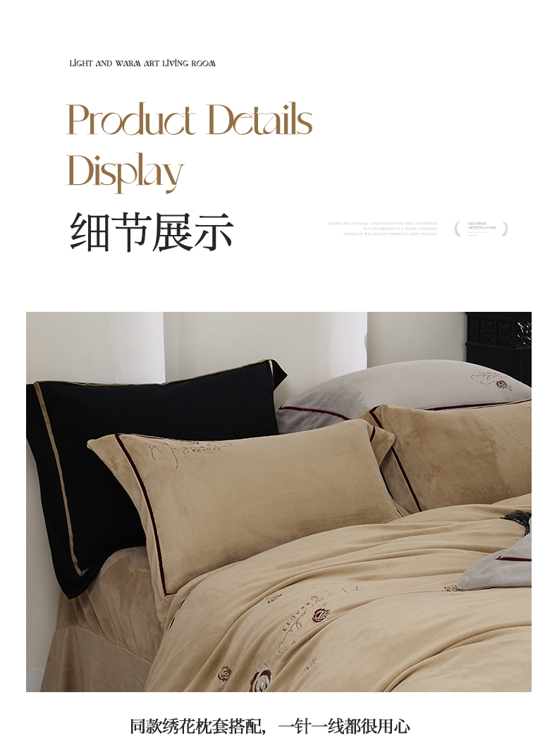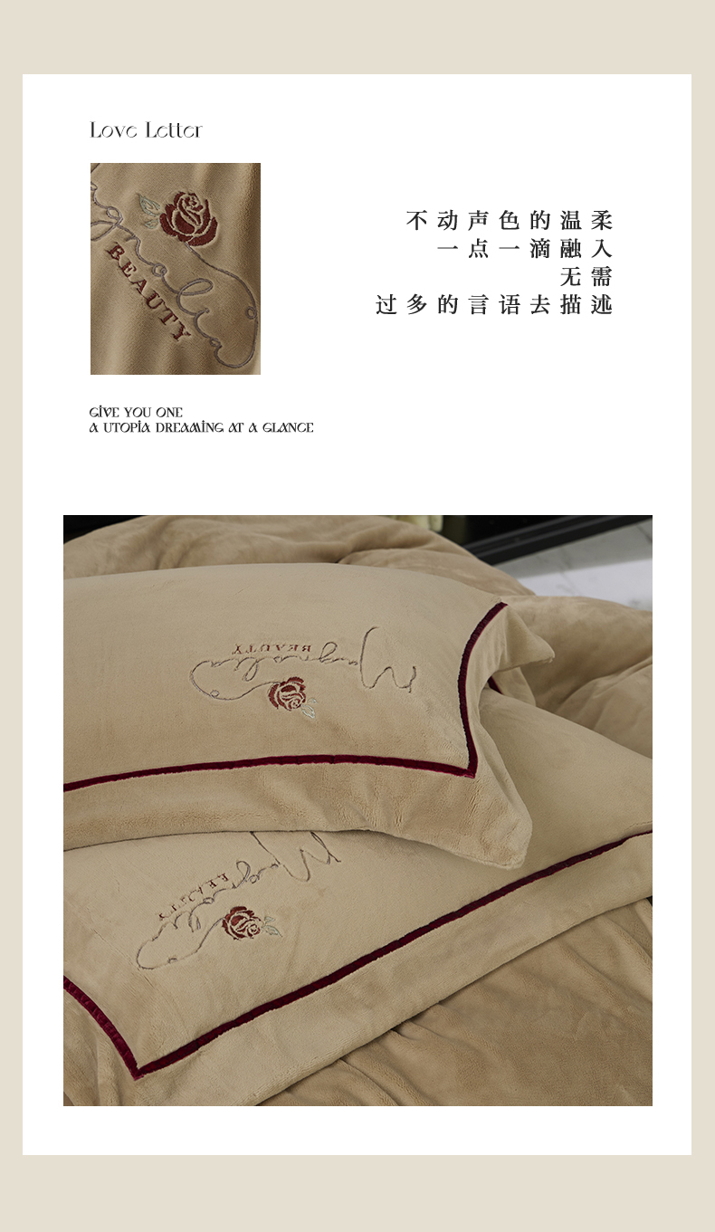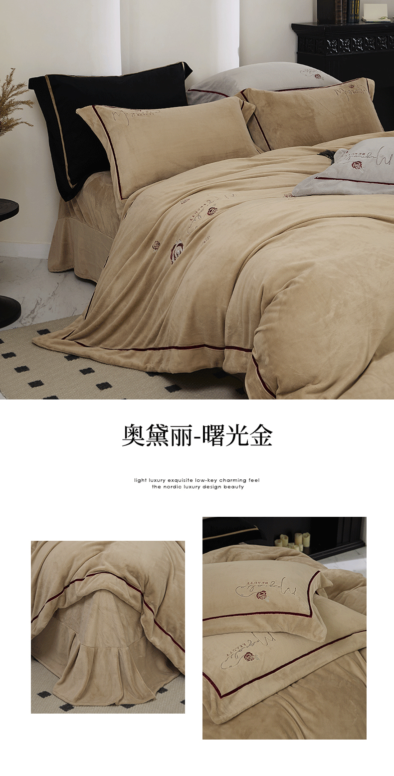 商品名称:2024新款高克重牛奶绒绣花四件套-奥黛丽 奥黛丽-曙光金