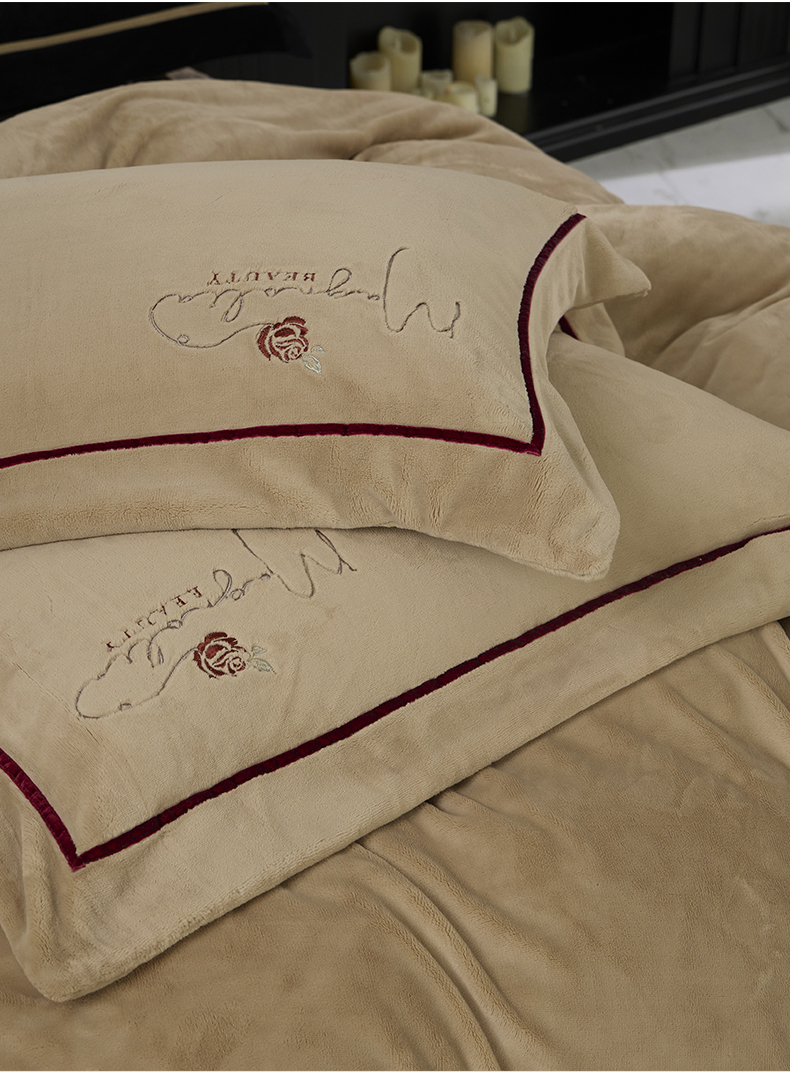 2024新款高克重牛奶绒绣花四件套-奥黛丽 奥黛丽-曙光金