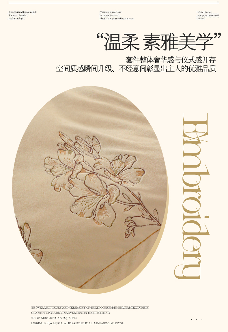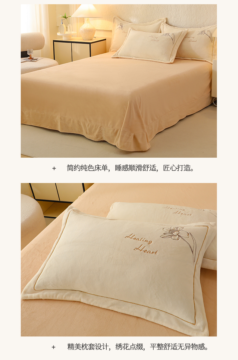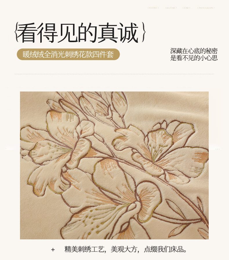 (总)暖洋家纺 2025新款暖芙绒纯色刺绣款套件四件套,爱玛橙,银灰色,香槟色,杏仁,玉色,湖绿色,蓝灰