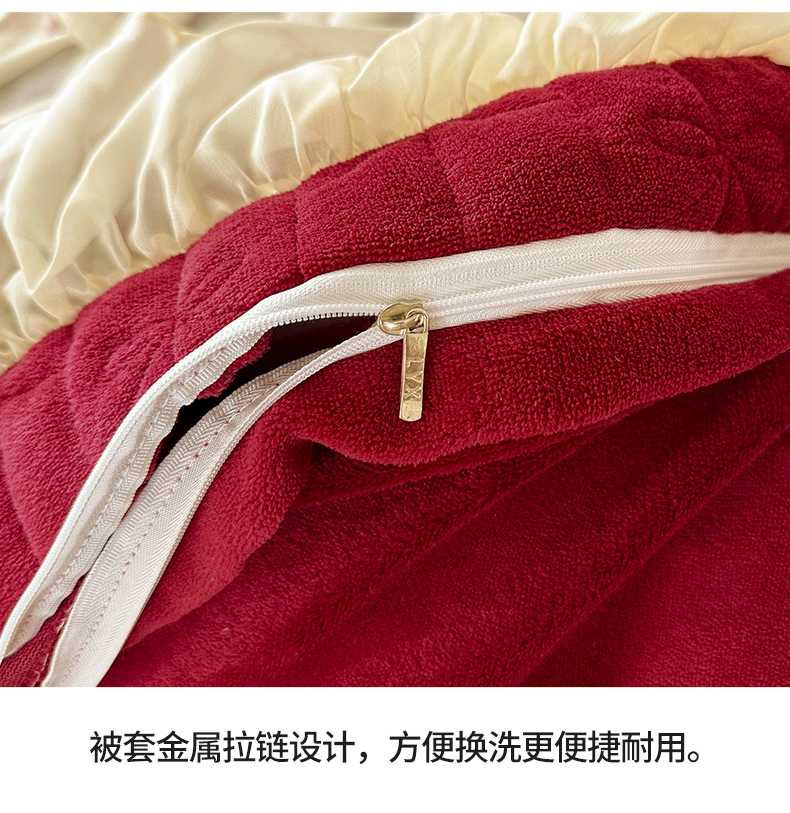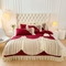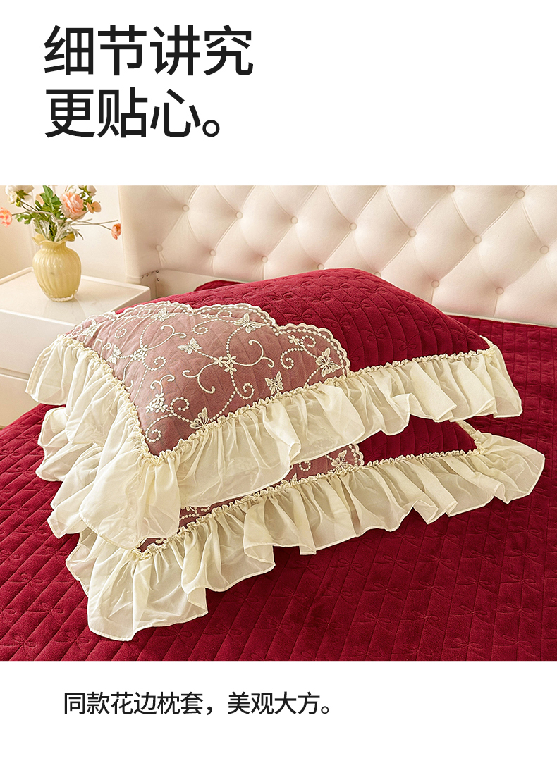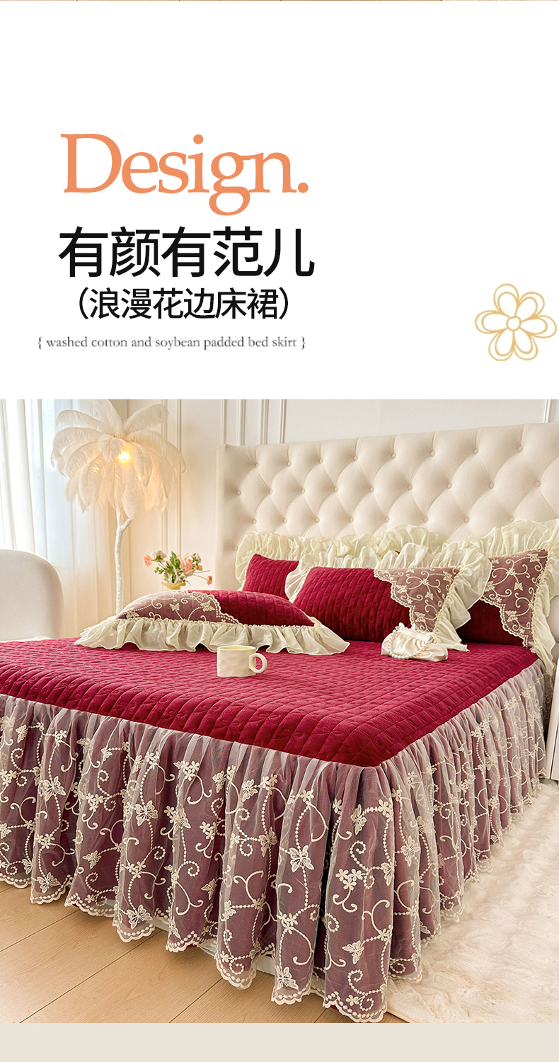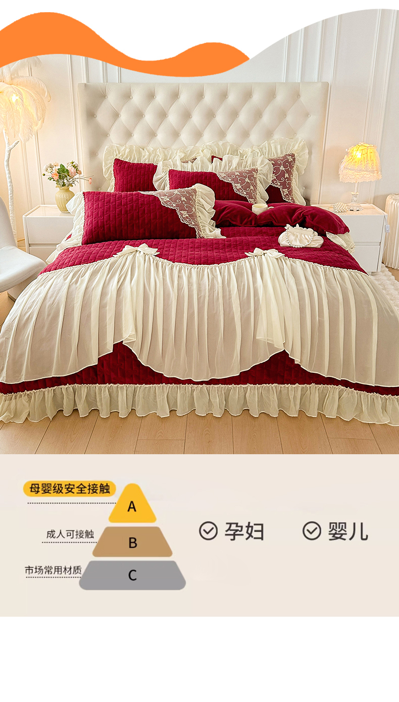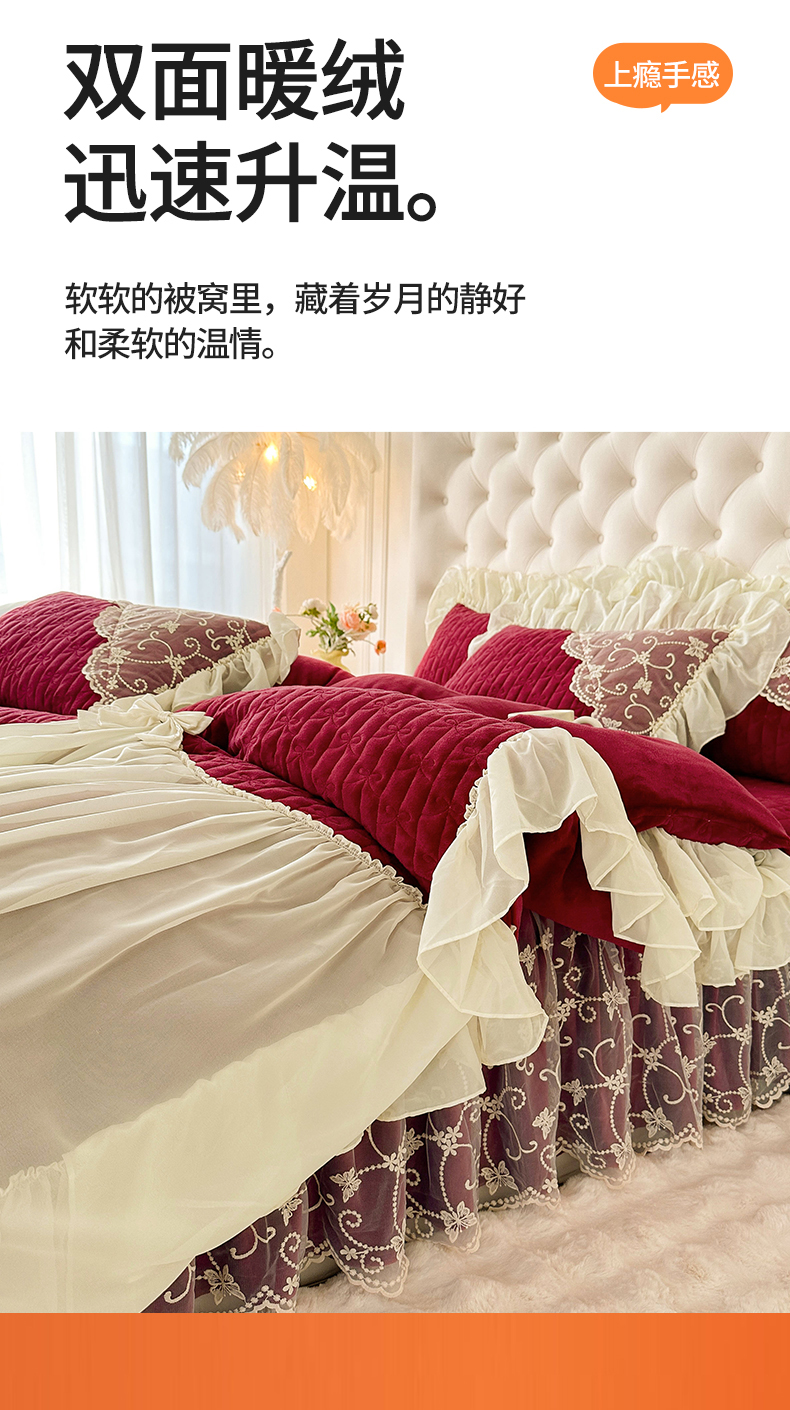 当前位置: 91家纺网 > 商品网购 > 床品套件 > 四件套 > 其它四件套 > 罗艺轩 2024新款高克重牛奶雪纺边床裙四件套-羽蝶 酒红