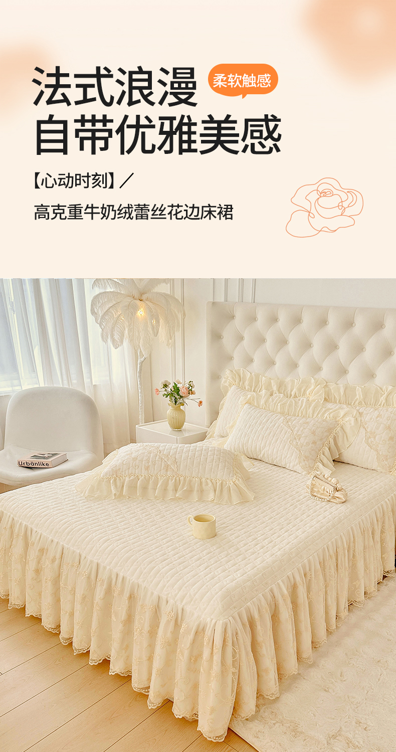 • 91家纺网 家纺一手货源 找家纺 (总)罗艺轩 2025新款牛奶绒浪漫花边床裙款三件套-暖洋洋,暖洋洋-白,暖洋洋-豆沙,暖洋洋-灰,暖洋洋-酒红,暖洋洋-绿,暖洋洋-奶咖