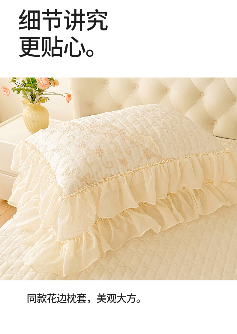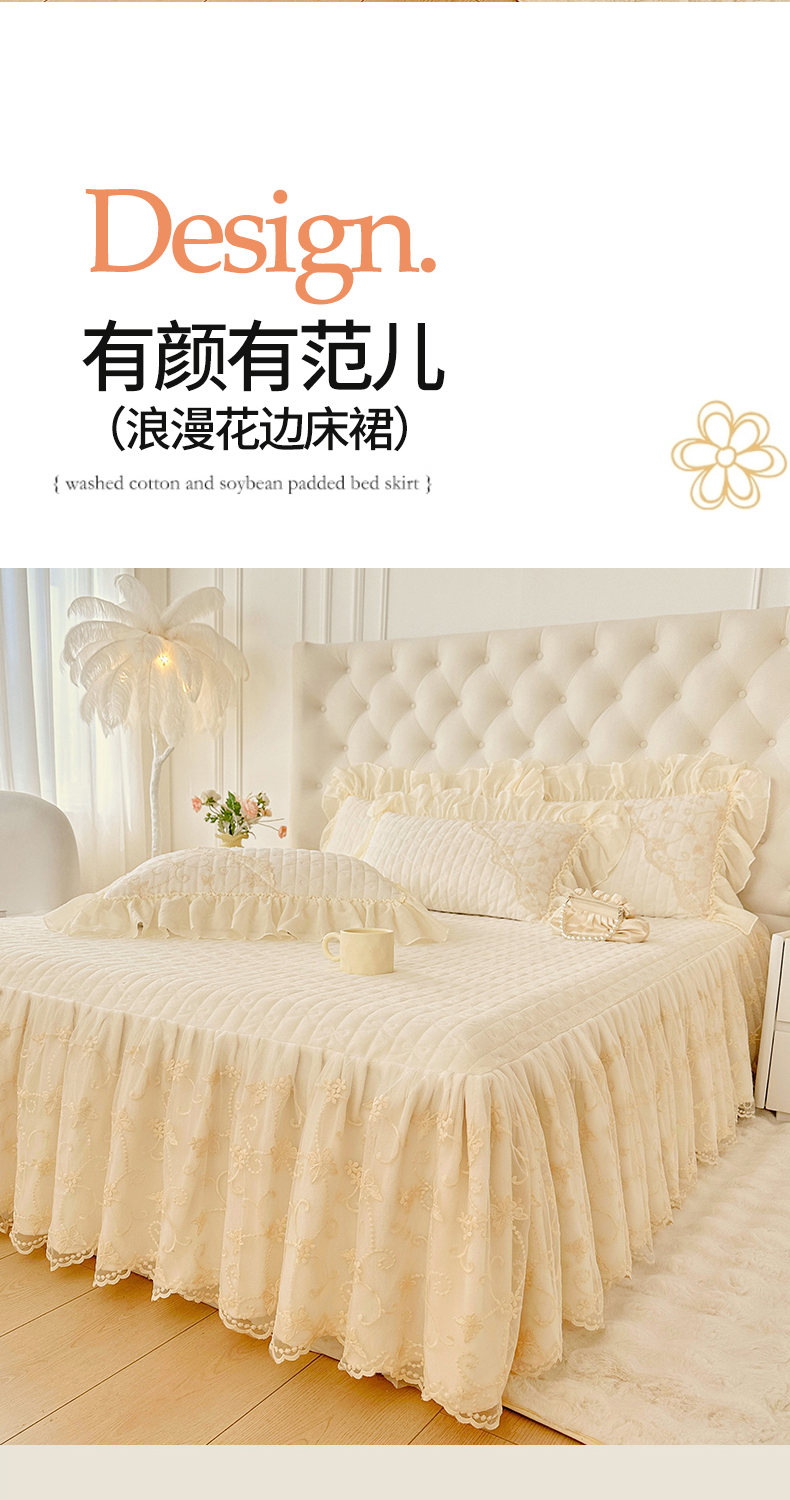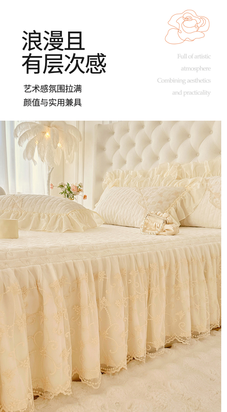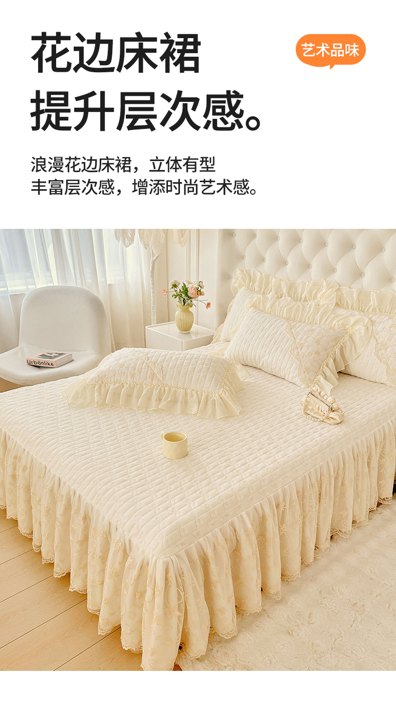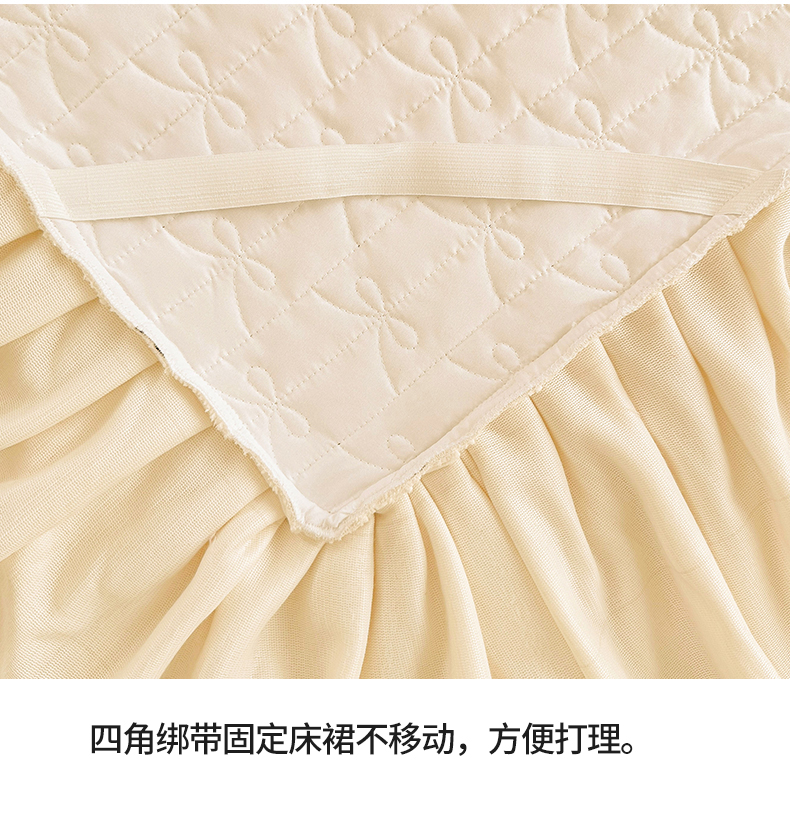 • 91家纺网 家纺一手货源 找家纺 罗艺轩 2024新款高克重牛奶雪纺边床裙三件套-羽蝶 奶昔